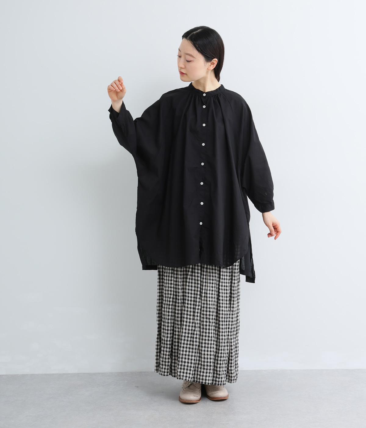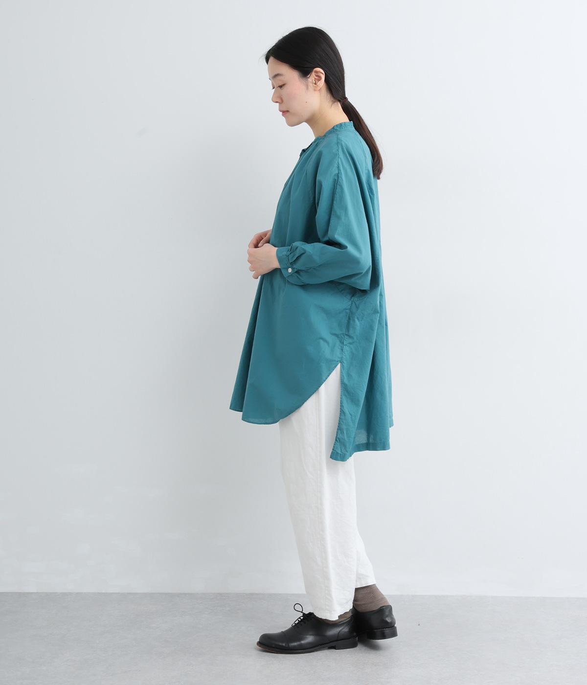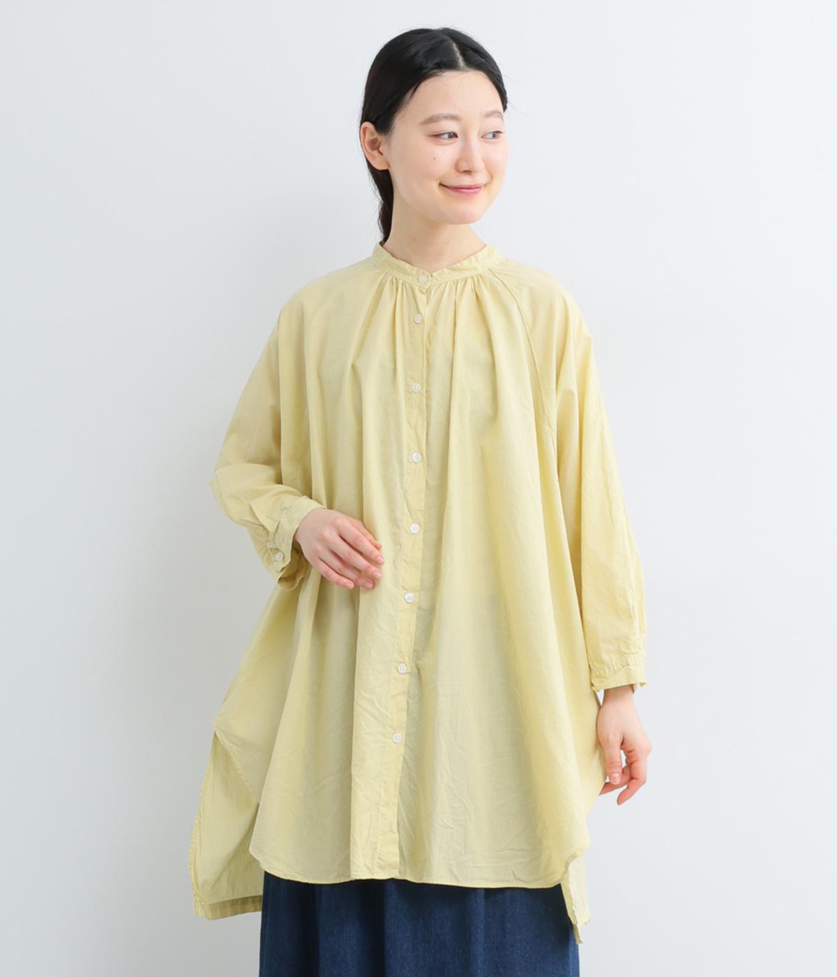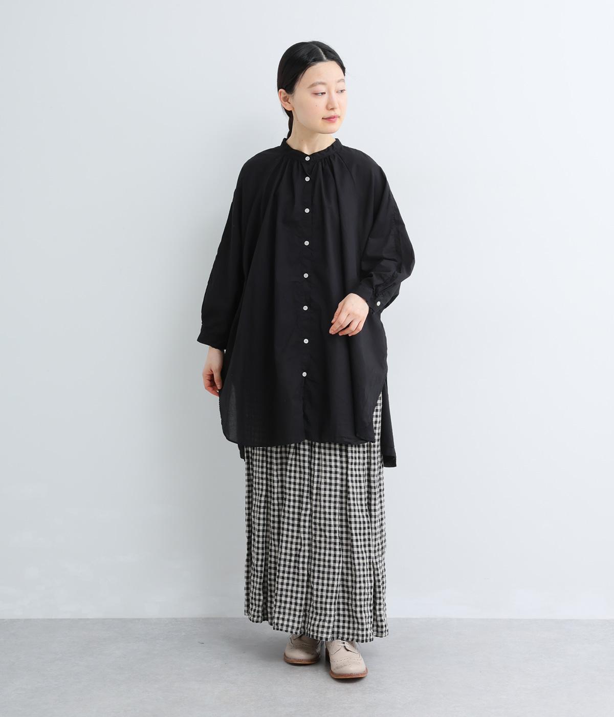 さらりとした肌触りで、薄手ながらほんのりハリのあるコットンローン生地。洗いざらしのような仕上げでふんわりとした風合いがあり、軽やかで快適な着心地です。