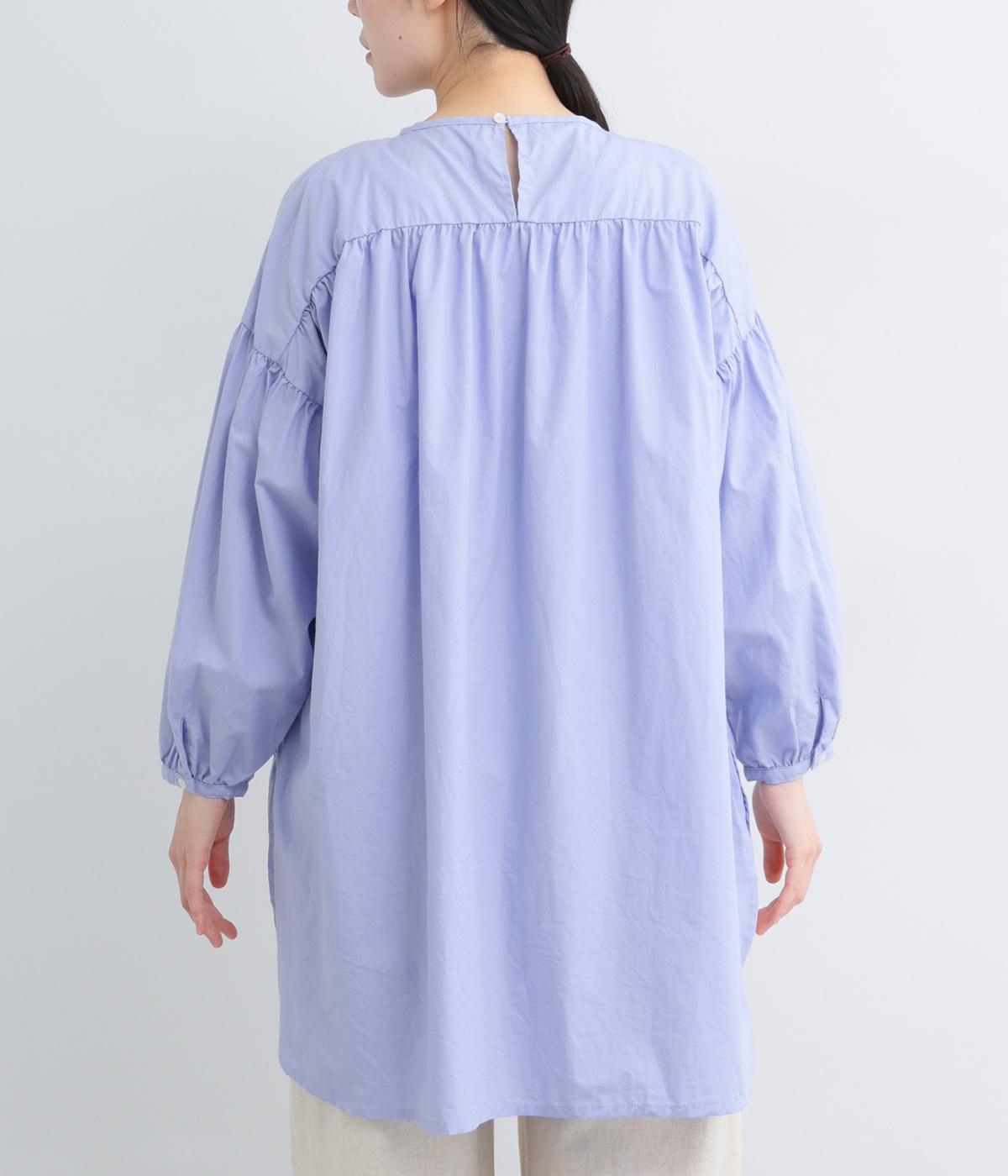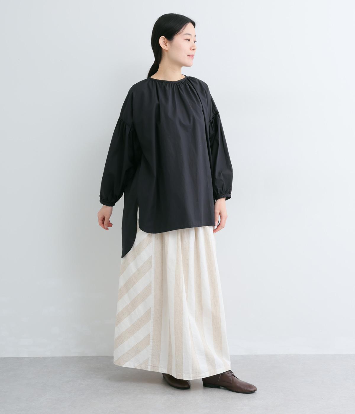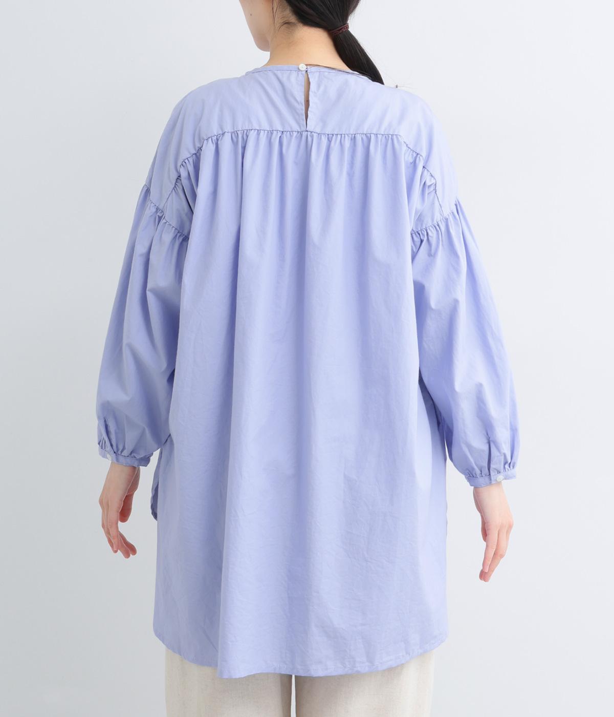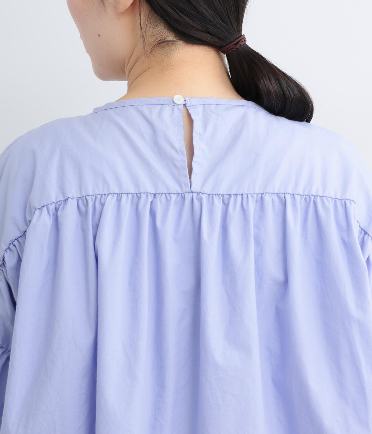 肩にギャザーを寄せたボリューム袖や、前後差をつけた着丈など、ディテールにこだわったブラウスです。どの角度から見ても美しいシルエットを描き、さらりと一枚で着るだけでスタイリングが決まります。
