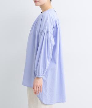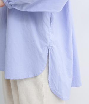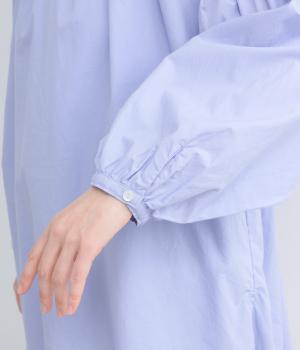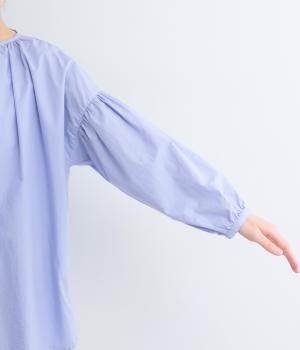 しなやかでハリのあるコットンタイプライター素材を使用しました。ほのかな艶感が上品な表情を添えます。肌ばなれがよく、快適な着心地を叶えます。