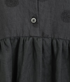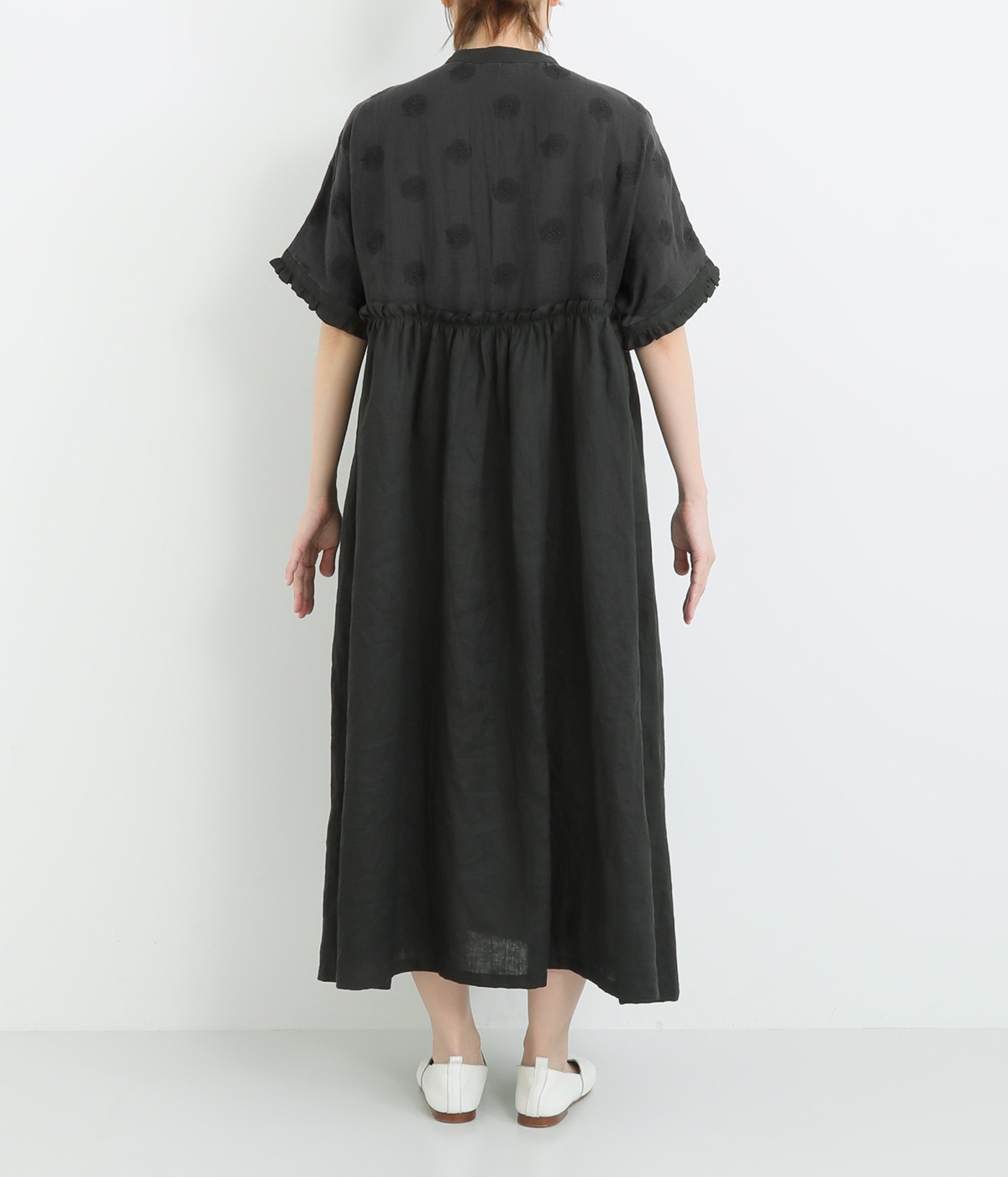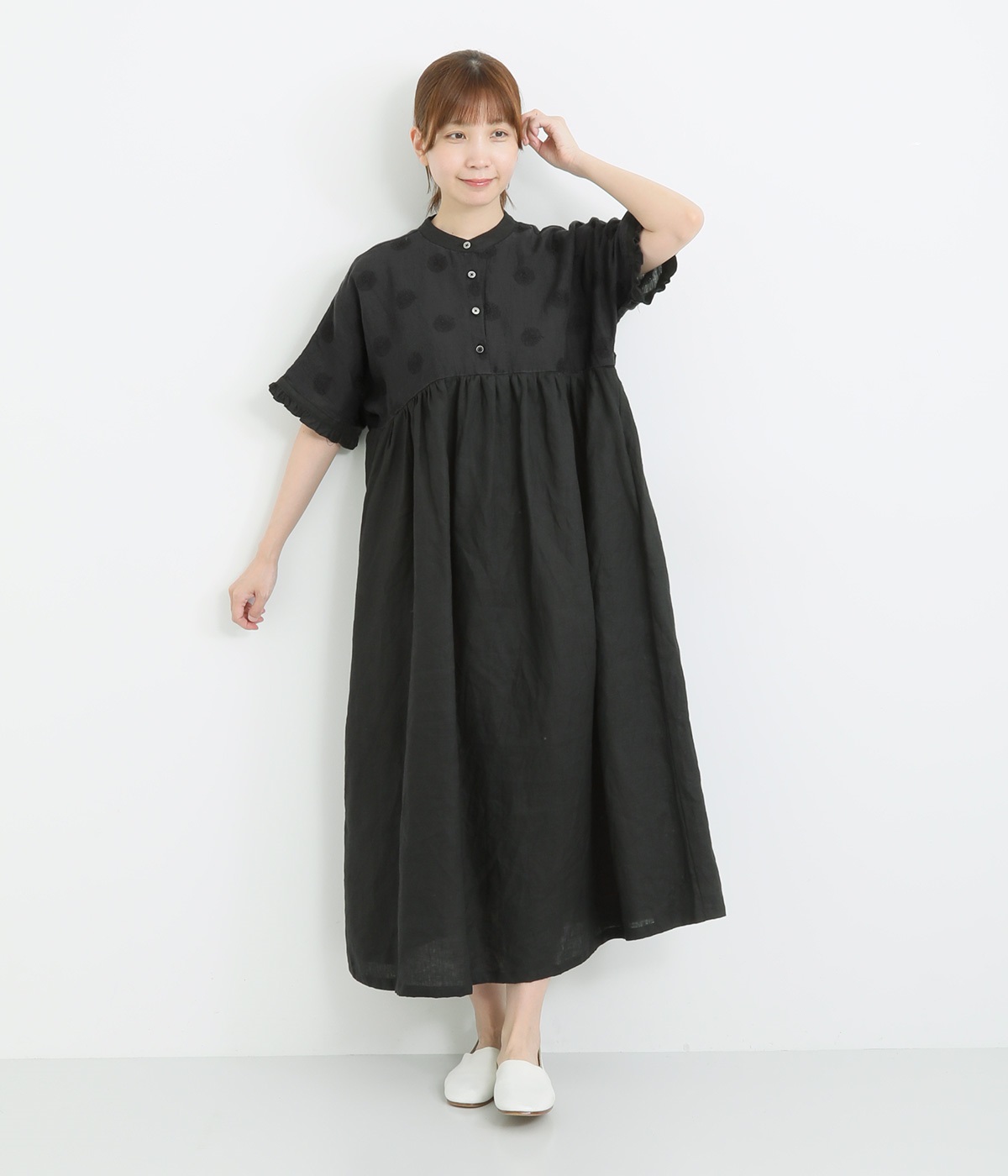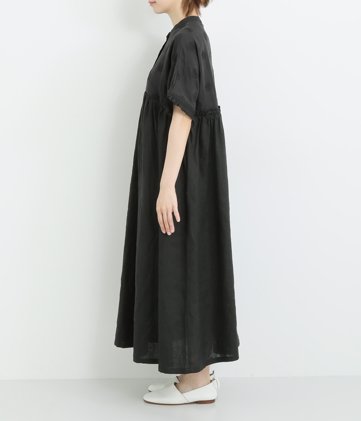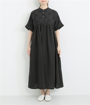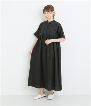 国内における優秀な技術を活かして日本で生産された生地を使用しています。洗いざらしのような風合いが魅力のリネン無地とガーベラ柄刺しゅう生地の切り替えです。