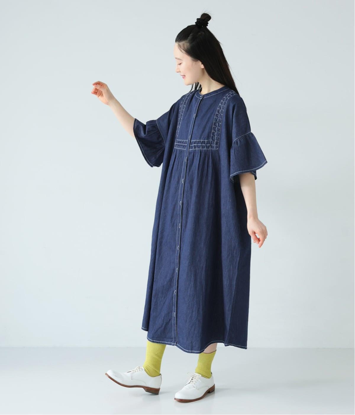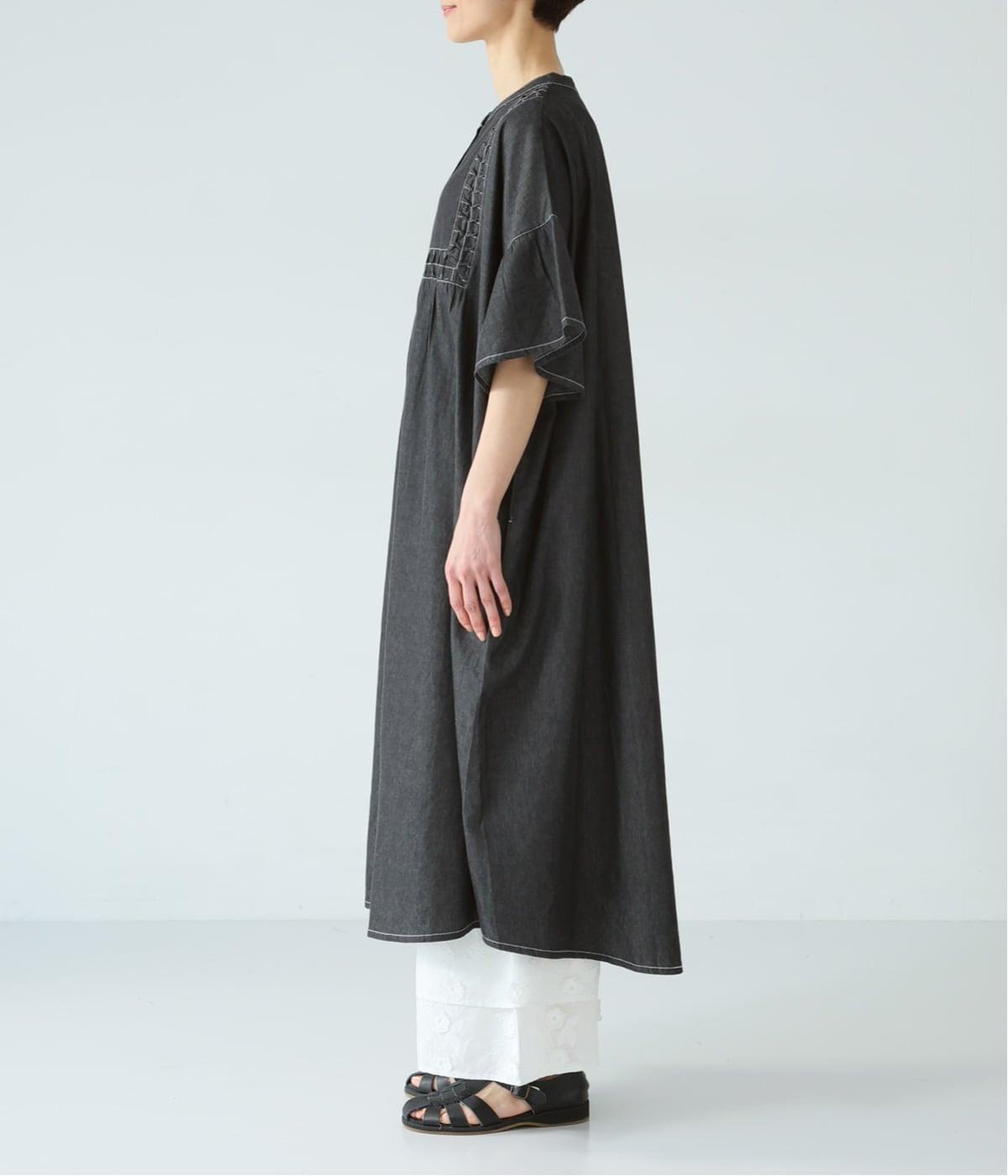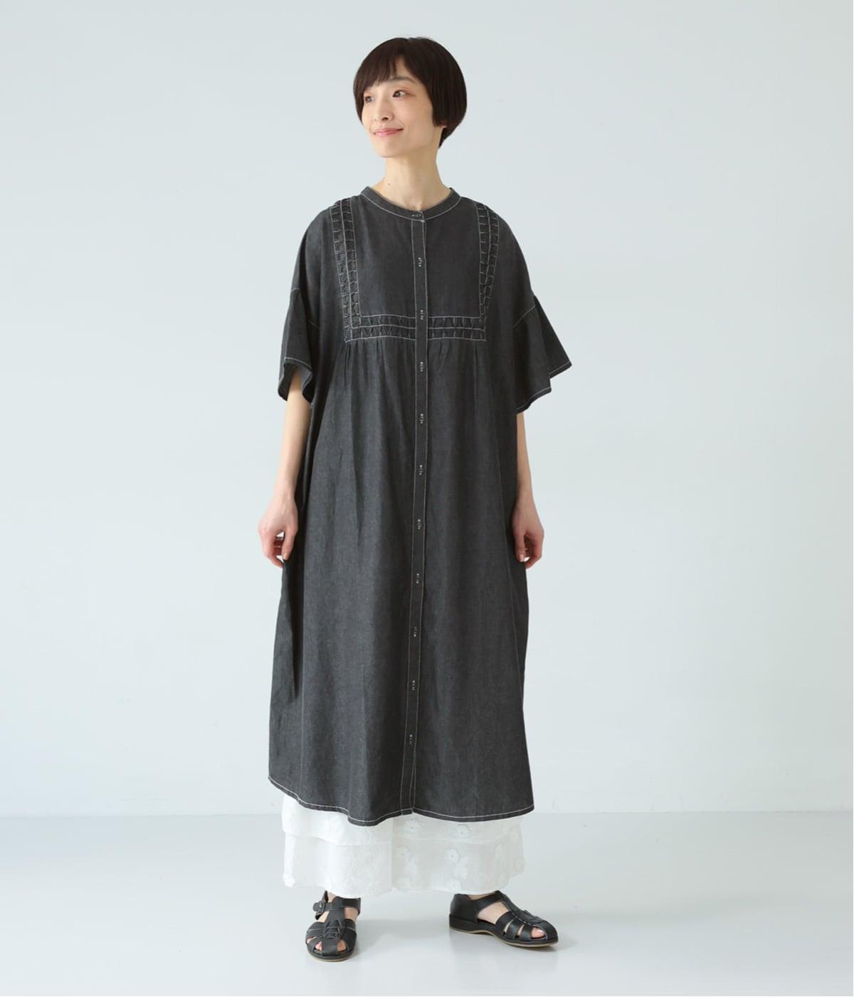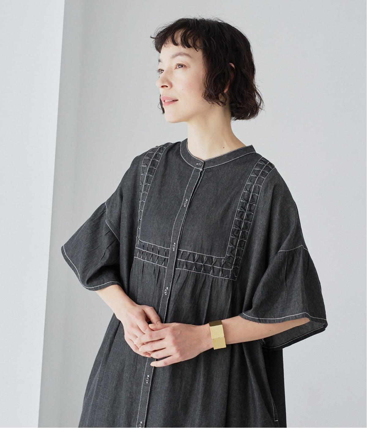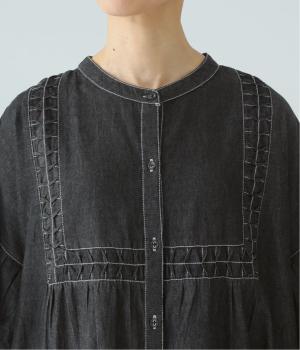 ひとの手のぬくもりを感じさせる、インド製ならではの幾何学的なスモッキング。軽やかな着心地とともに、季節に寄り添うディテールです。