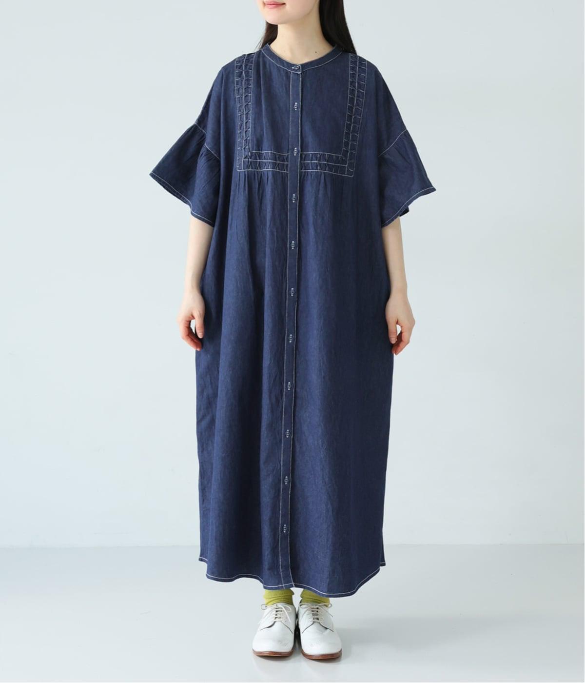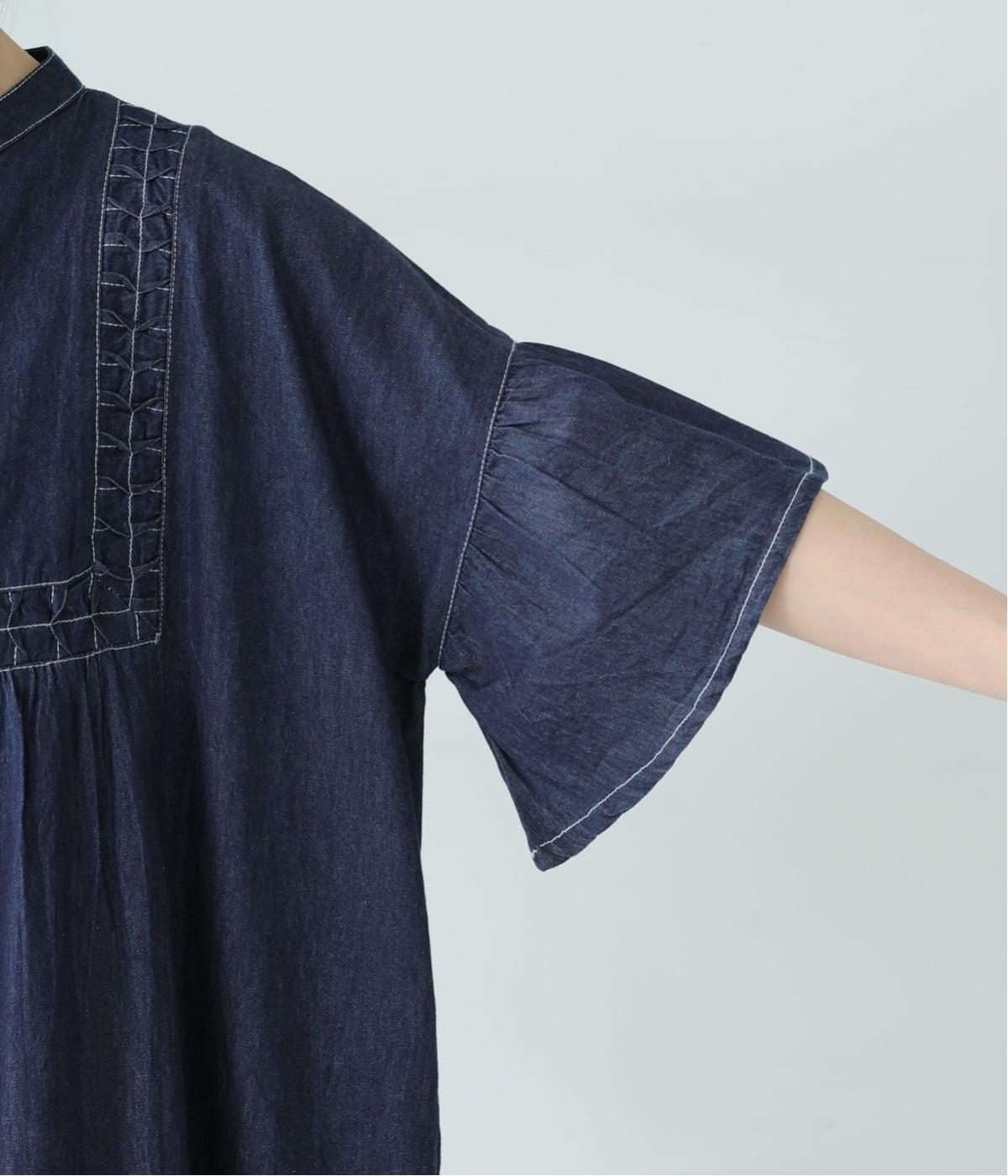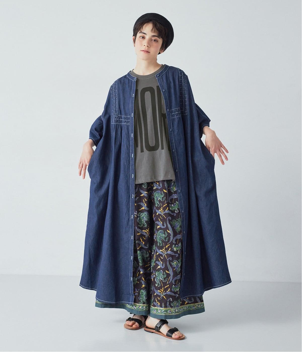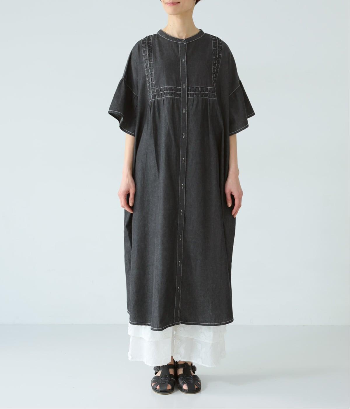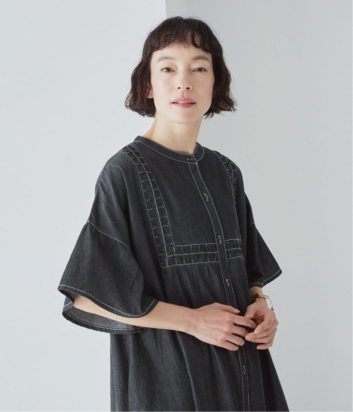 ひとの手のぬくもりを感じさせる、インド製ならではの幾何学的なスモッキング。軽やかな着心地とともに、季節に寄り添うディテールです。