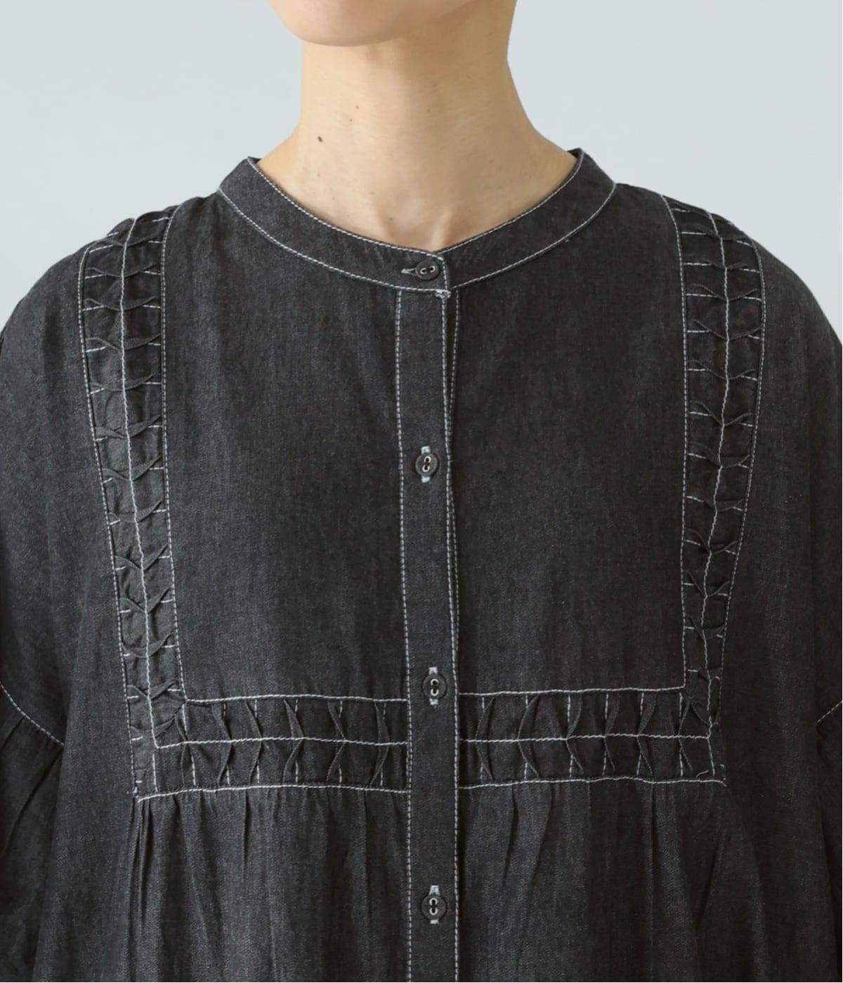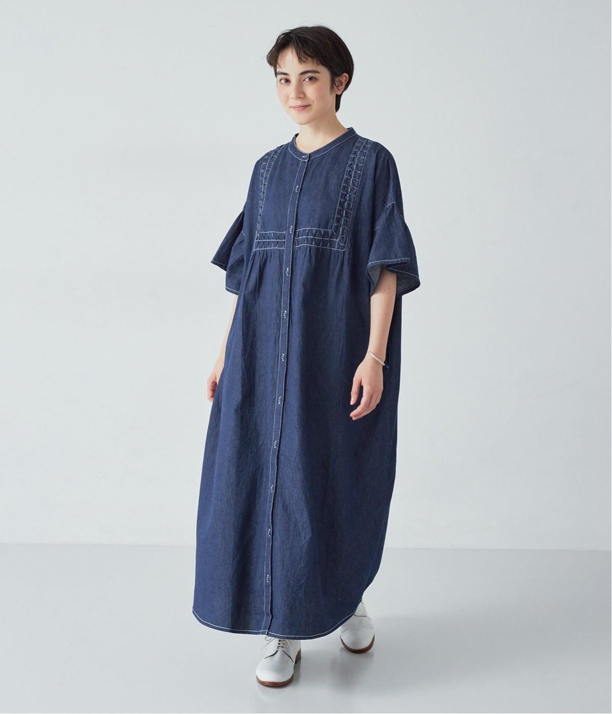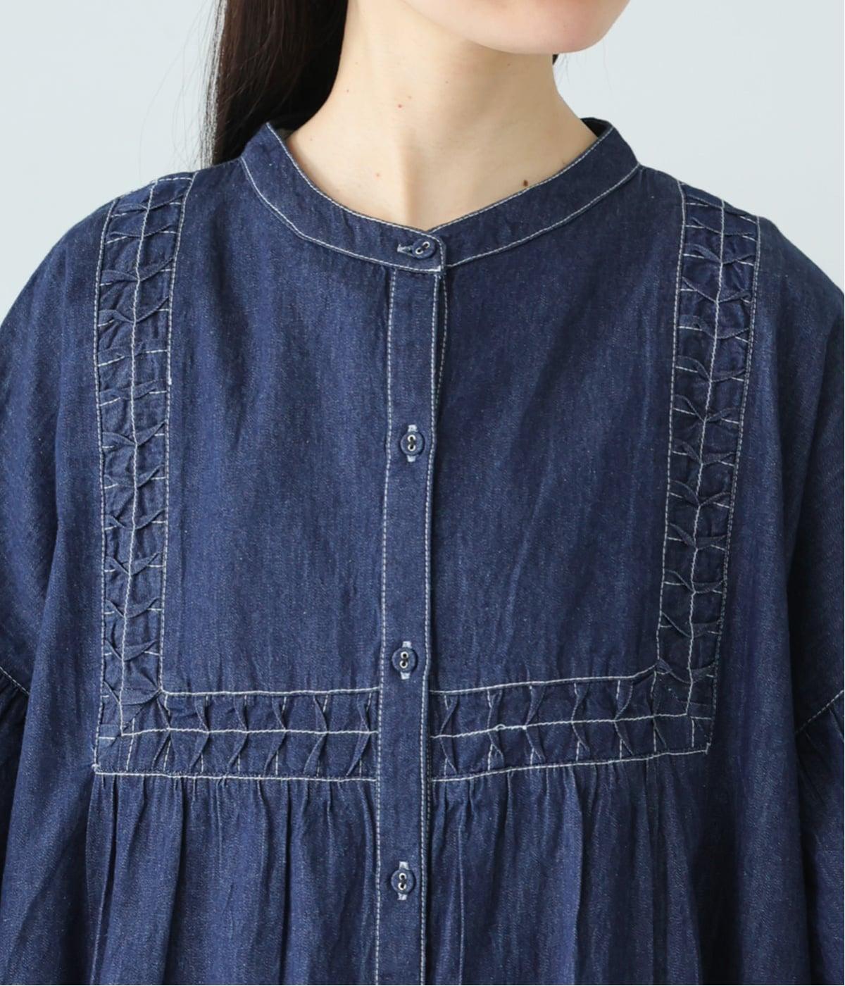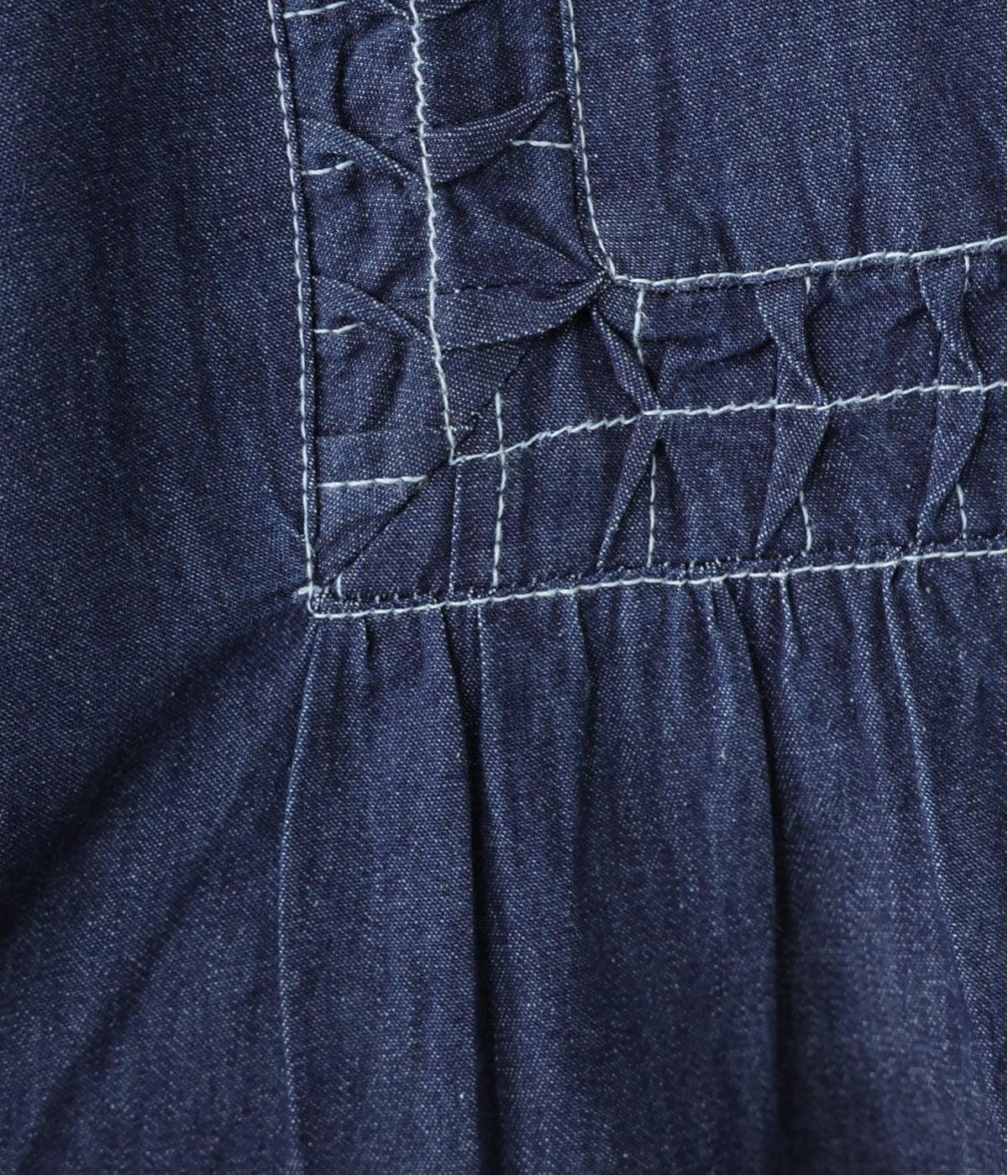 ライトデニム特有のほのかなツヤが、スモッキングの立体感を美しく引き立てます。