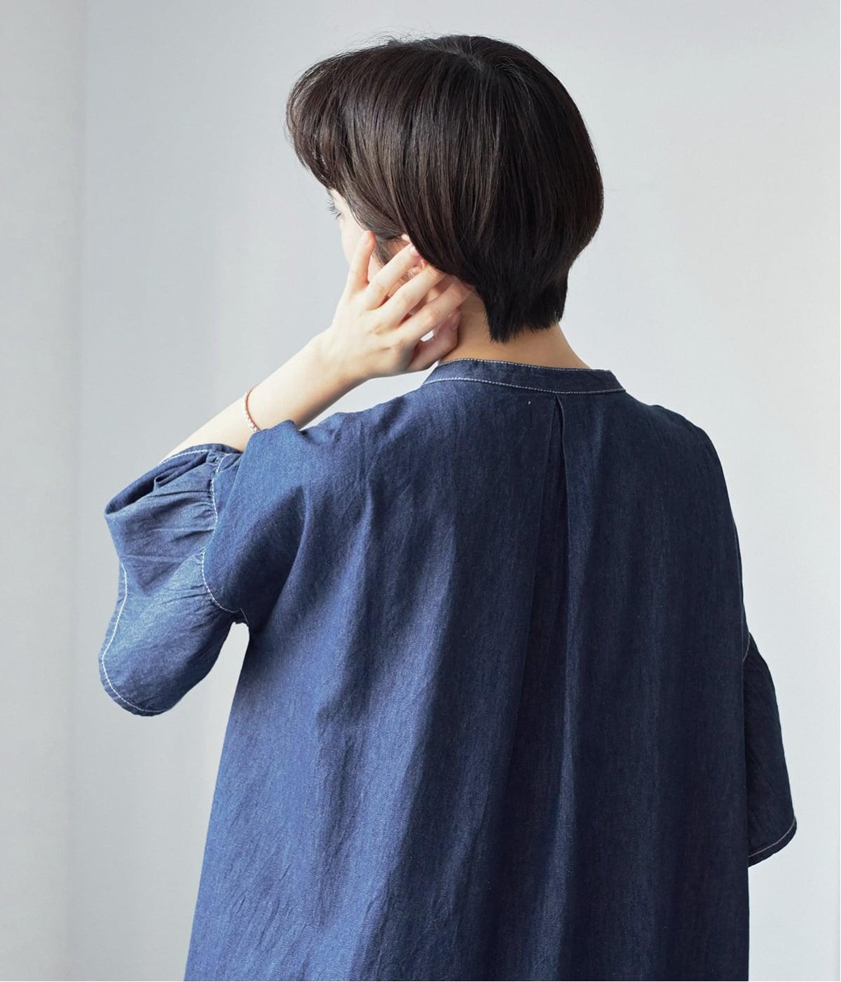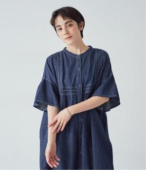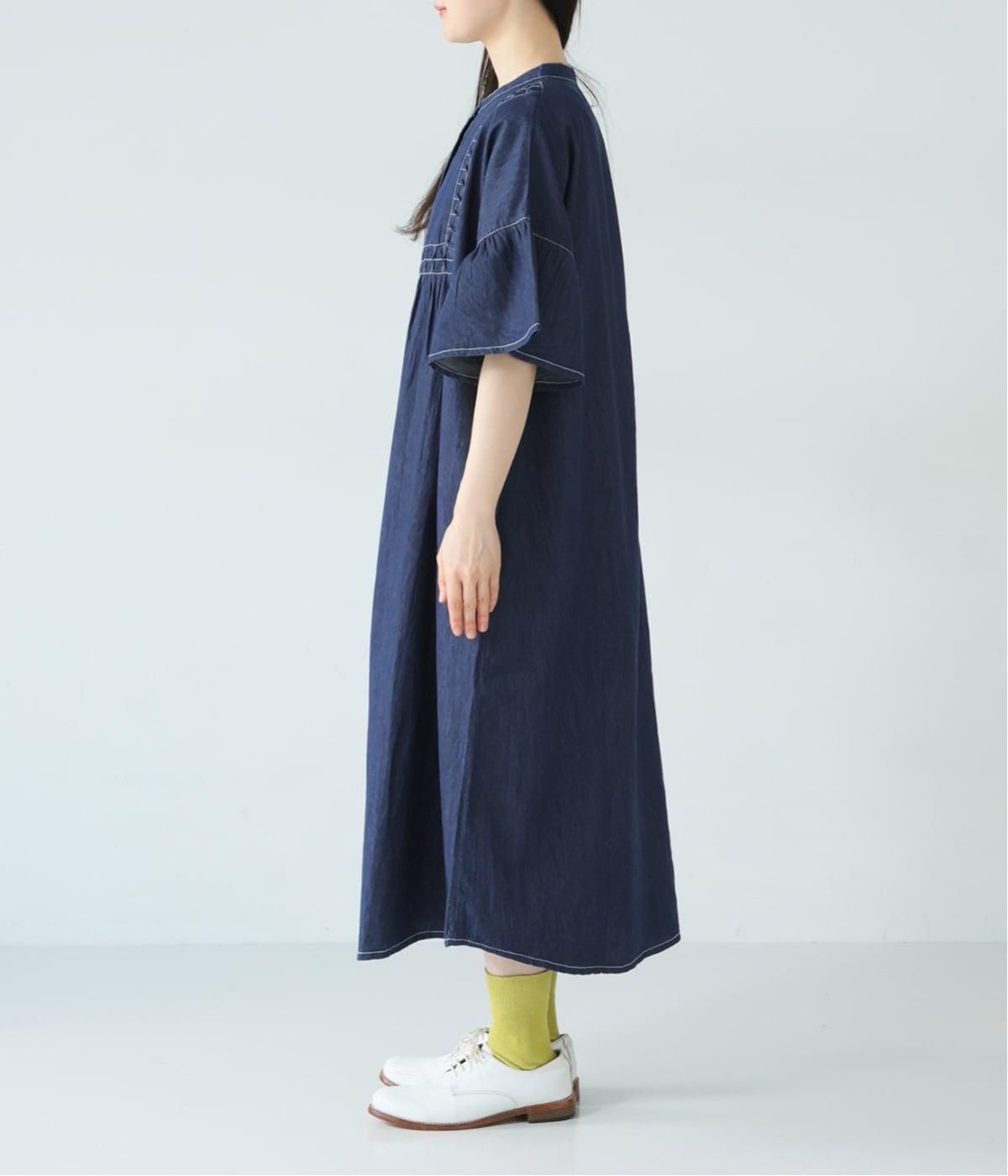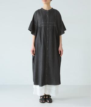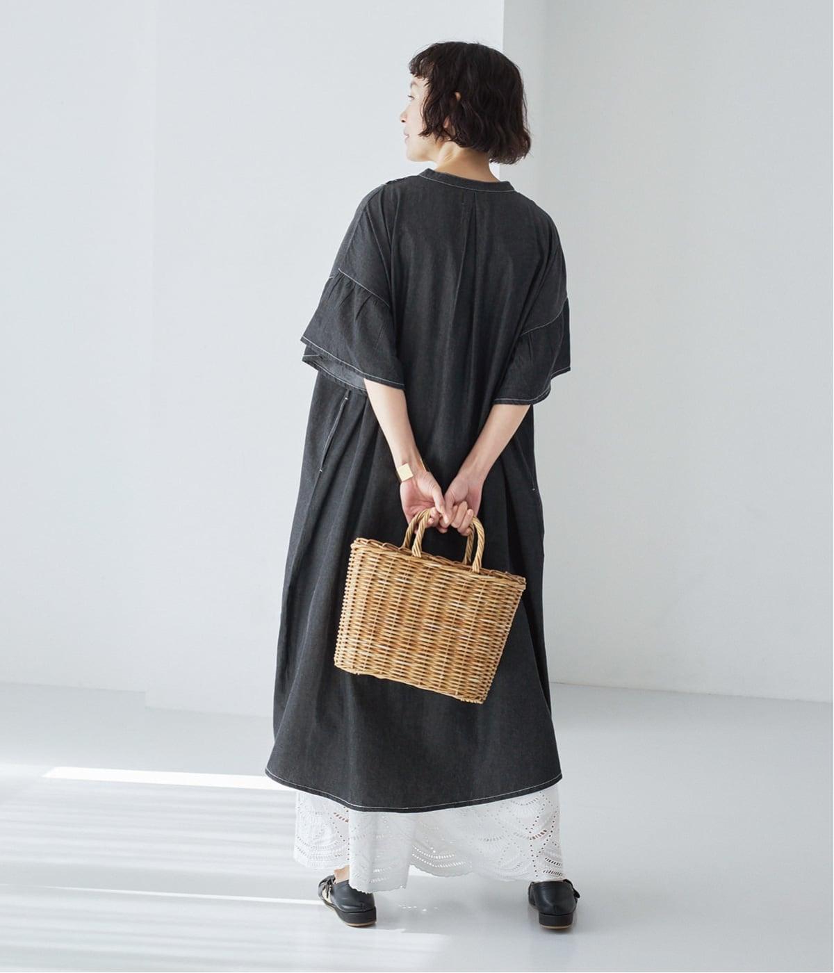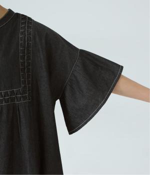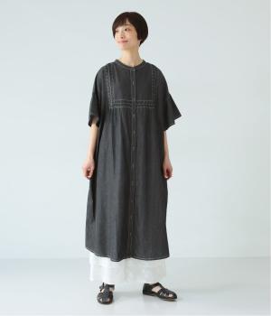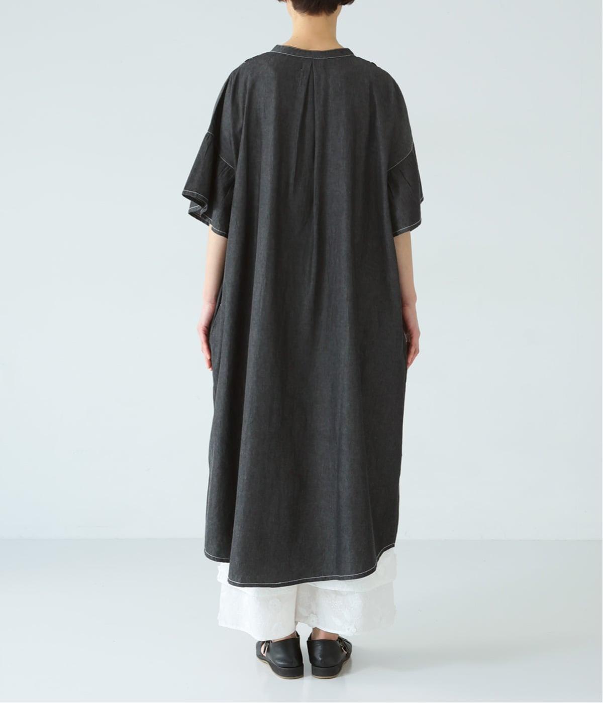 ゆったりとしたシルエットに、胸元の繊細なディテールと袖口のフリルが映えるワンピース。さらりと袖を通すだけで、装いが自然と整います。