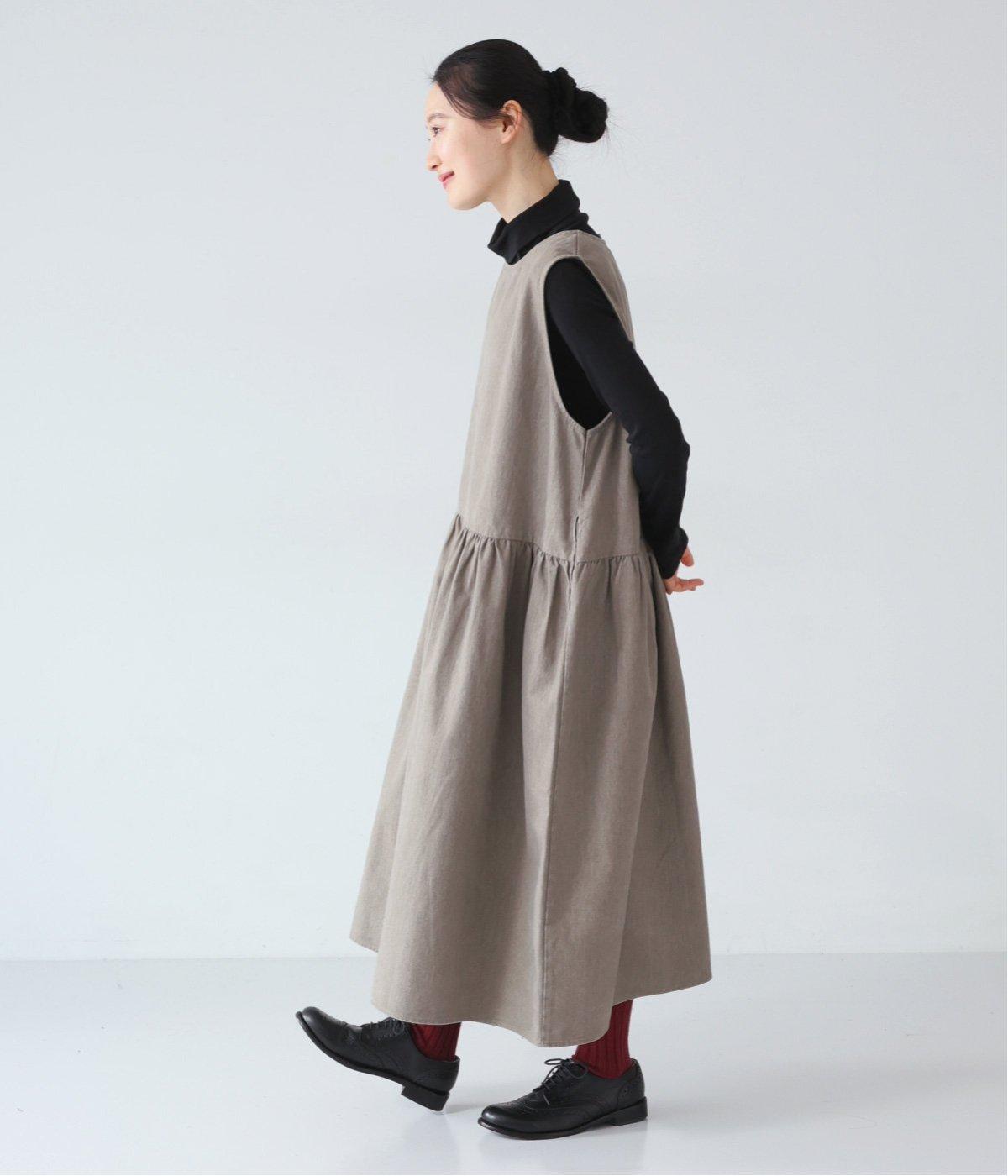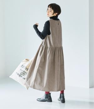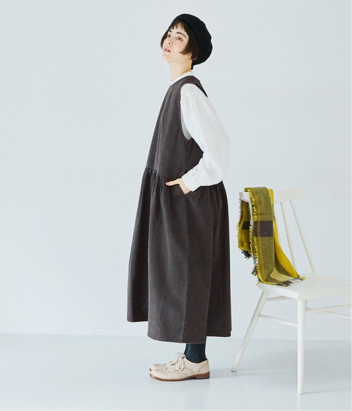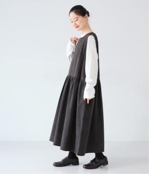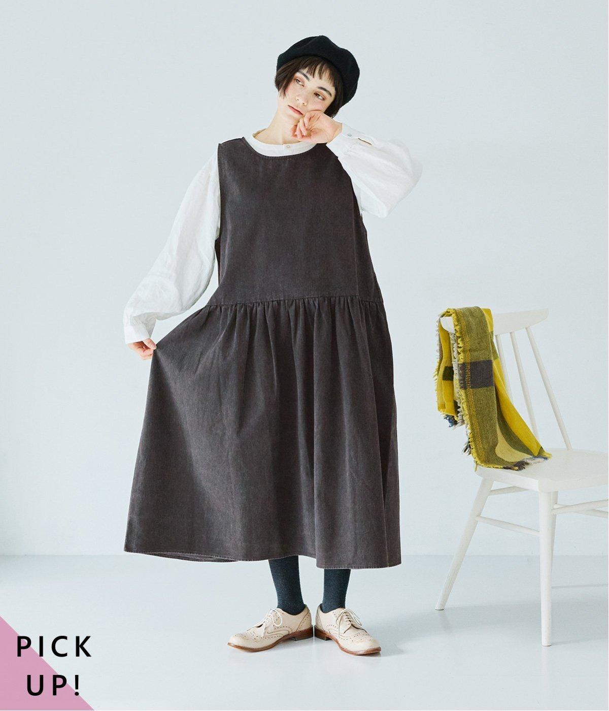 ゆったりとしたAラインのシルエットに、ウエストギャザーが女性らしいアクセントを加えるジャンパースカート。合わせやすい<チャコール><モカ>のベーシックカラーながらも、華やかさのあるデザインに仕上げました。