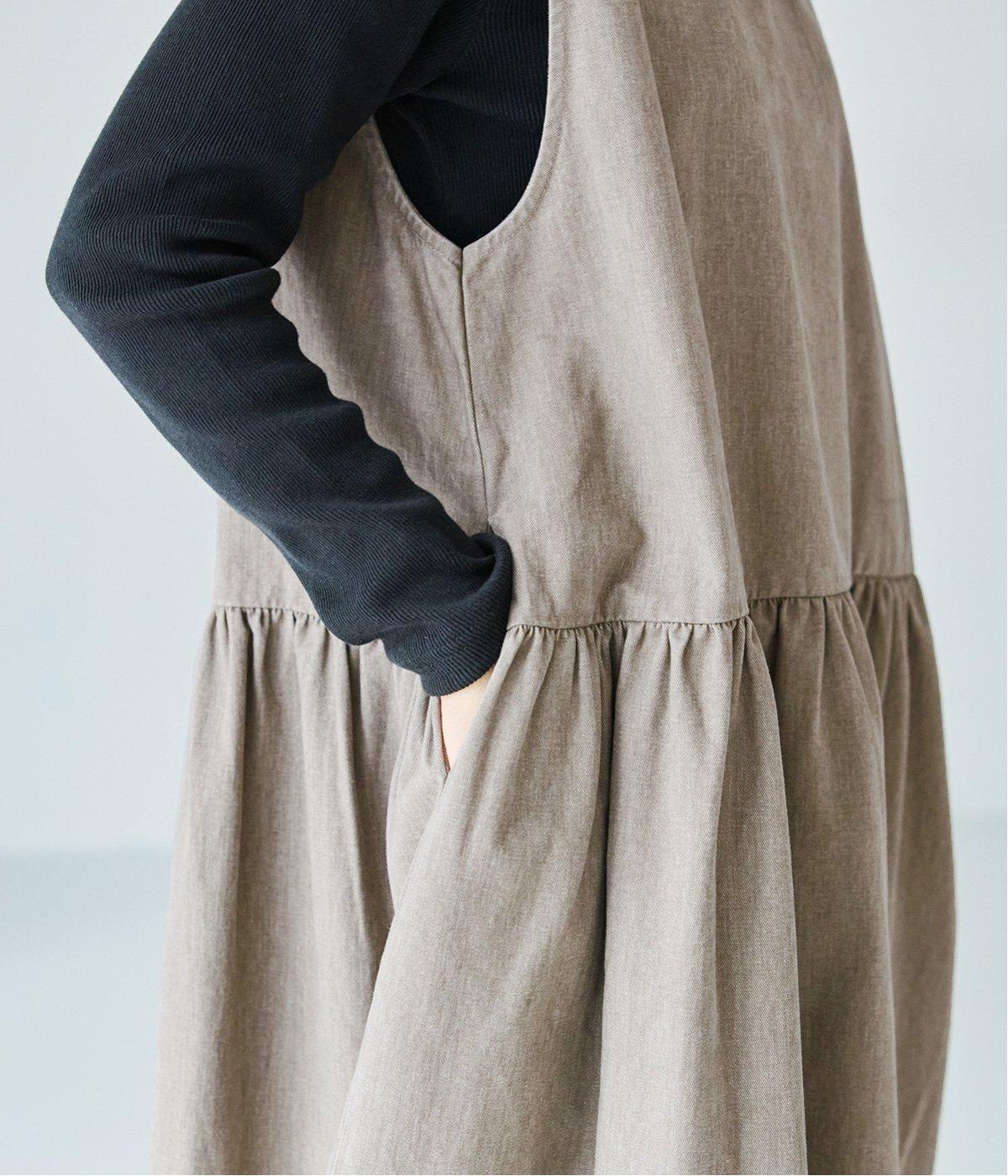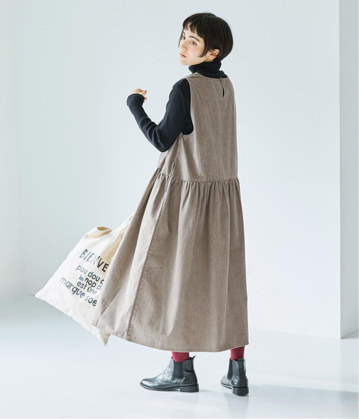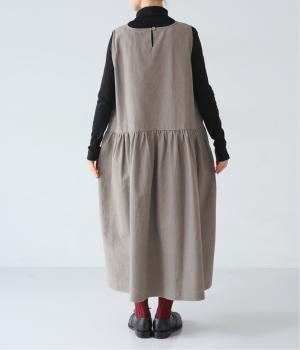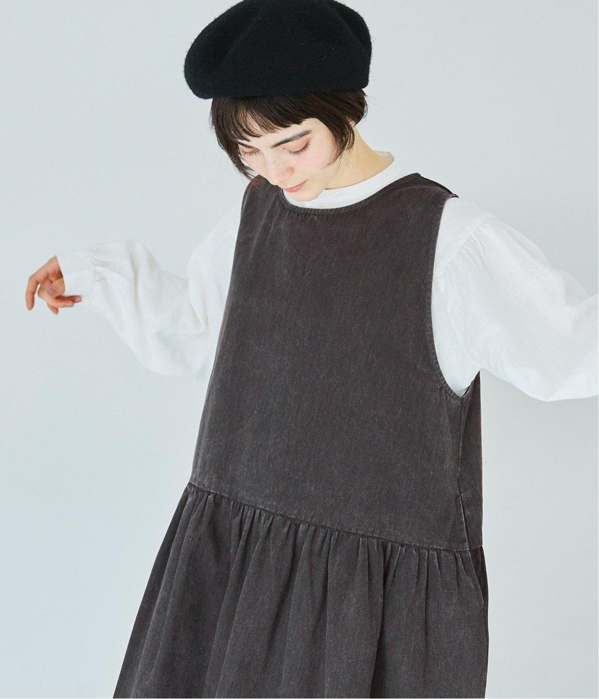 ゆったりとしたAラインのシルエットに、ウエストギャザーが女性らしいアクセントを加えるジャンパースカート。合わせやすい<チャコール><モカ>のベーシックカラーながらも、華やかさのあるデザインに仕上げました。
