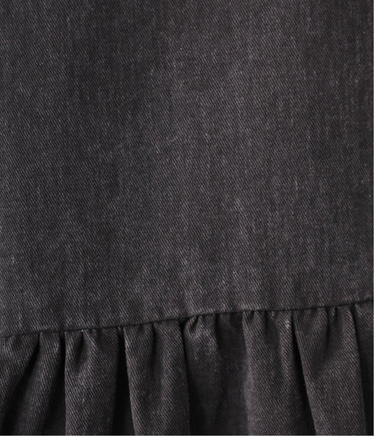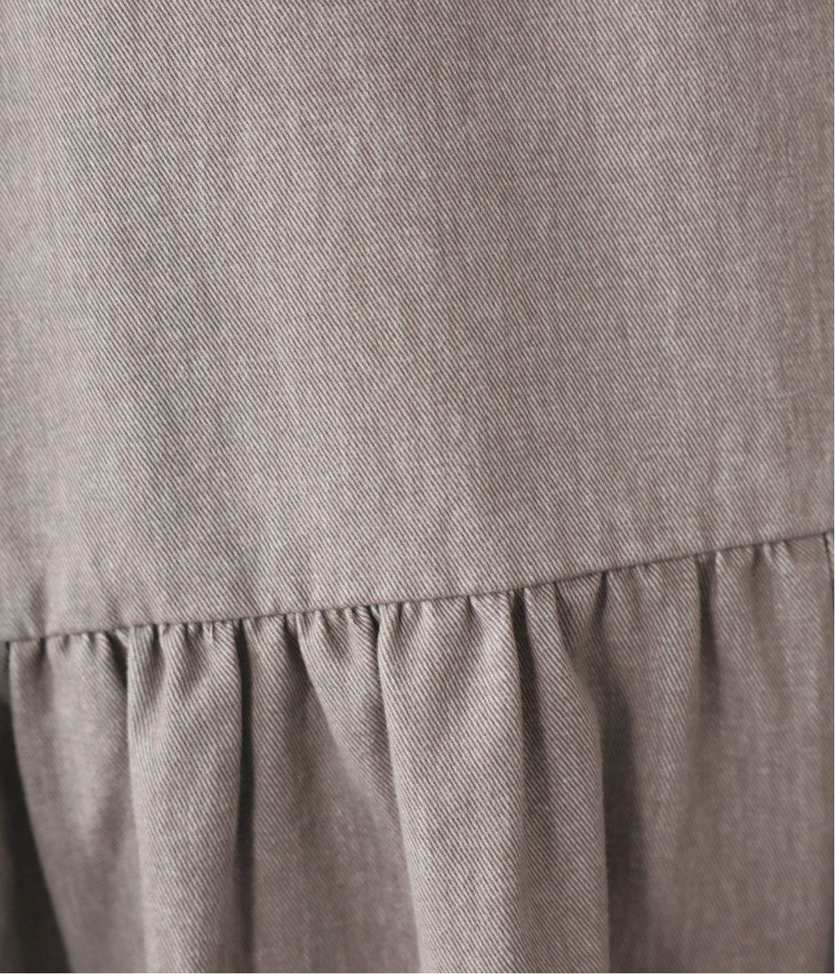 ギャザーはウエストより低めの位置に施すことで、大人らしい佇まいに。コットンツイルのハリのある生地感が、きれいに広がるラインを生み出します。