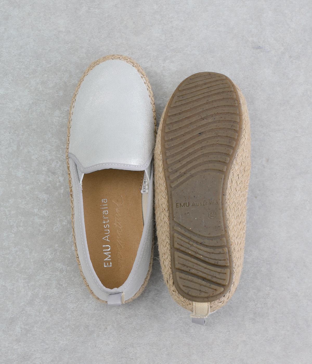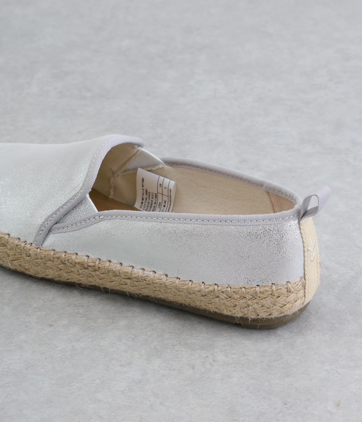 ジュートソールスリッポンをメタリックカラーでシティ仕様にアップデート。ナチュラル感とのバランスが良く、さまざまなシチュエーションで活躍。低反発でクッション性のあるフットベッドに軽量仕上げで履き心地も抜群。