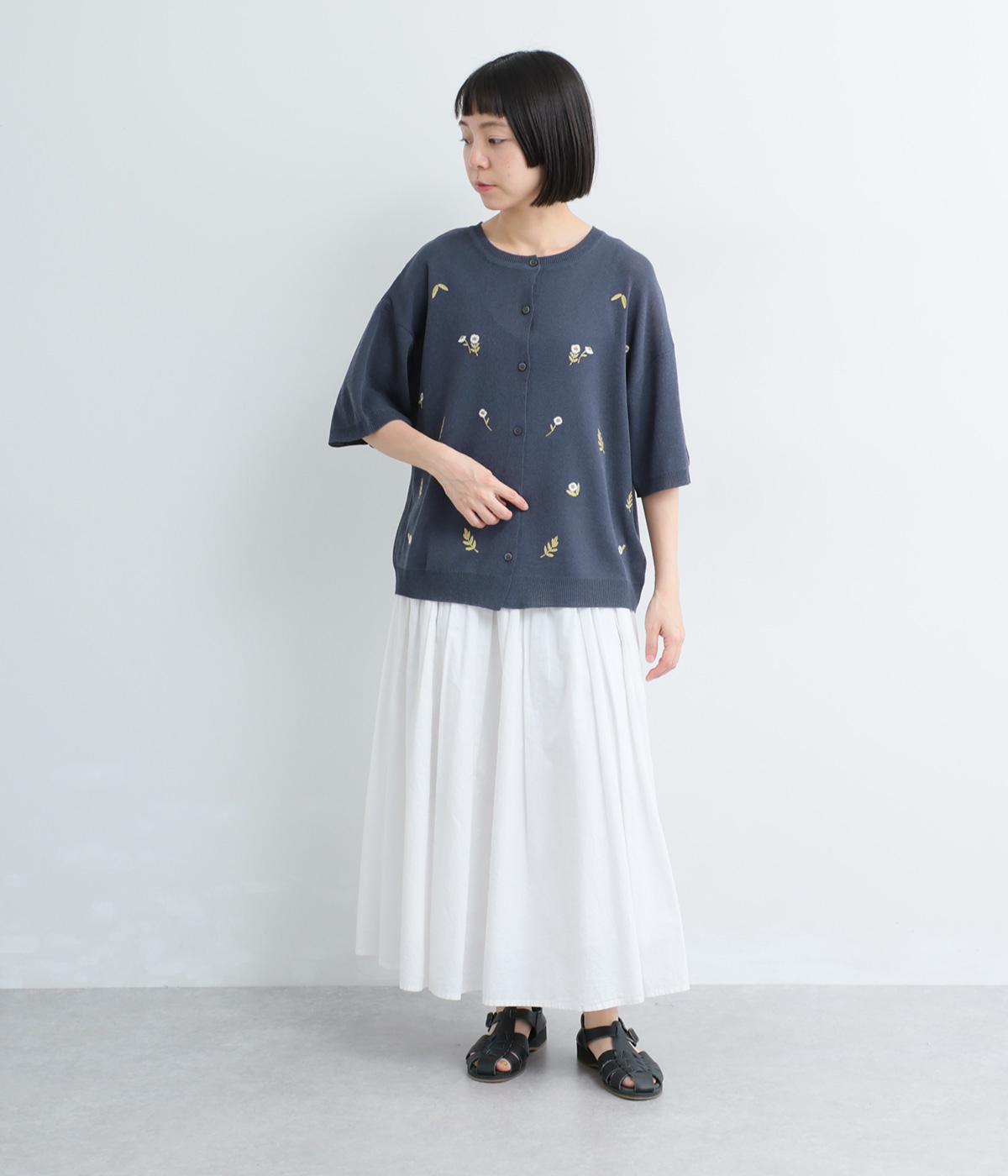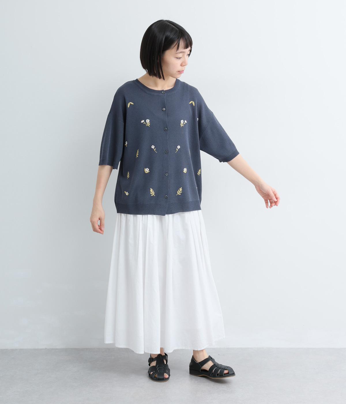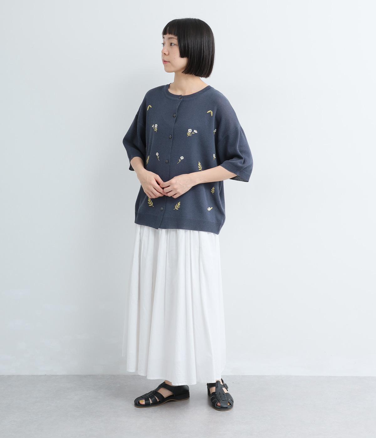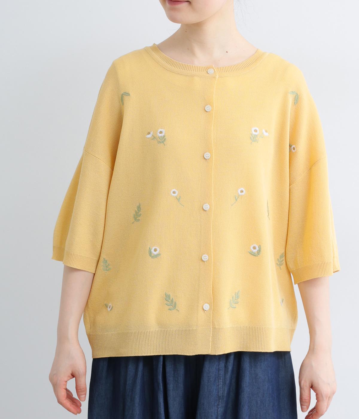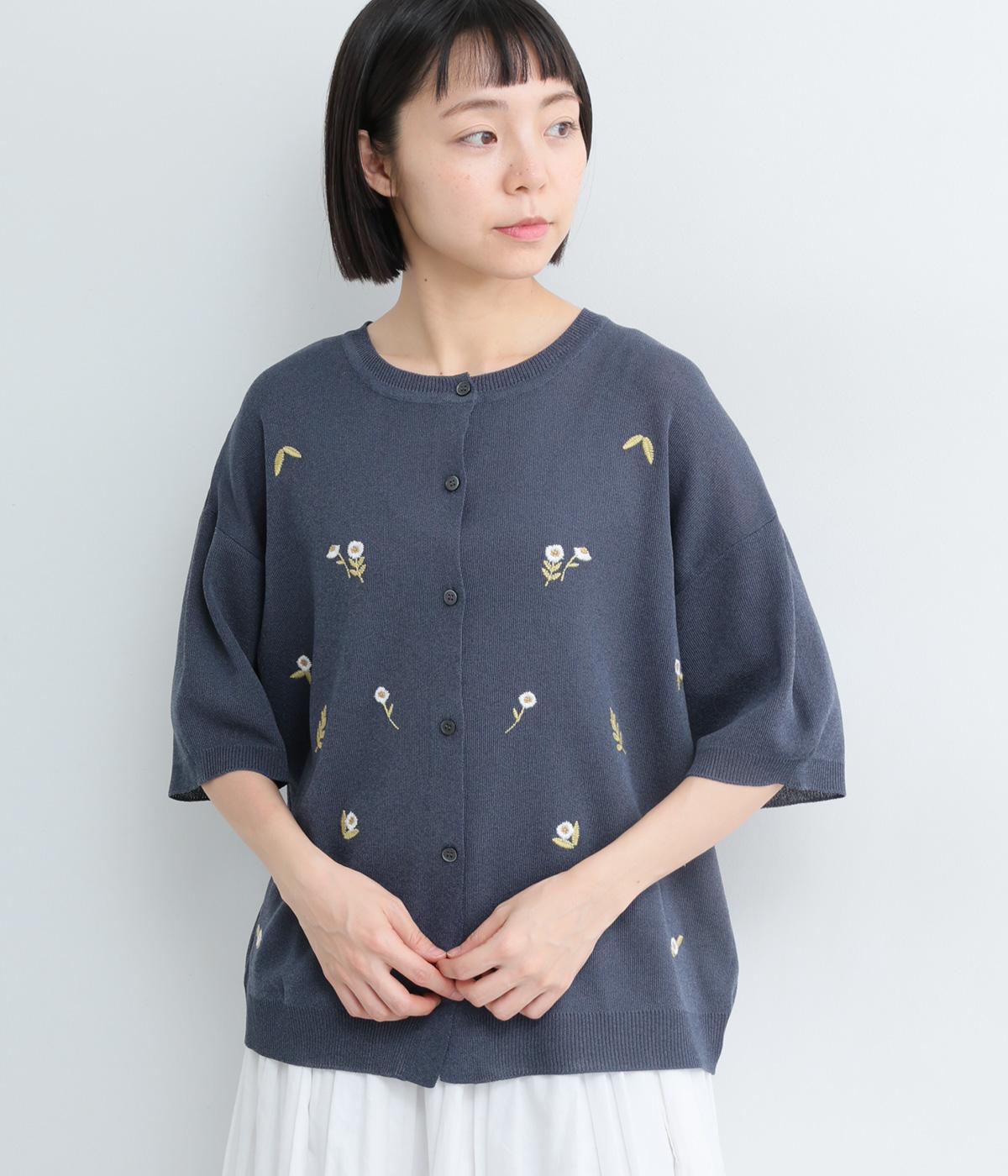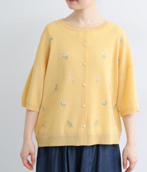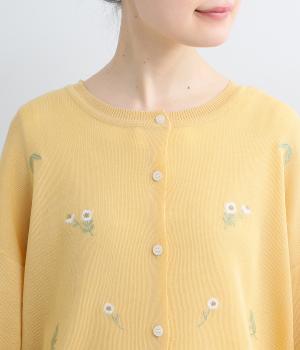 草花刺繍シアーニットカーディガン