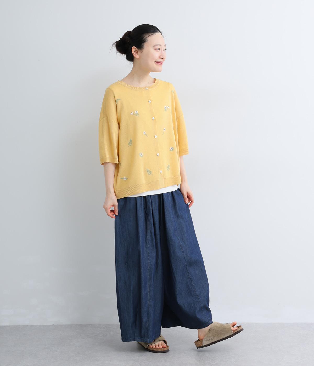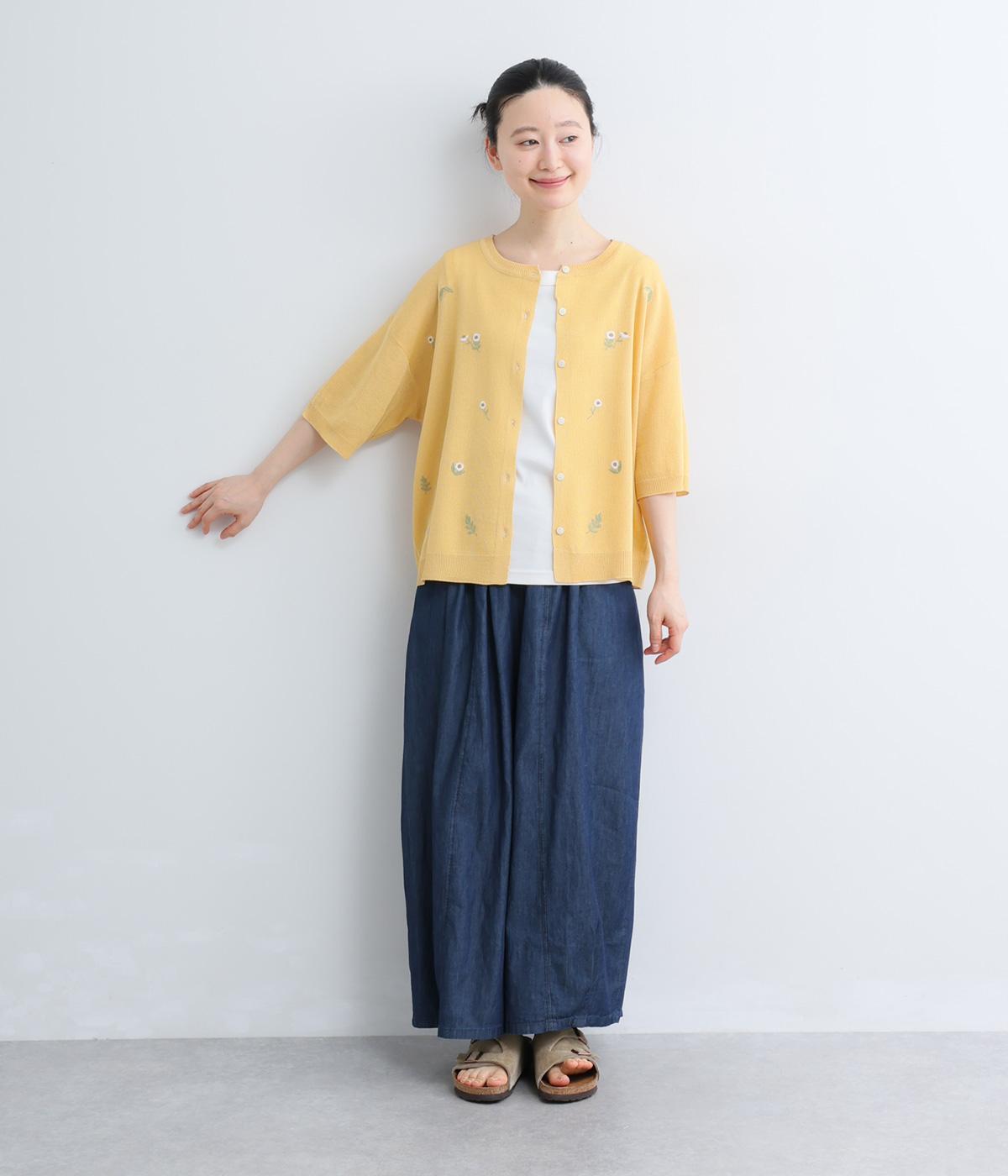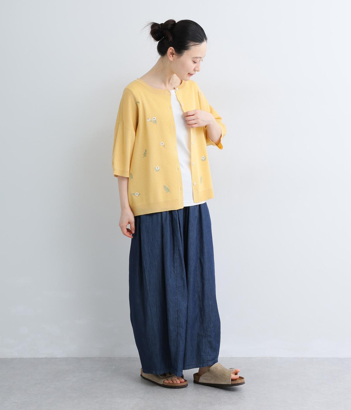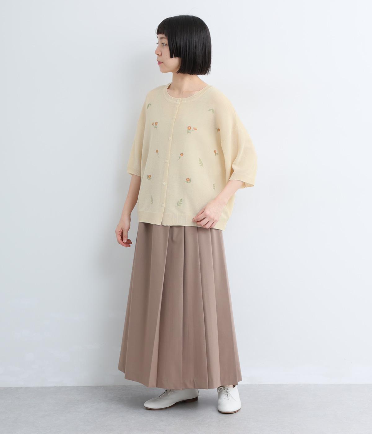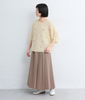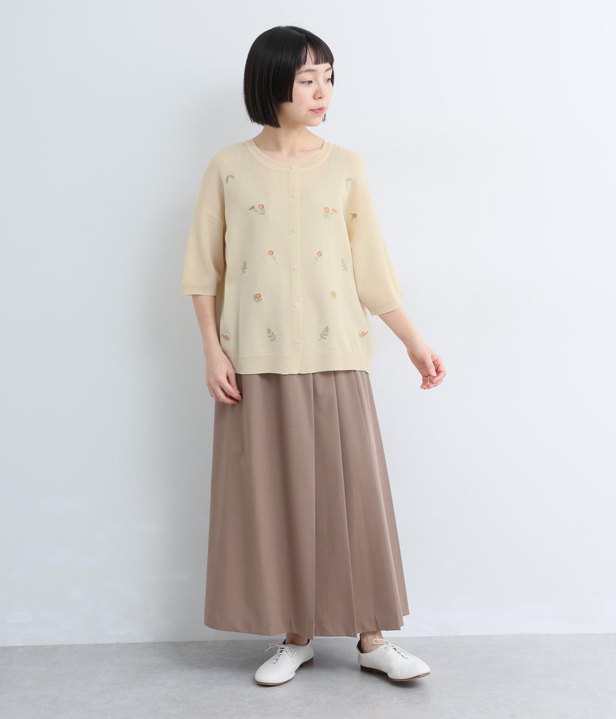 草花刺繍シアーニットカーディガン