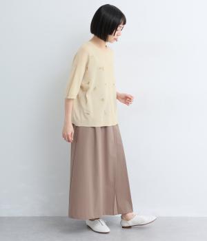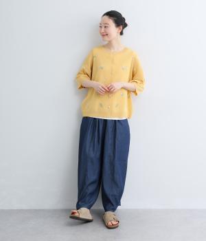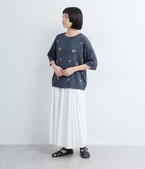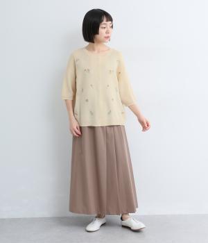 裏毛×コットンリネン刺繍切替プルオーバー