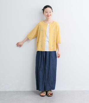 先染コットン無地・花柄刺繍・ドットドビー柄前開き裾前後差付チュニック