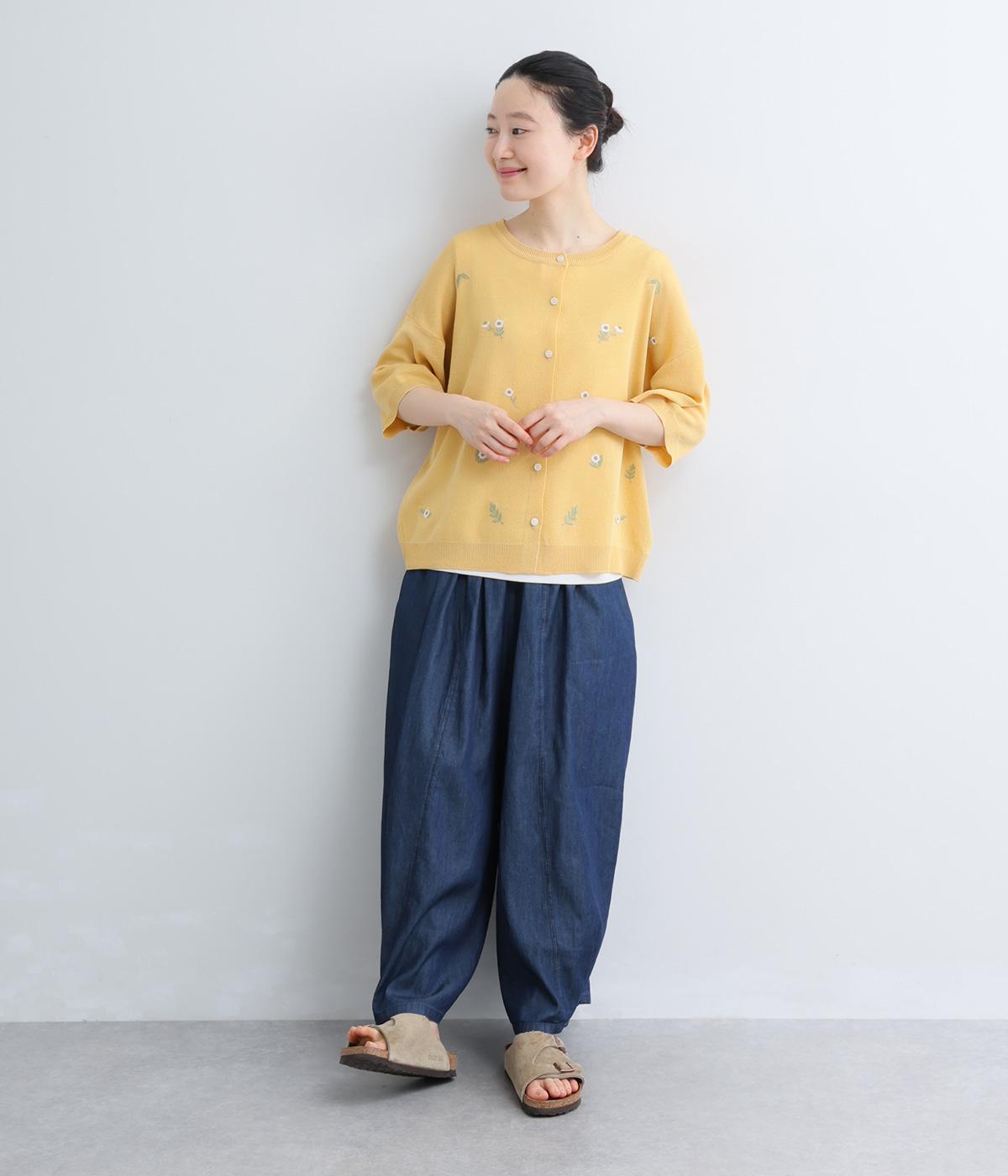 コットンニット植木鉢花刺繍カーディガン