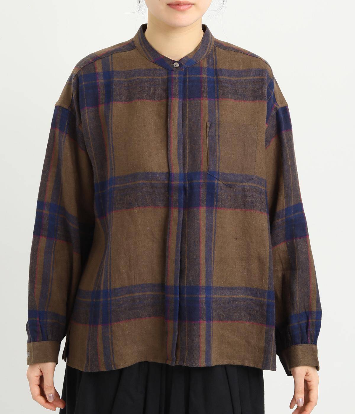 ポイントのある配色が目を惹くタータンチェック柄ブラウス。トラッドさとカジュアルさのバランスが良く、大人スタイルのメインになります。バンドカラーに比翼ボタンのすっきりとした仕立てでチェック柄を惹き立てました。