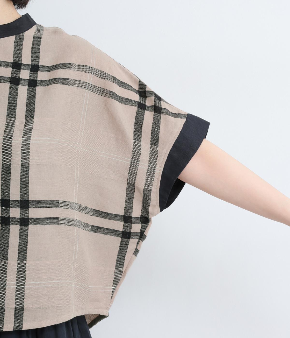 ゆったりとしたドルマン袖が体のラインを拾いにくく、気負いのない余裕を感じさせる一枚。後ろ裾を長くラウンドさせることでシルエットに動きが生まれ、ラフなボトム合わせもお洒落見え。襟ぐりや袖はリネン生地に切り替えてさり気なくメリハリを。