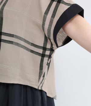 独特の凹凸感と通気性の良さが特徴的なパナマ織生地を使用しています。肌離れがよく清涼感があり、コットンリネンならではのナチュラル感も引き立っています。