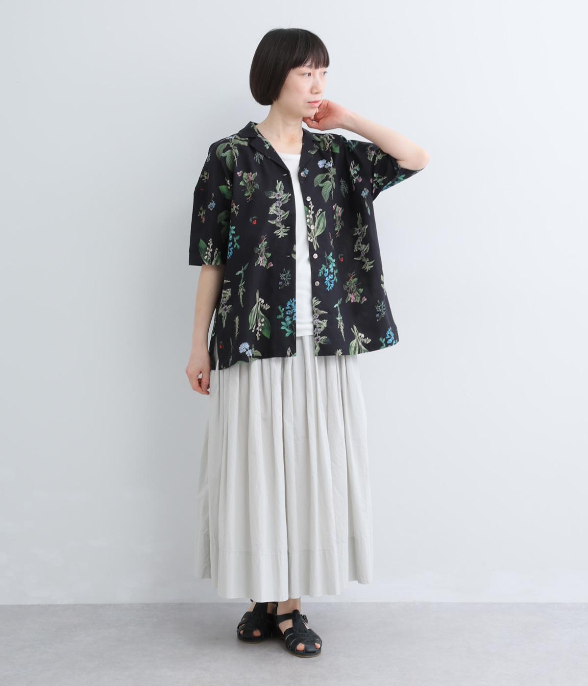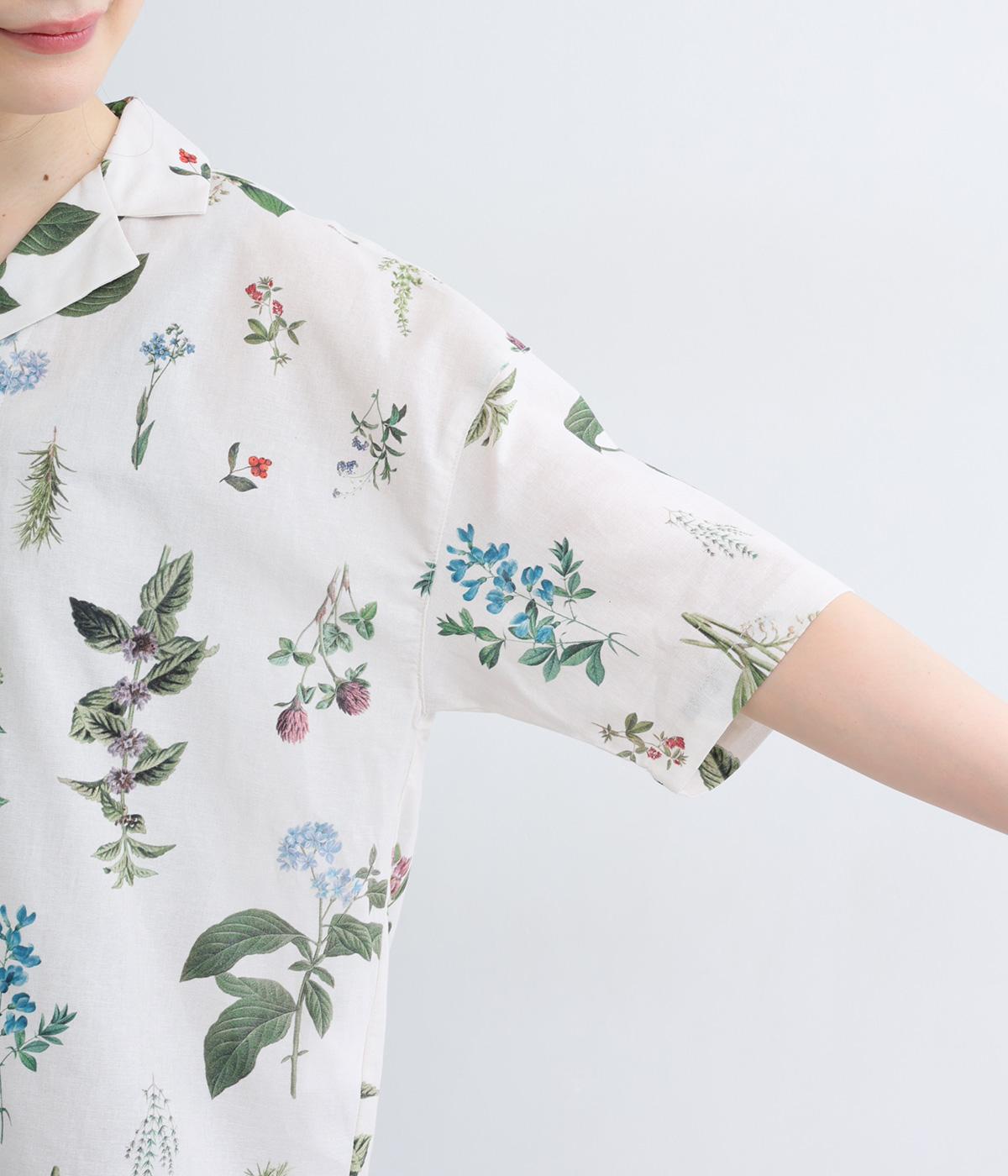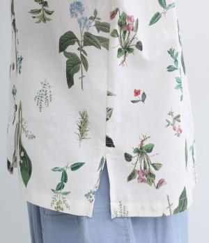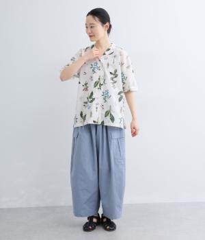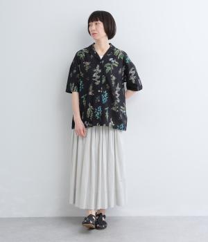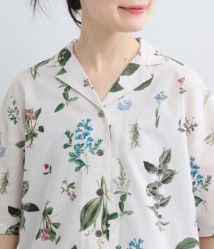 さわやかな開襟シャツに繊細なボタニカルプリントをのせて、品のいいリゾートスタイルにアップデート。シンプルなボックスシルエットに裾スリットで抜け感を出し、メンズライクな合わせにもはまります。汗ばむ季節はノースリーブに羽織ったりラフな装いも◎。