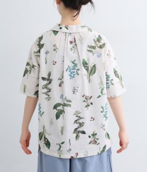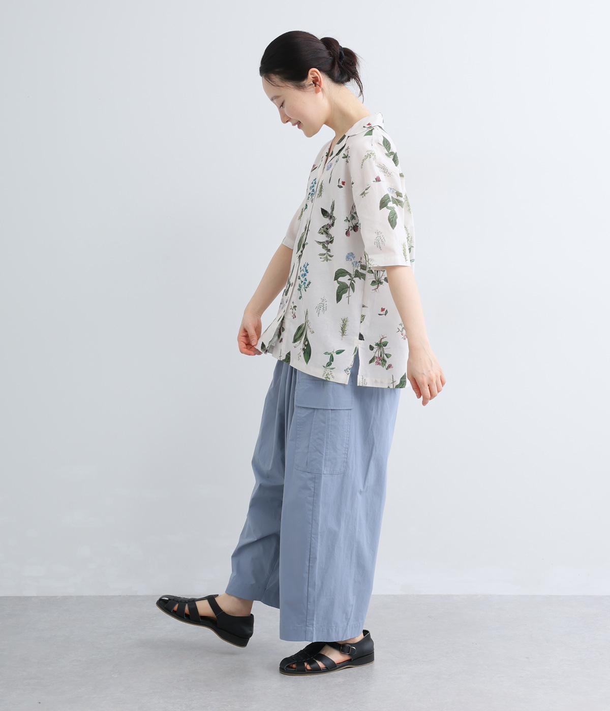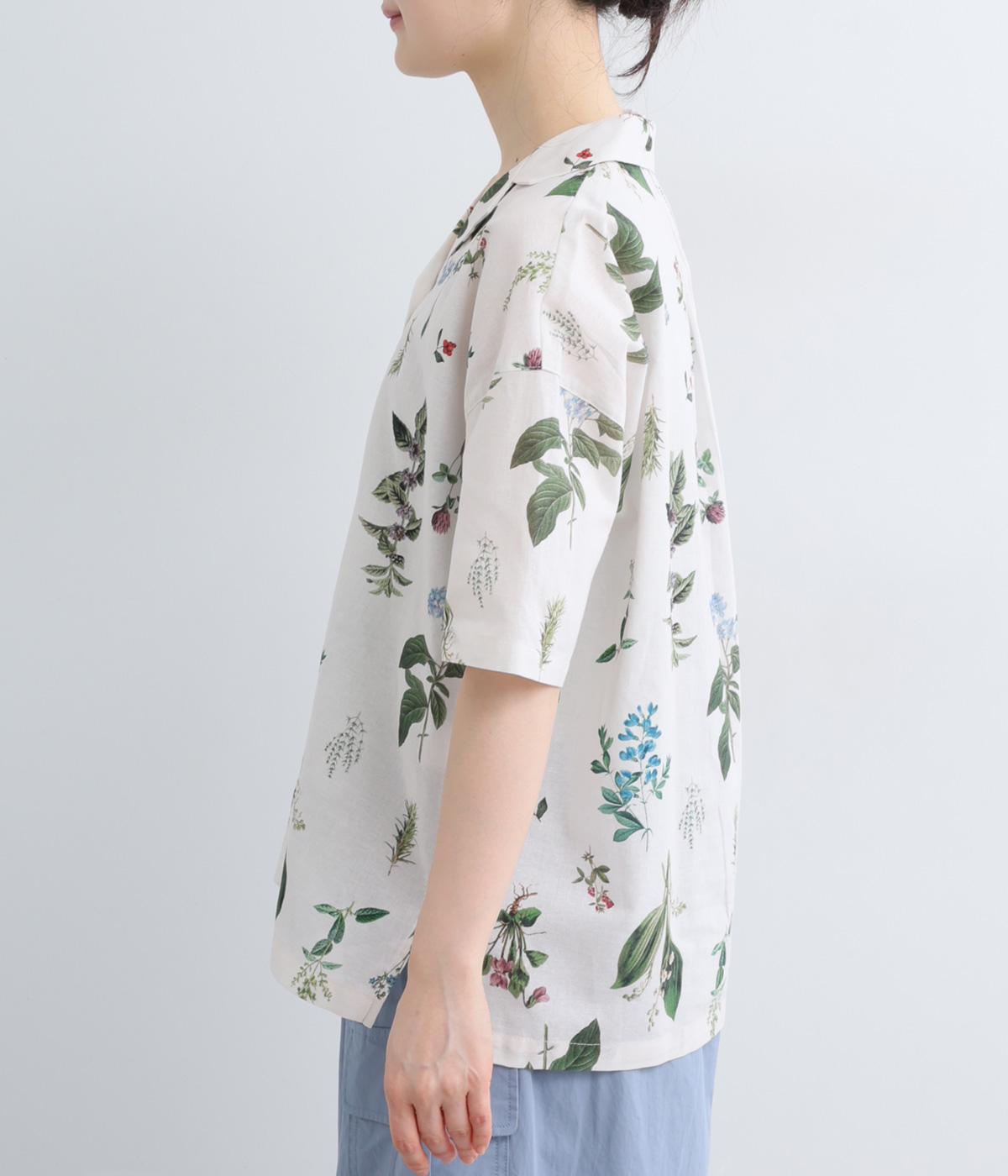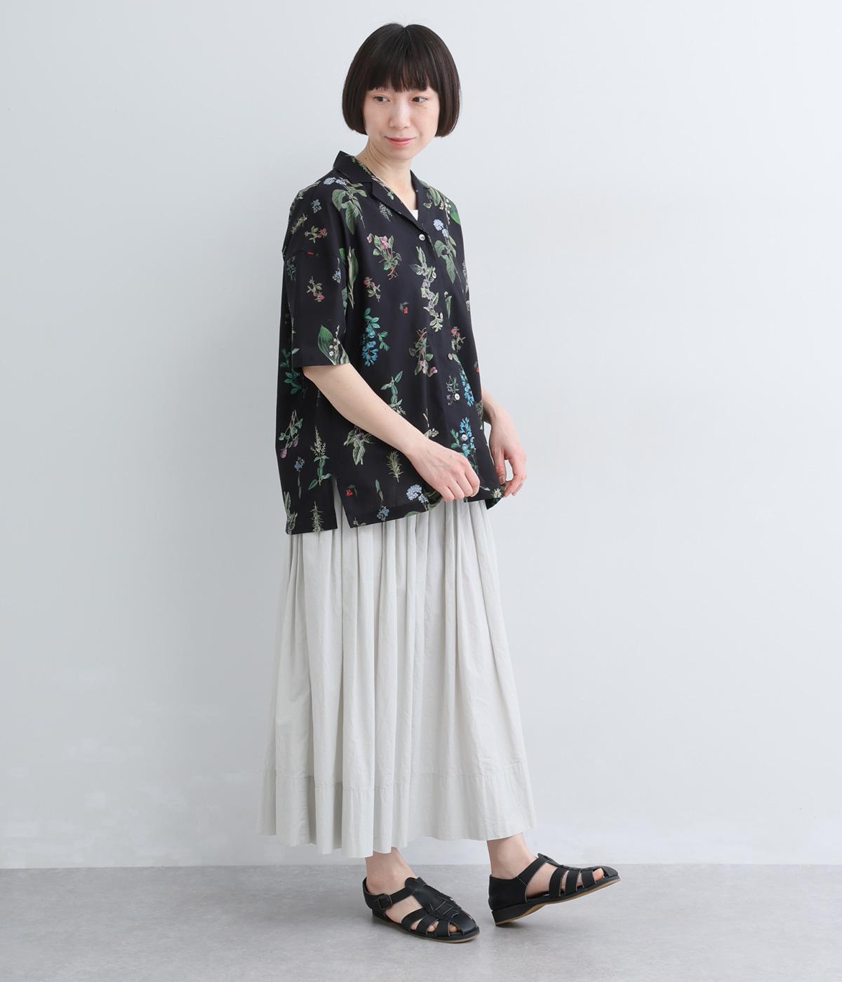 さわやかな開襟シャツに繊細なボタニカルプリントをのせて、品のいいリゾートスタイルにアップデート。シンプルなボックスシルエットに裾スリットで抜け感を出し、メンズライクな合わせにもはまります。汗ばむ季節はノースリーブに羽織ったりラフな装いも◎。
