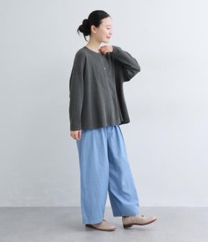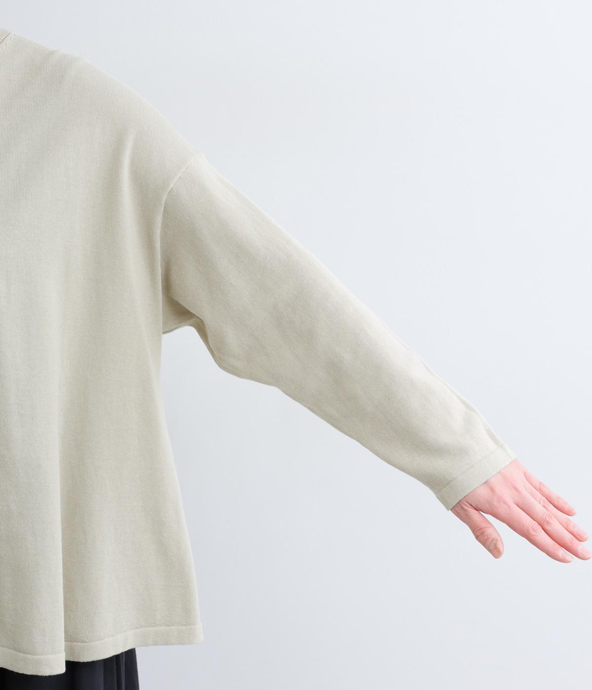 肌触りがさらりとドライで、通気性や吸水性に優れた強撚コットンニットを使用しています。適度にしっかりしながらもやわらかで、独特のシャリ感があり着心地も快適です。