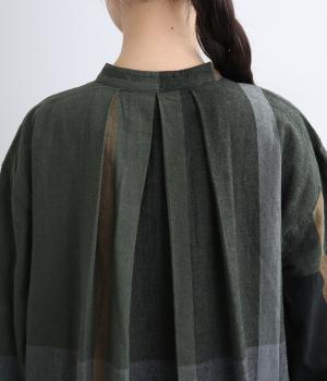 表面感のあるコットンリネンのアムンゼン織りで仕上げた、ブランドオリジナルのパネルチェック素材を使用しました。やわらかな質感で軽い着心地が魅力です。