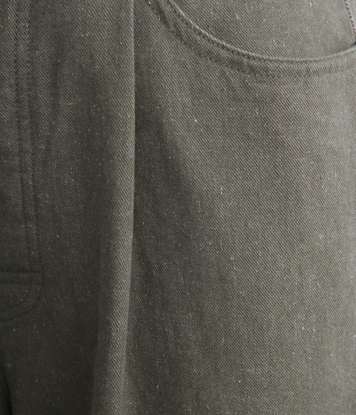ナチュラルな風合いをより惹き立てたコットンリネンデニムを使用。綿のやわらかさと麻のシャリ感を持ちあわせた中厚手生地で季節問わず長く着まわせます。