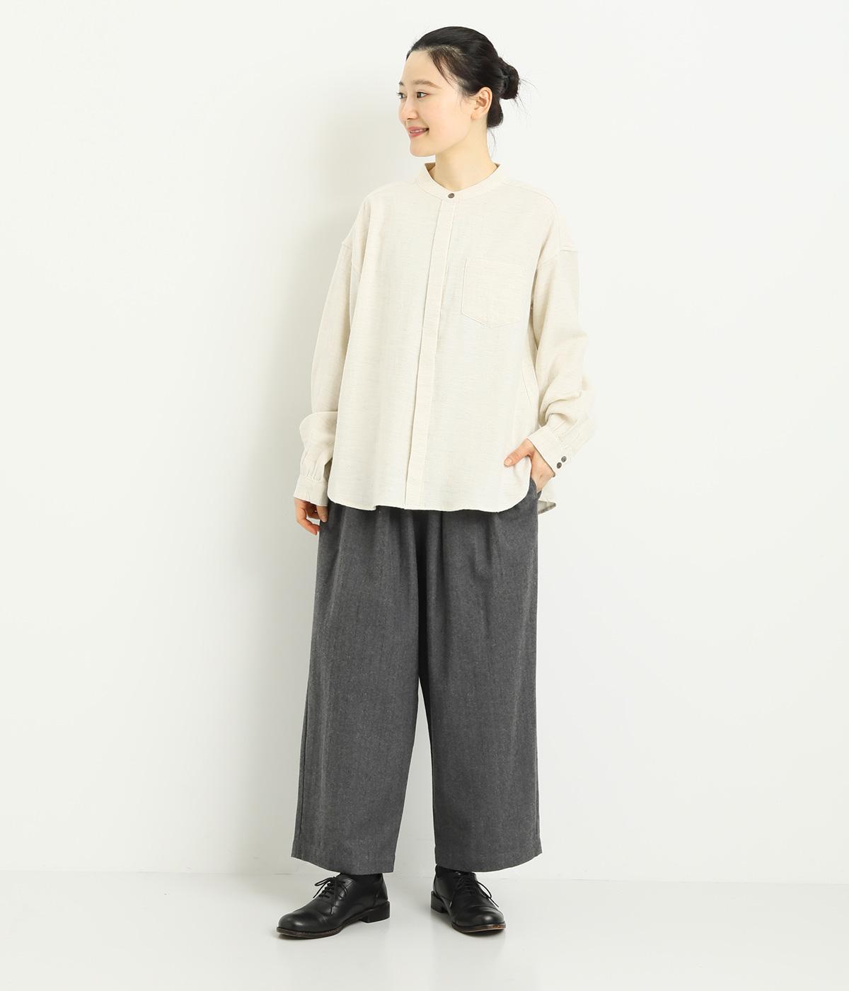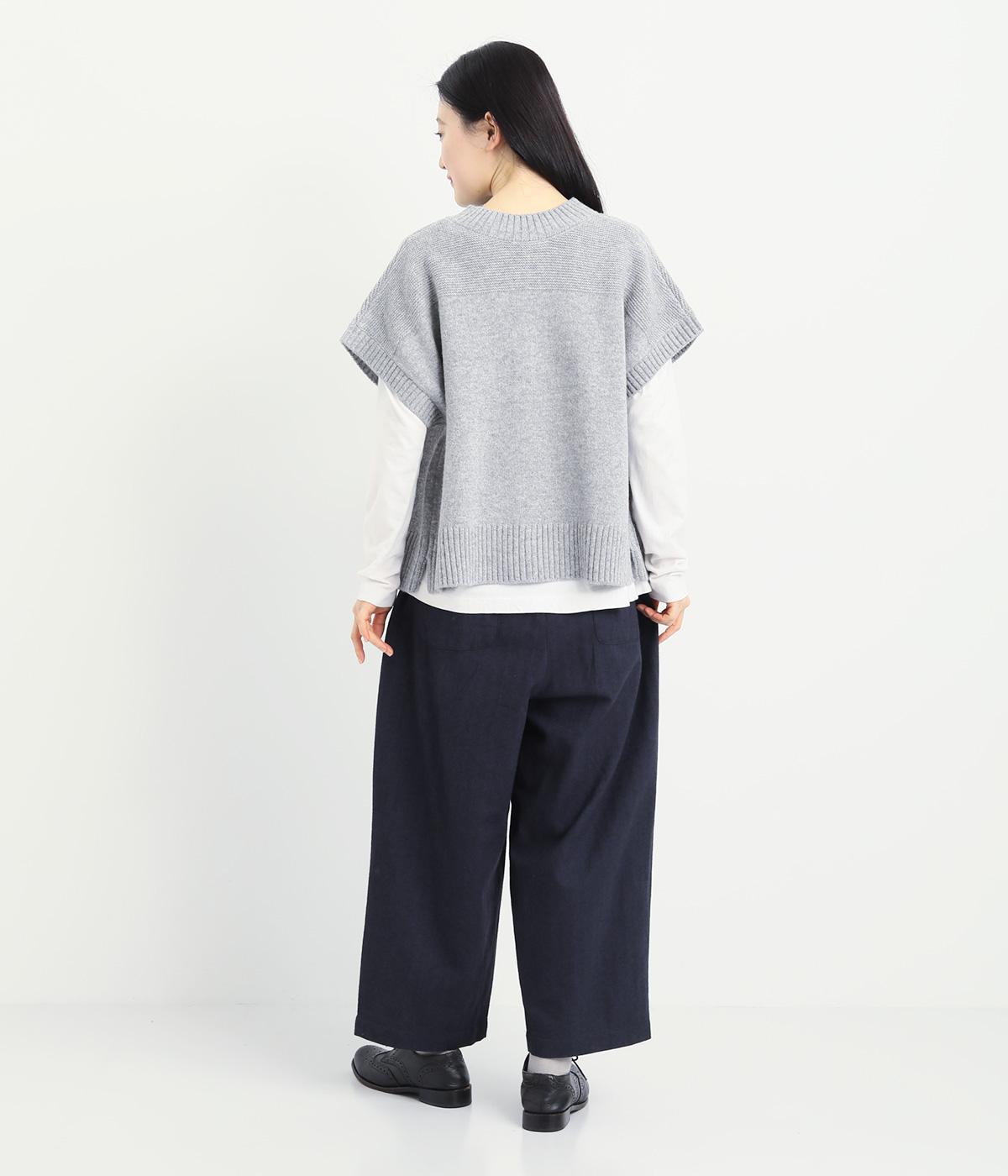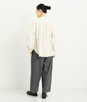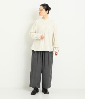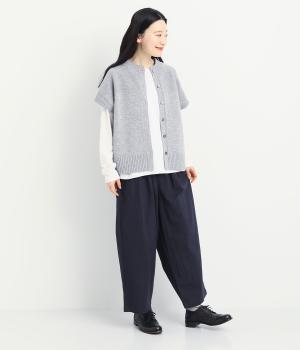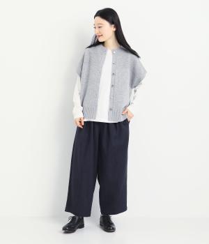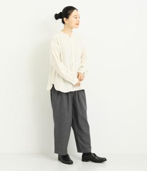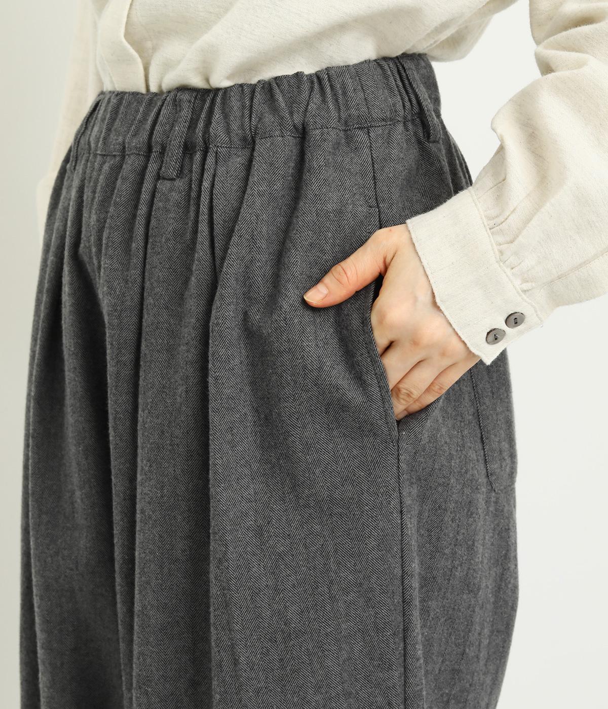 タックを寄せた分量感にクラシカルテイストな素材で雰囲気よく仕立てました。大人の落ち着いた装いにぴったりなパンツで、紐靴などマニッシュシューズとも相性◎。ウエストは安定感のある総太平ゴムに内紐入りで調整も可能。