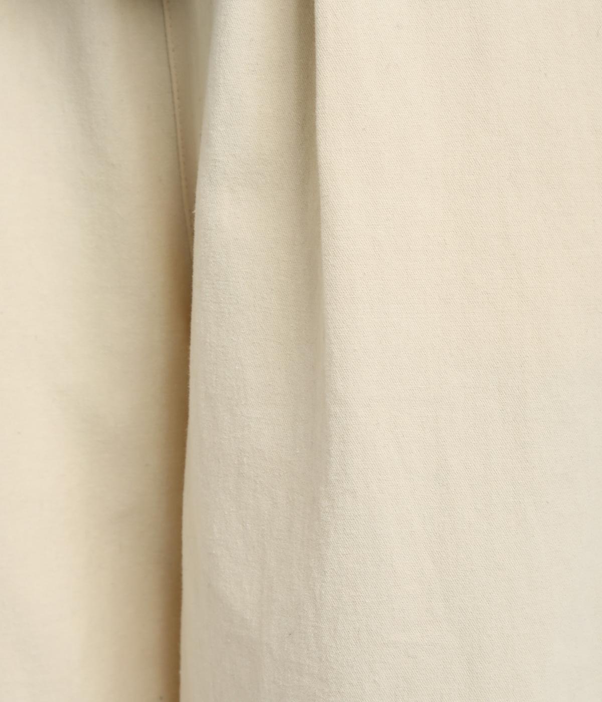 デイリー使いしやすいタフなコットン生地にピーチ起毛をかけて、ほんのりとしたあたたかみと優しい風合いをプラス。厚手すぎずはきやすい仕上がりです。