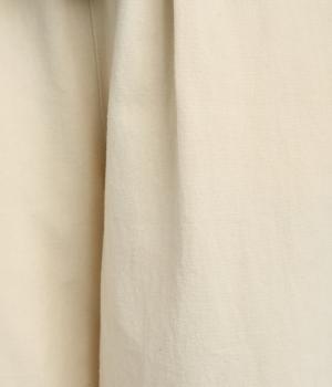 腰まわりは適度にゆったりと、裾はダーツを入れてすっきりバランスよくまとめたパンツ。素材の持つ風合いを活かしたシンプルな作りで、レイヤードスタイルや柄アイテムとの合わせにも活躍。ウエストは総ゴム&内紐つきです。