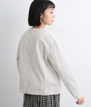 ナチュラルな風合いが心地よいコットンリネンデニムを使用。デニムならではのタフでしっかりとした質感を残しながらも羽織りやすく、使い勝手のいい中厚手生地でロングシーズン活躍します。