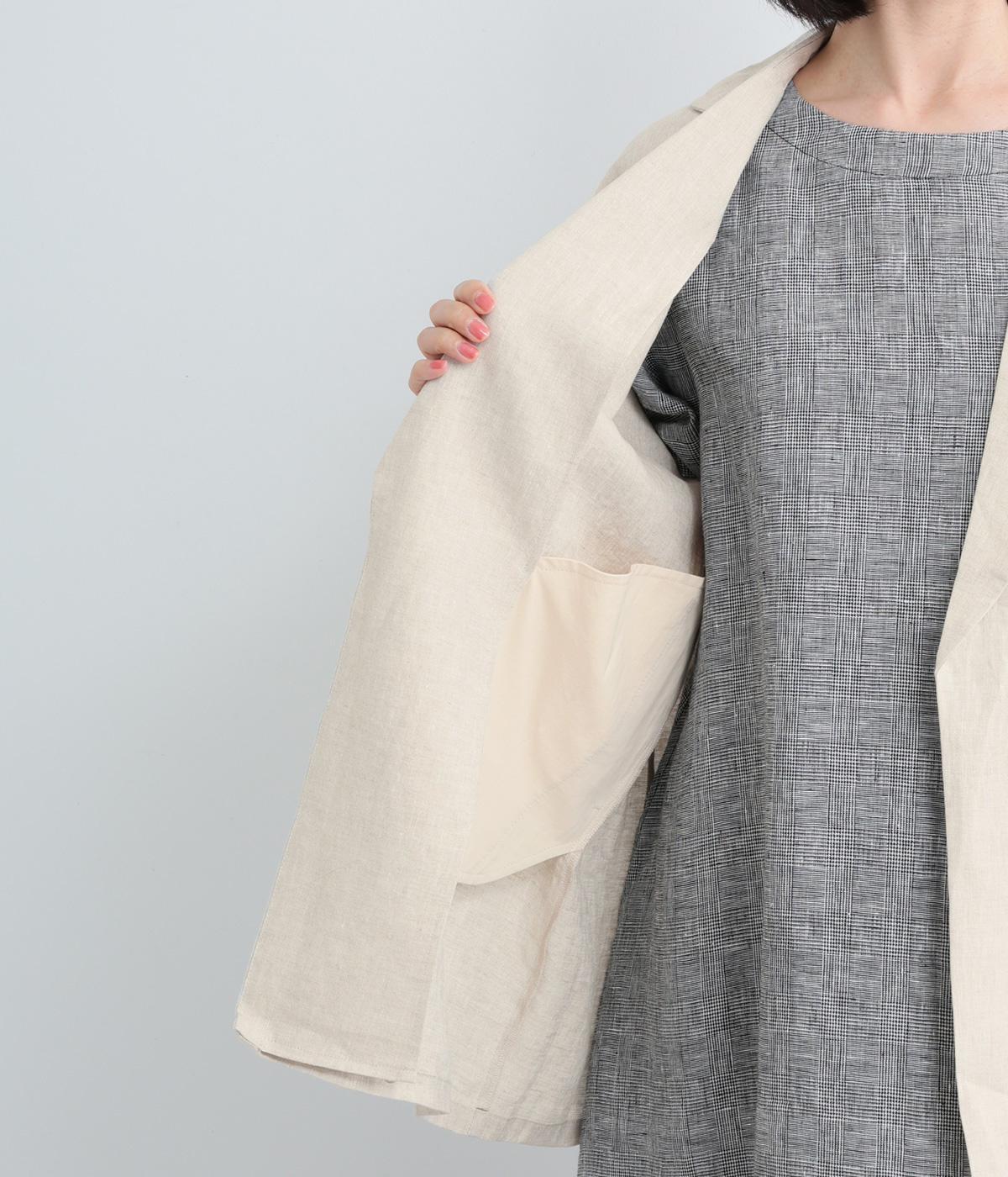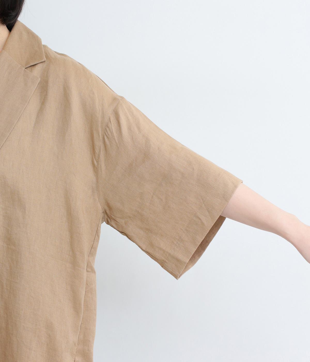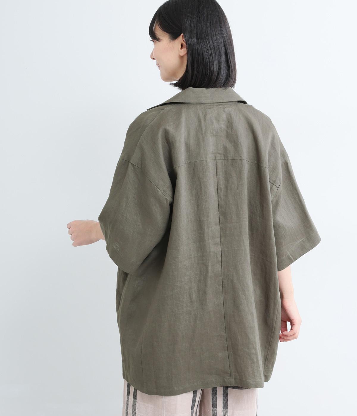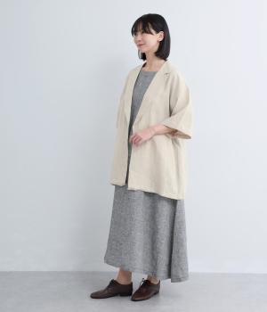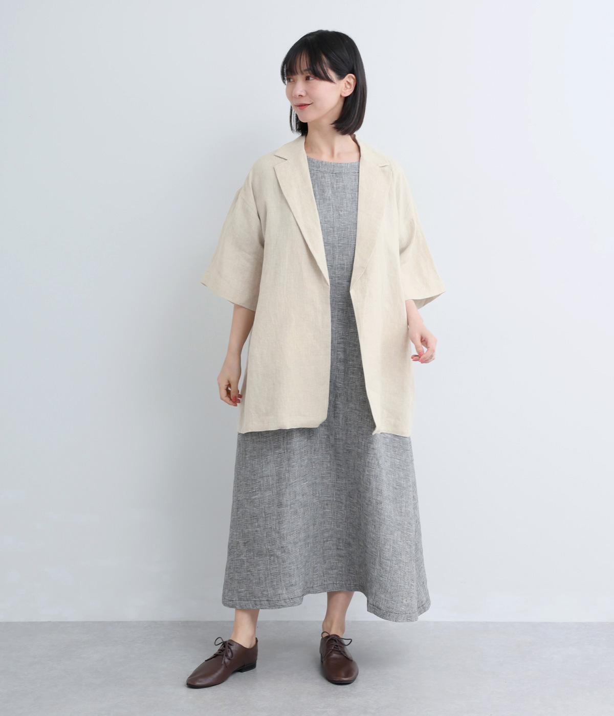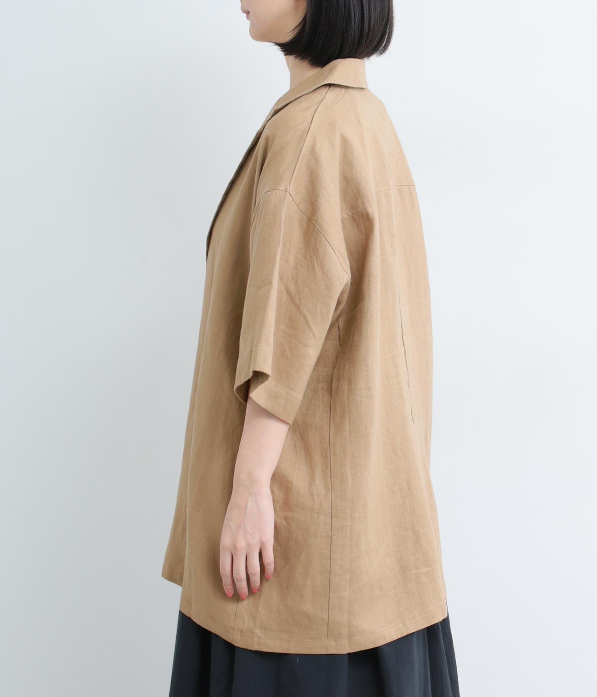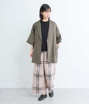 きちんと感のあるテーラード要素を取り入れつつ、ゆとりのある五分袖仕立てで抜け感をもたせました。リネンの素材感が良く、どんなアイテムに羽織ってもサマになります。オフィスカジュアルからふだん使いまで、毎日に寄り添う一着です。