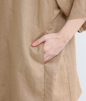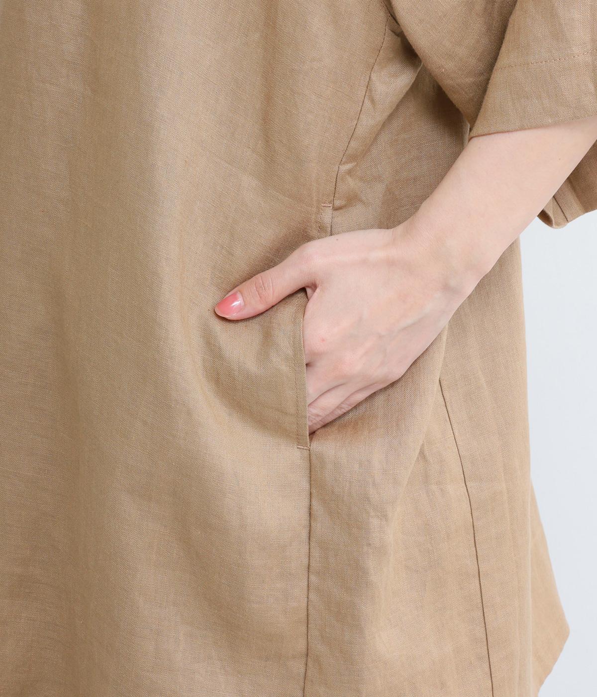 薄手ながらもほどよいハリとコシのあるリネン素材を使用。さらりとした心地よい肌触りで通気性にも優れた、清涼感と軽さが魅力の仕上がりです。