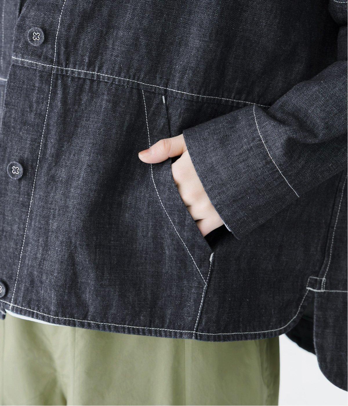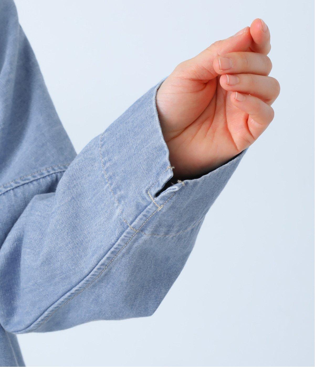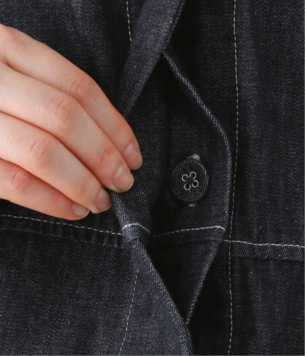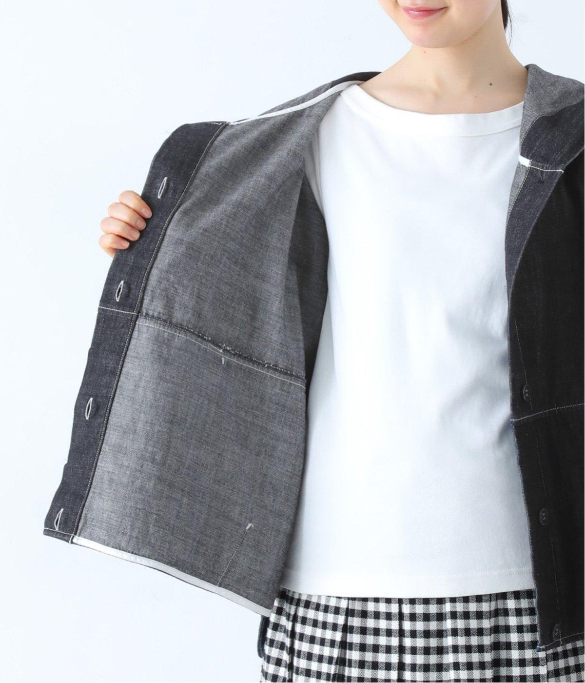 淡色のブリーチデニムで楽しむ、春のレイヤードスタイル。共布のくるみボタンをあしらい、前を開けたときにもボタンが目立たず生地に馴染みます。