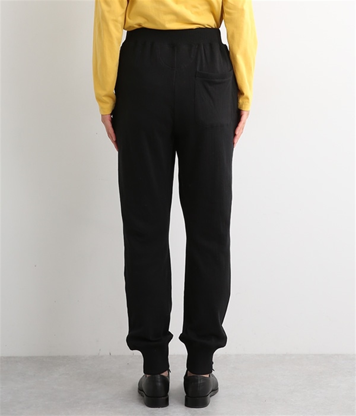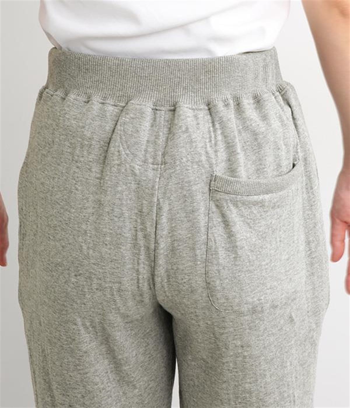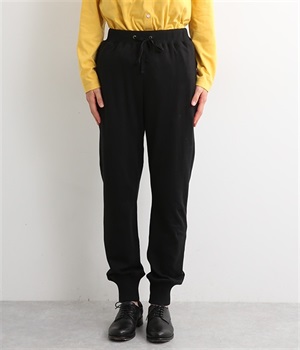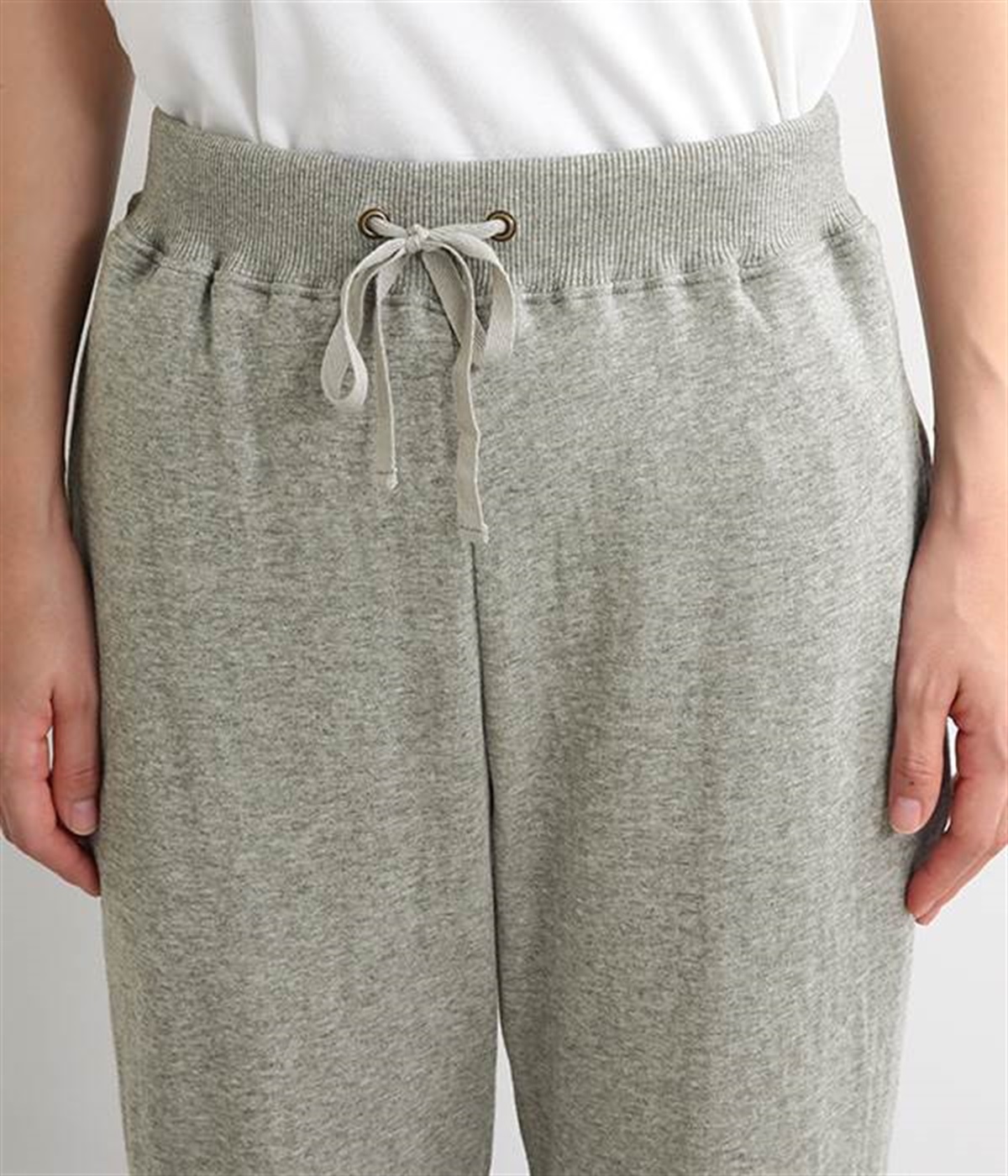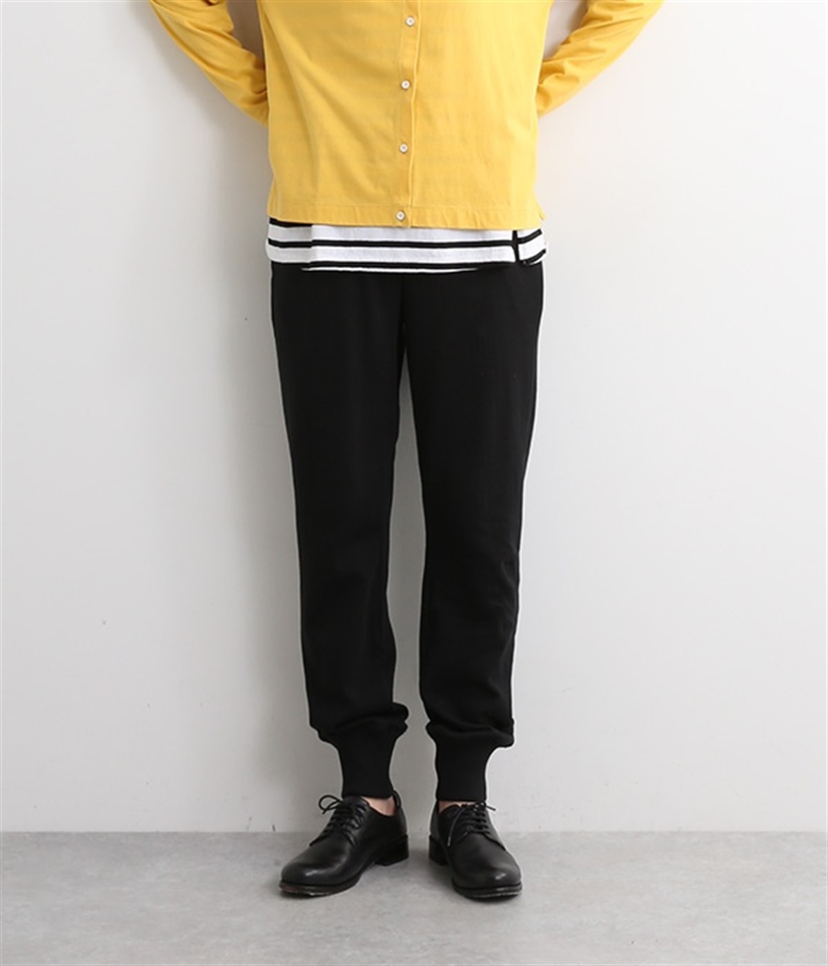 二層の素材でしっとりソフトな風合いに仕上げた接結天竺パンツ。ウエストはリブ&内ひも仕様でとてもフィット感が良く、はき心地は快適です。余裕を持たせすぎないすっきりシルエットを裾リブでさらにシャープに。単体でスポーティ感の強いスタイリングをするのはもちろん、ワンピースのインに取り入れる着まわしもおしゃれ。お出かけ着としてだけでなく、ゆるっとくつろぎたいおうち時間にもどうぞ。