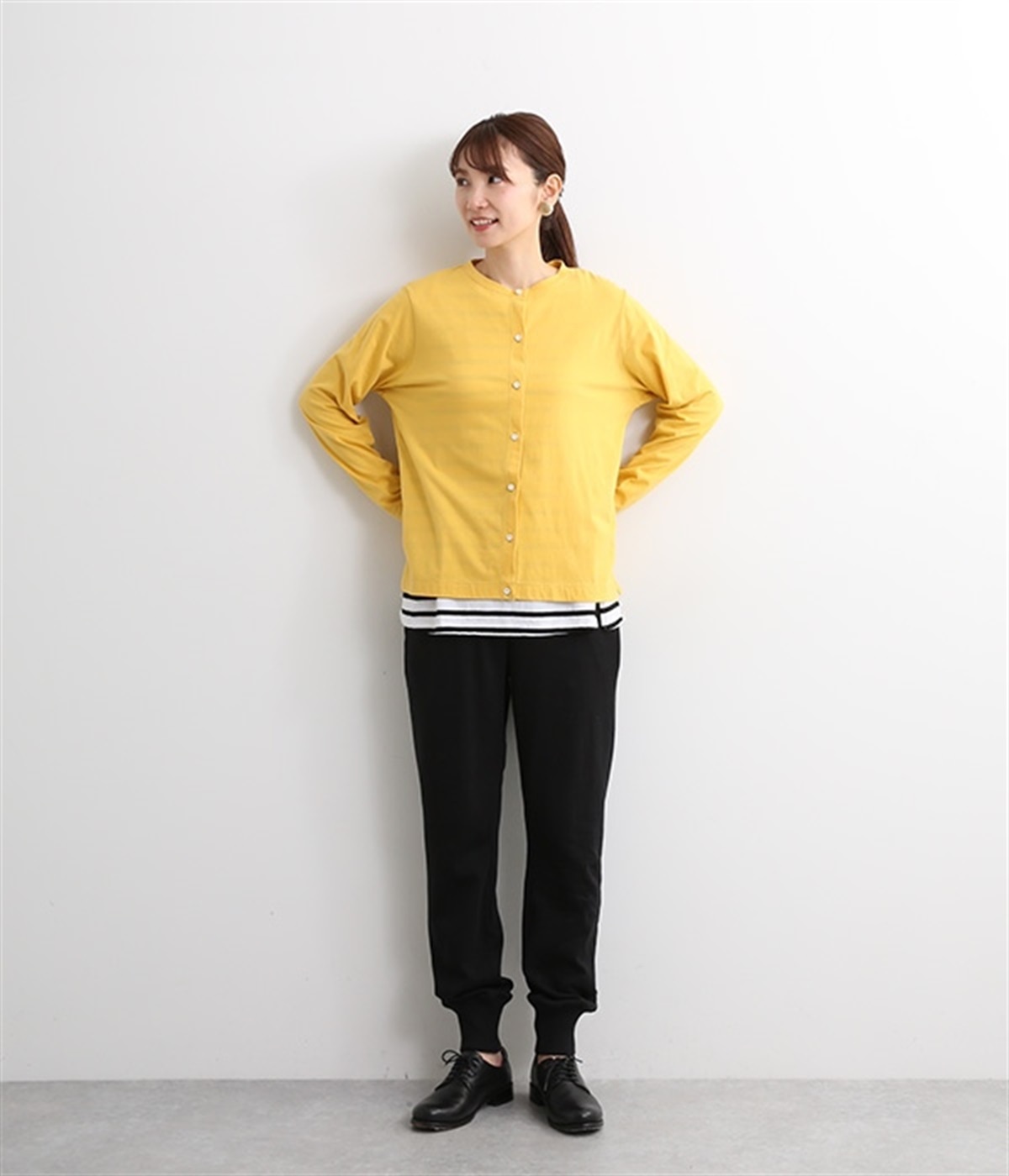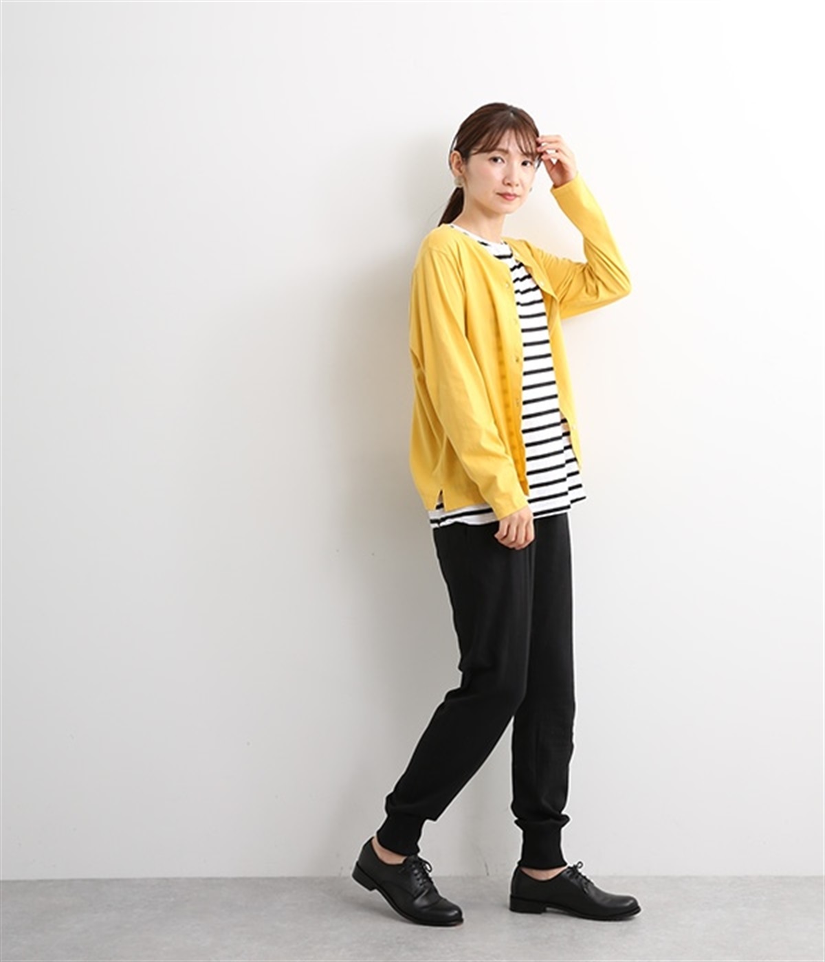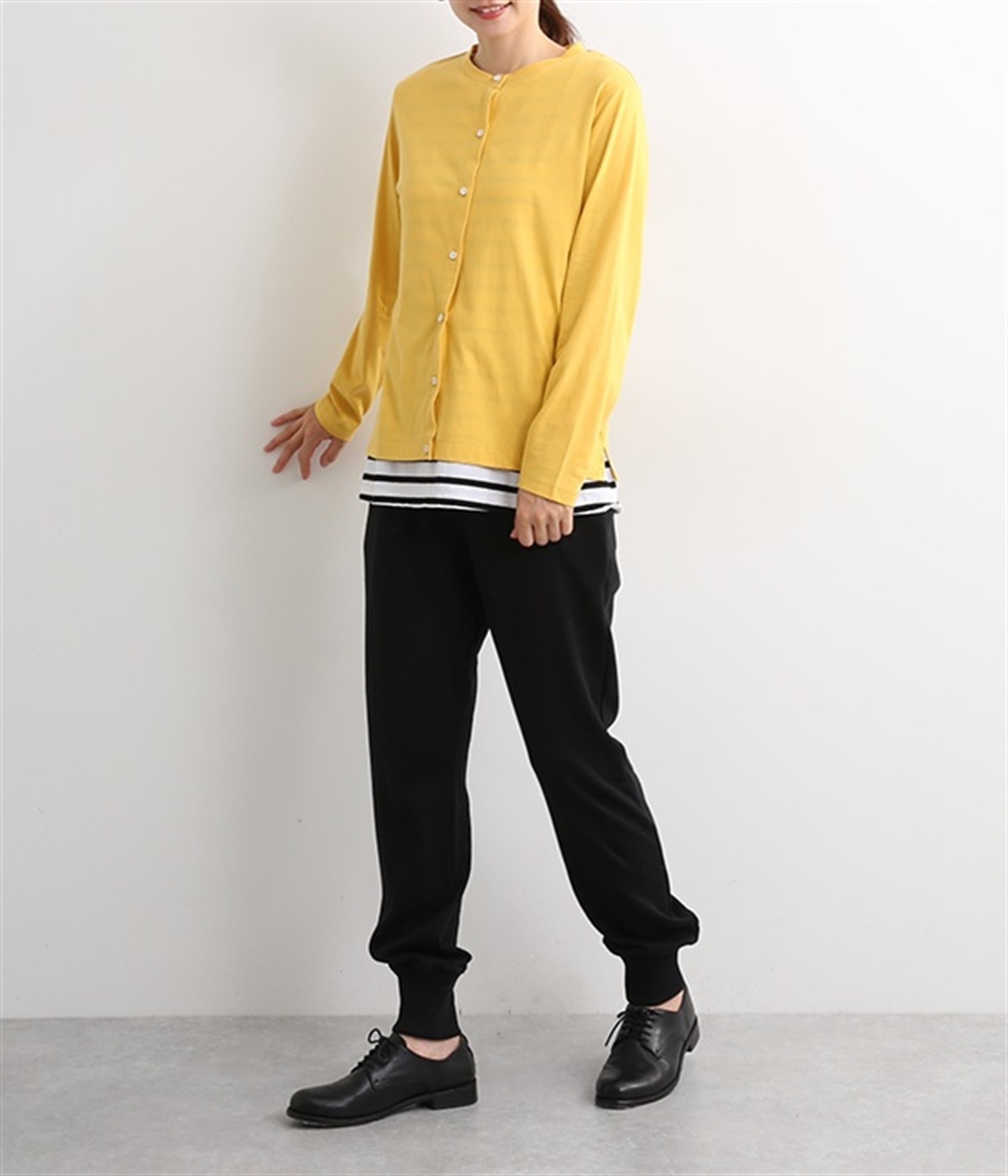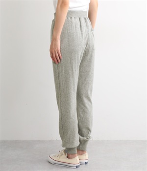 二層の素材でしっとりソフトな風合いに仕上げた接結天竺パンツ。ウエストはリブ&内ひも仕様でとてもフィット感が良く、はき心地は快適です。余裕を持たせすぎないすっきりシルエットを裾リブでさらにシャープに。単体でスポーティ感の強いスタイリングをするのはもちろん、ワンピースのインに取り入れる着まわしもおしゃれ。お出かけ着としてだけでなく、ゆるっとくつろぎたいおうち時間にもどうぞ。