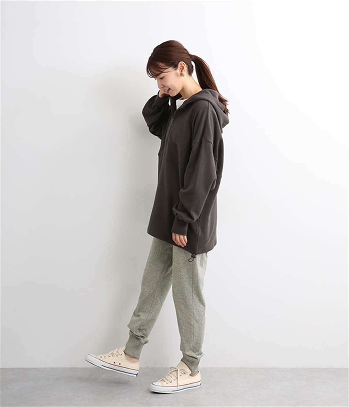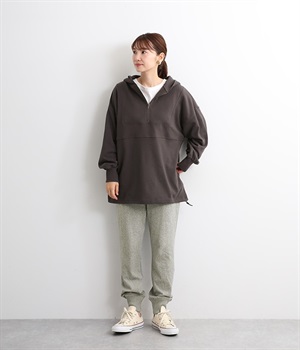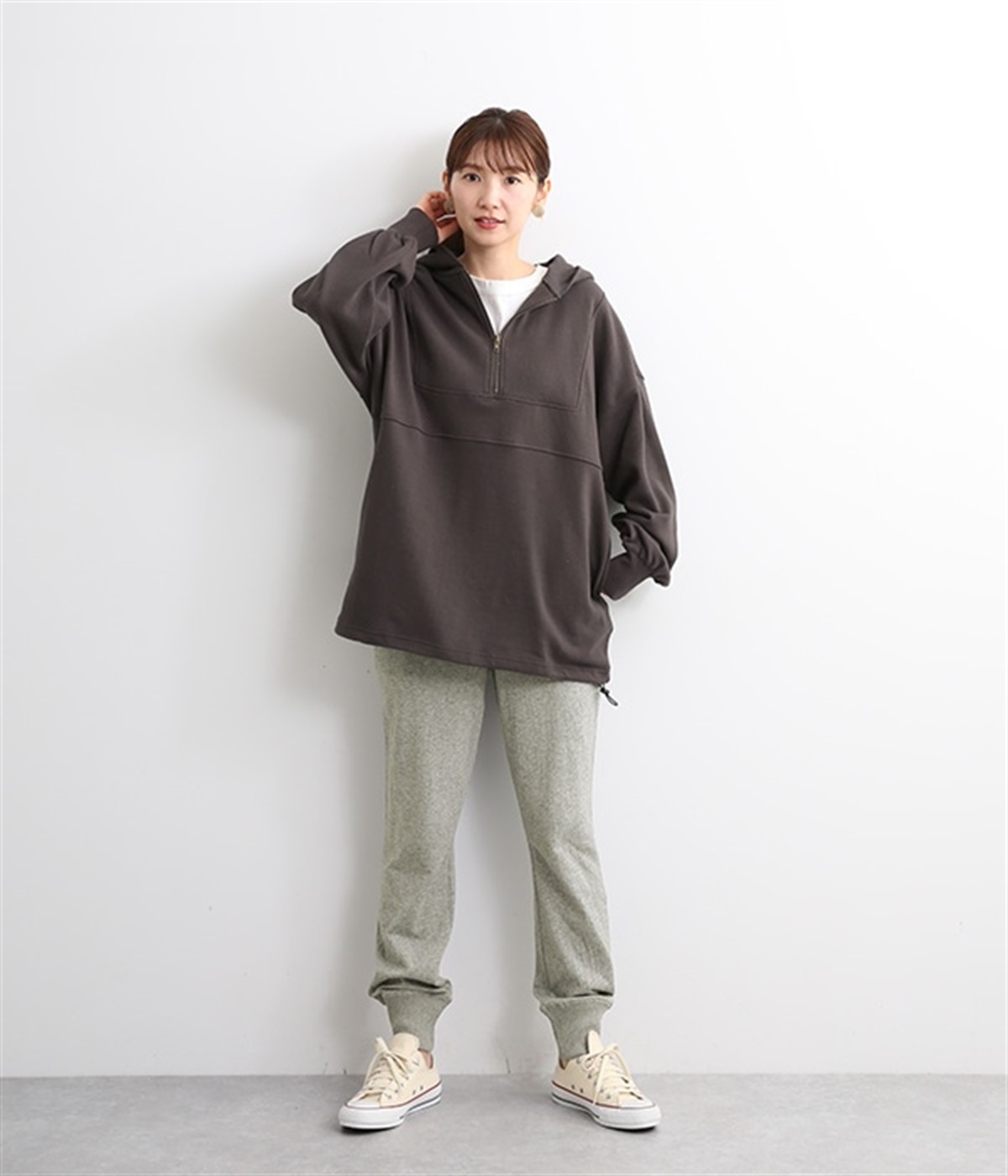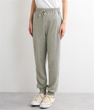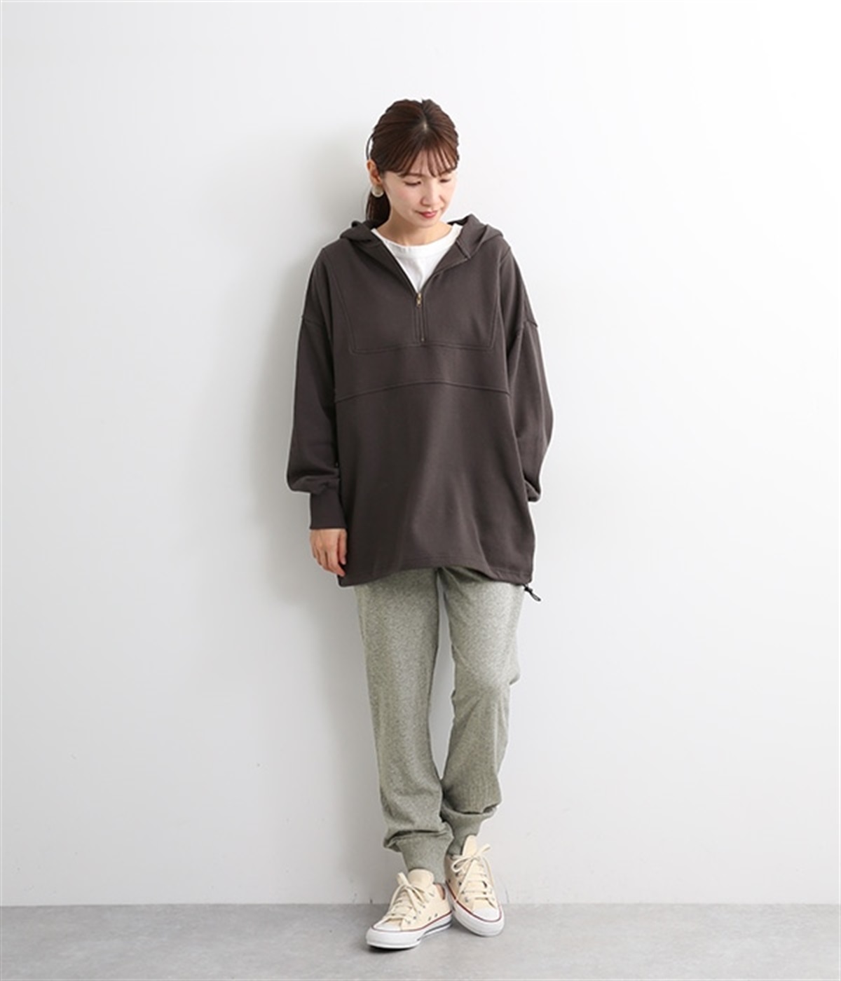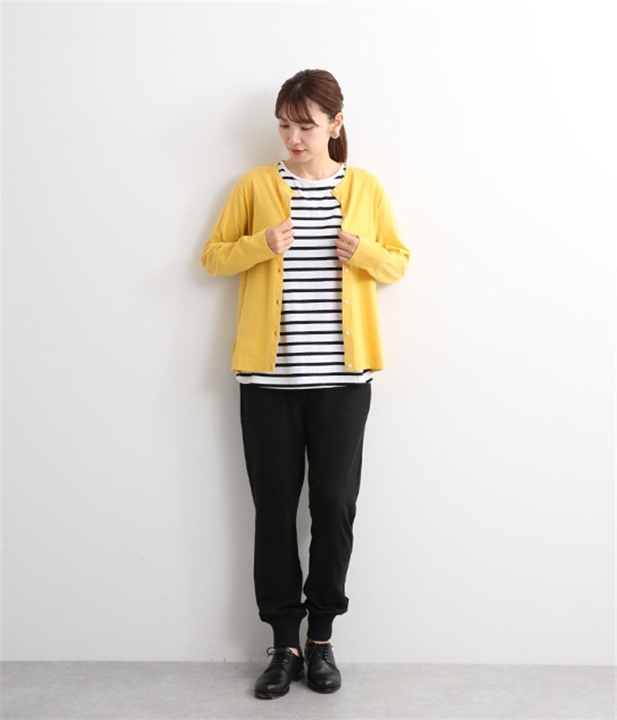 二層の素材でしっとりソフトな風合いに仕上げた接結天竺パンツ。ウエストはリブ&内ひも仕様でとてもフィット感が良く、はき心地は快適です。余裕を持たせすぎないすっきりシルエットを裾リブでさらにシャープに。単体でスポーティ感の強いスタイリングをするのはもちろん、ワンピースのインに取り入れる着まわしもおしゃれ。お出かけ着としてだけでなく、ゆるっとくつろぎたいおうち時間にもどうぞ。
