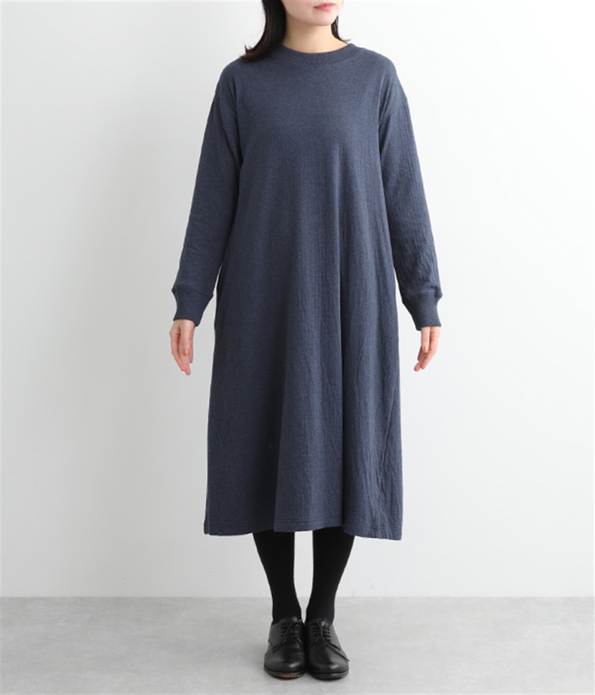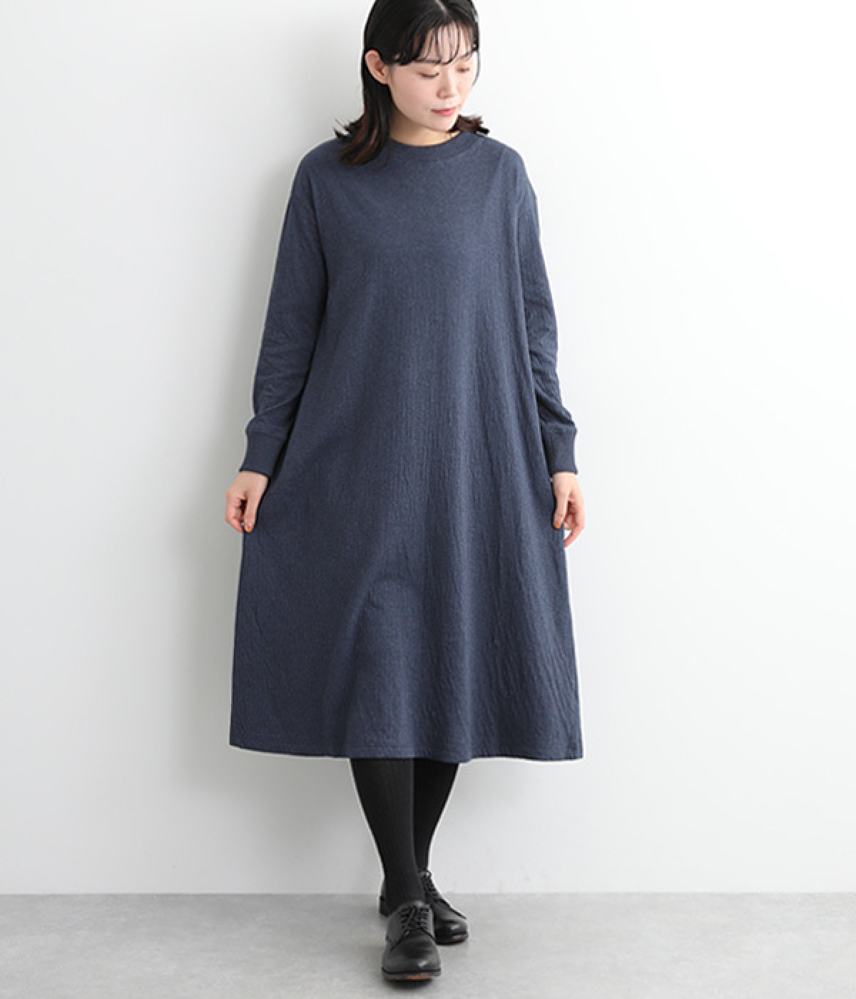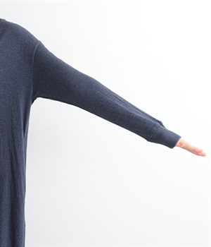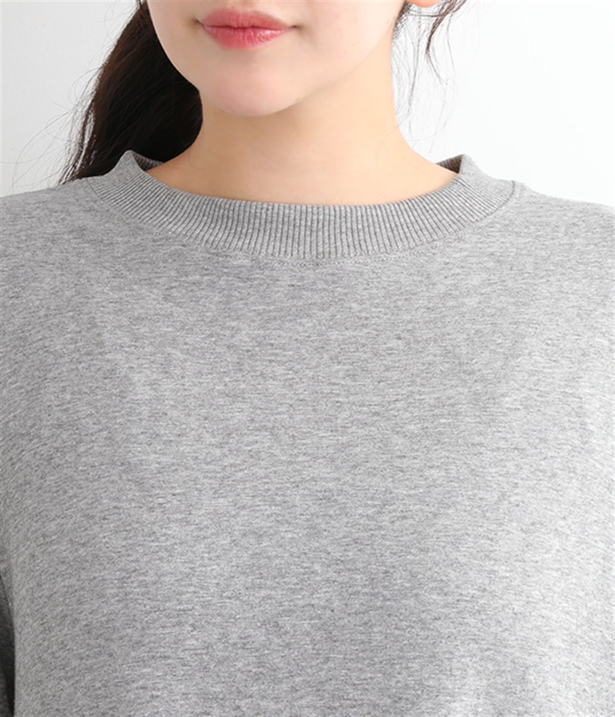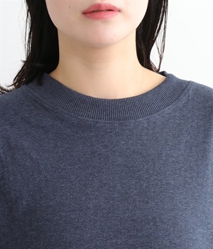首元をすっきりと見せる、適度なあきのラウンドネック