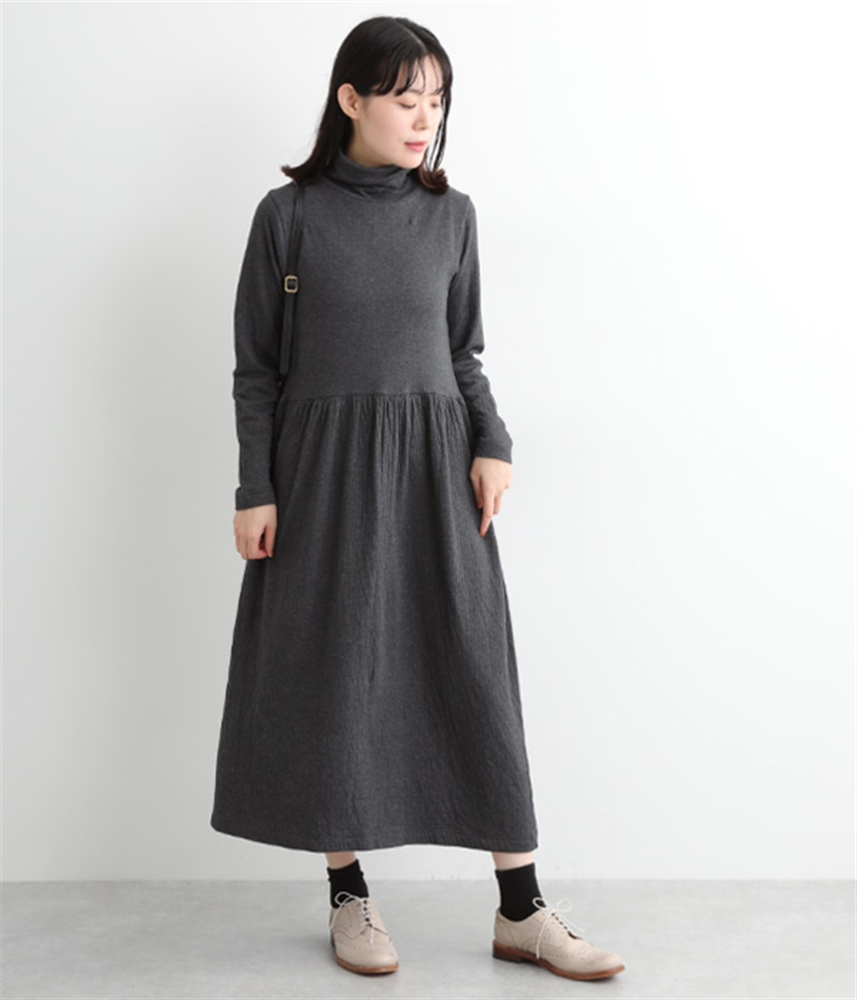 ゆるめのタートルネックで締めつけを感じにくい作り