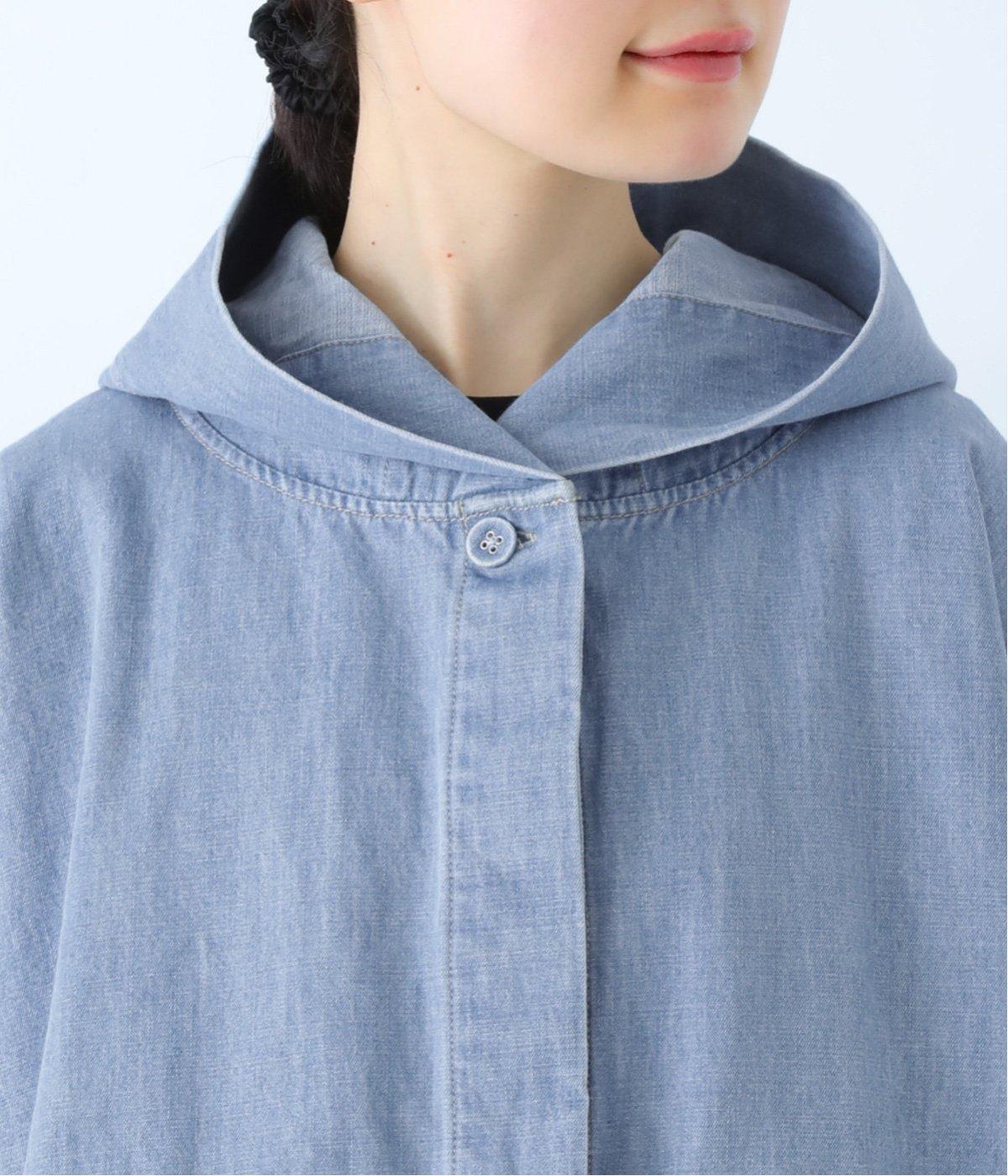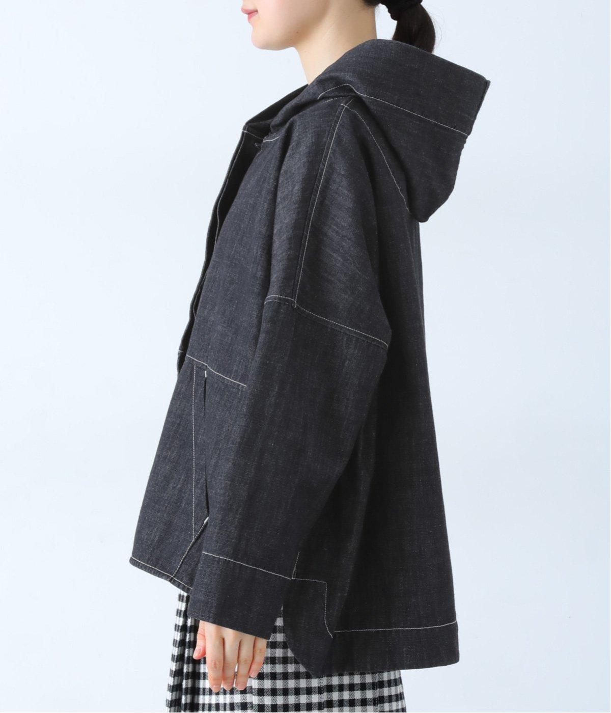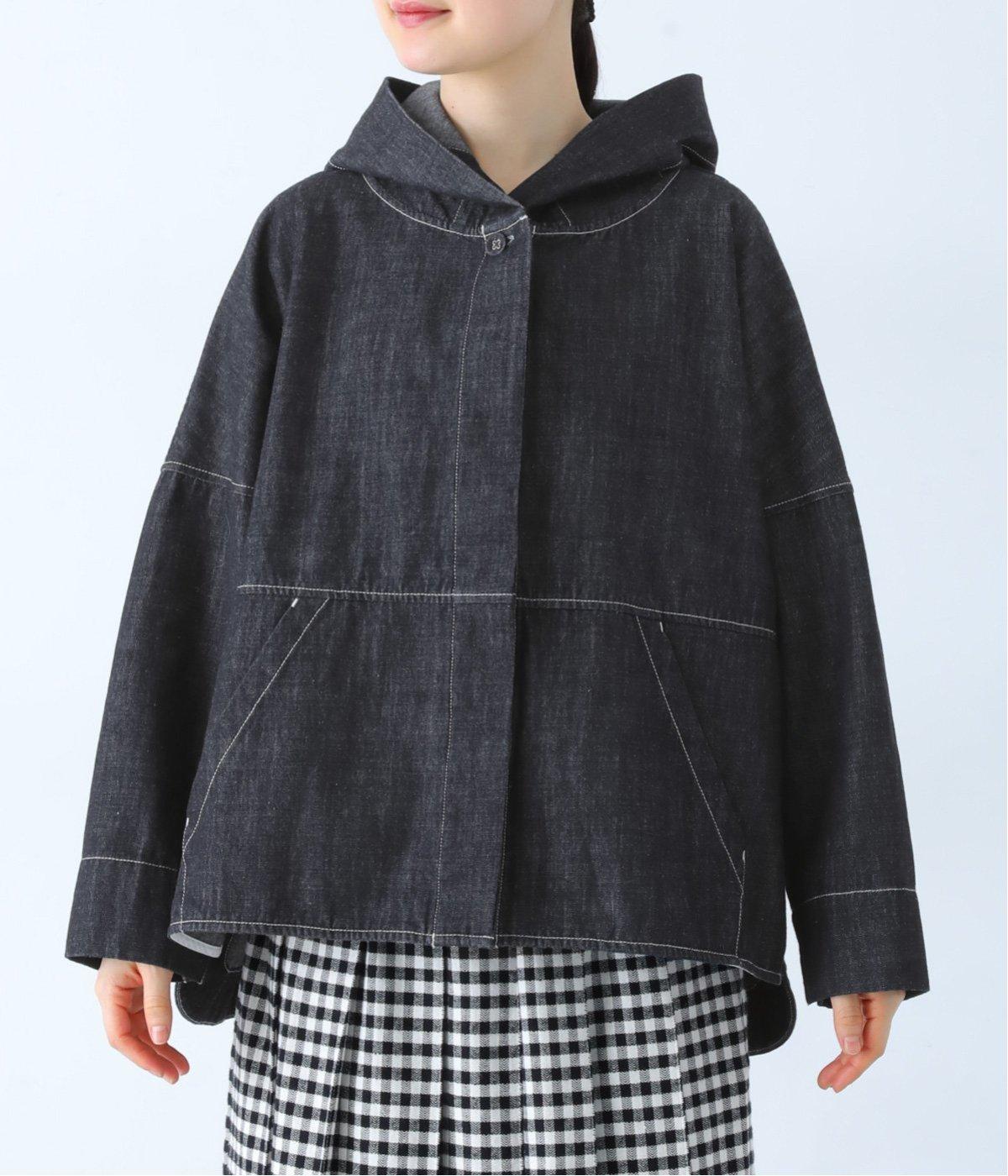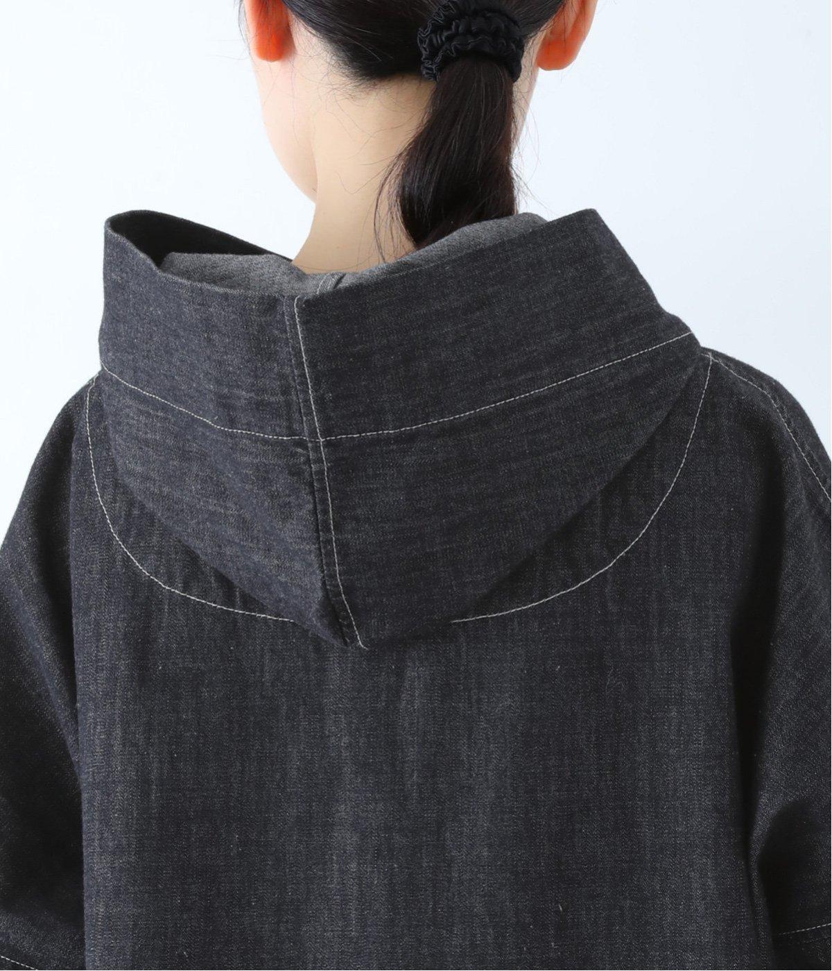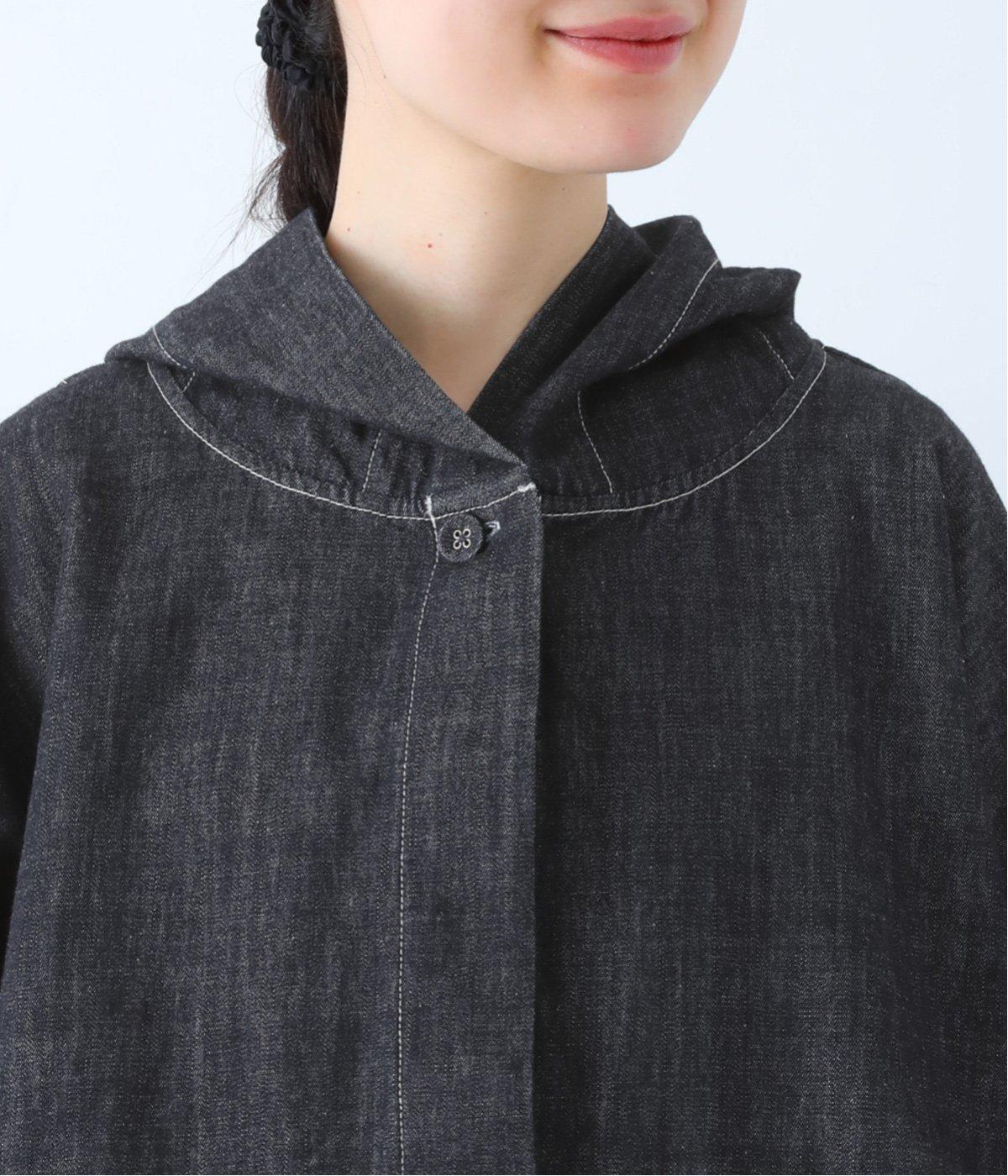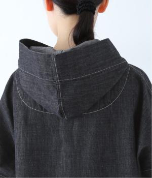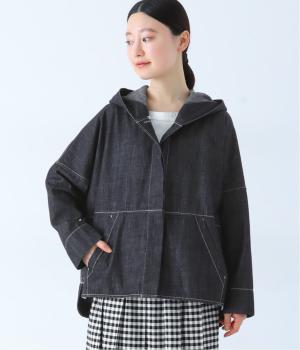 首元にほどよいゆとりをもたせたフードデザイン。前立てに施した配色ステッチが、デニムの表情を引き締め、さりげないアクセントに。