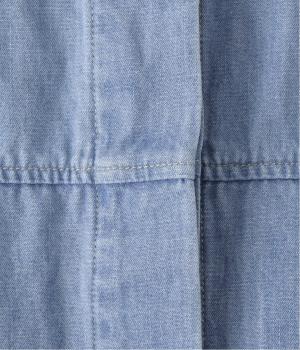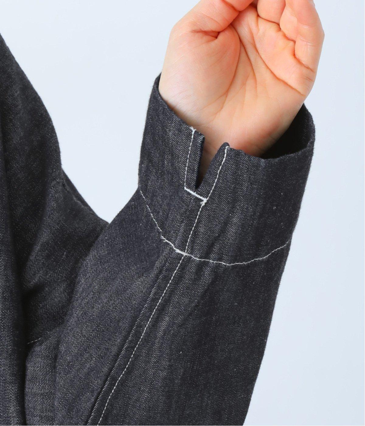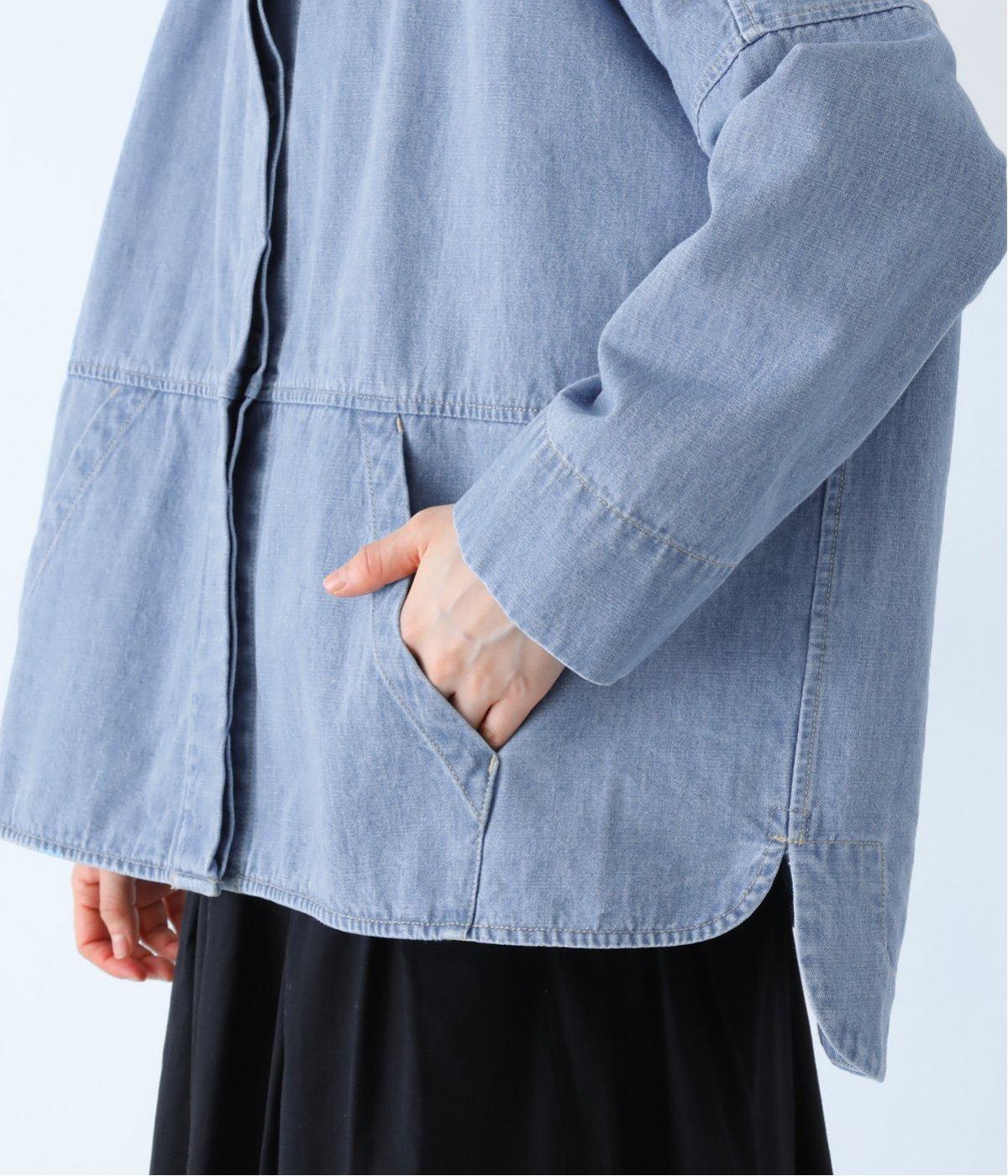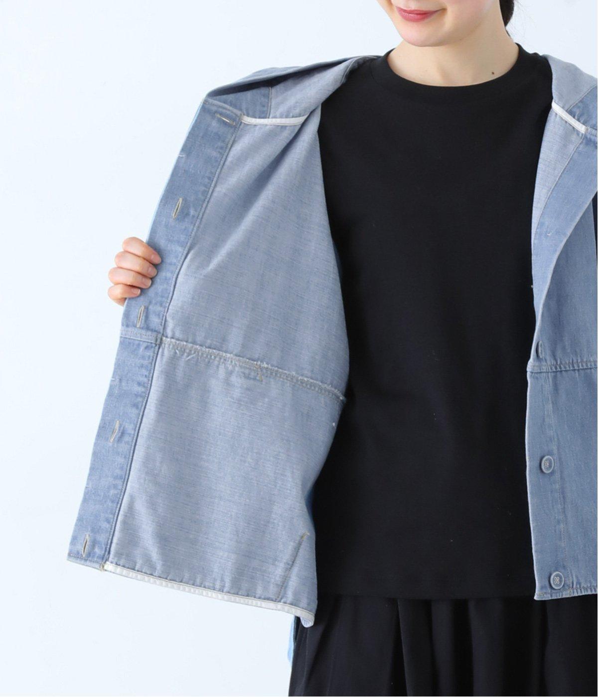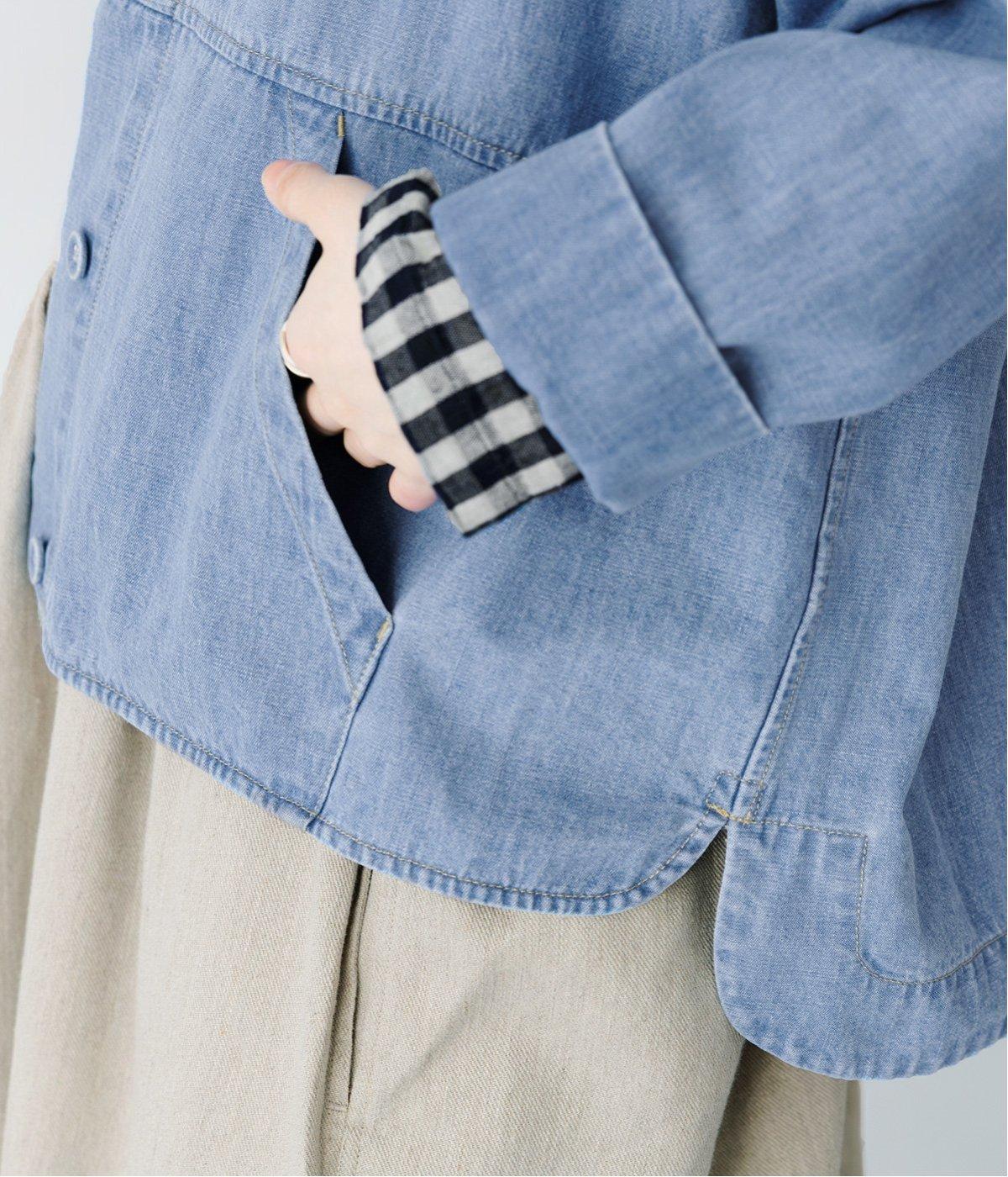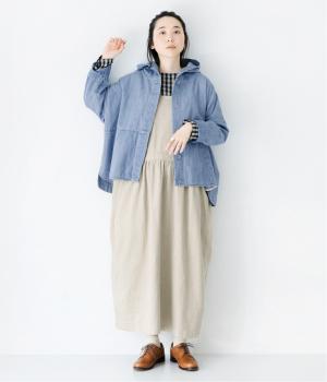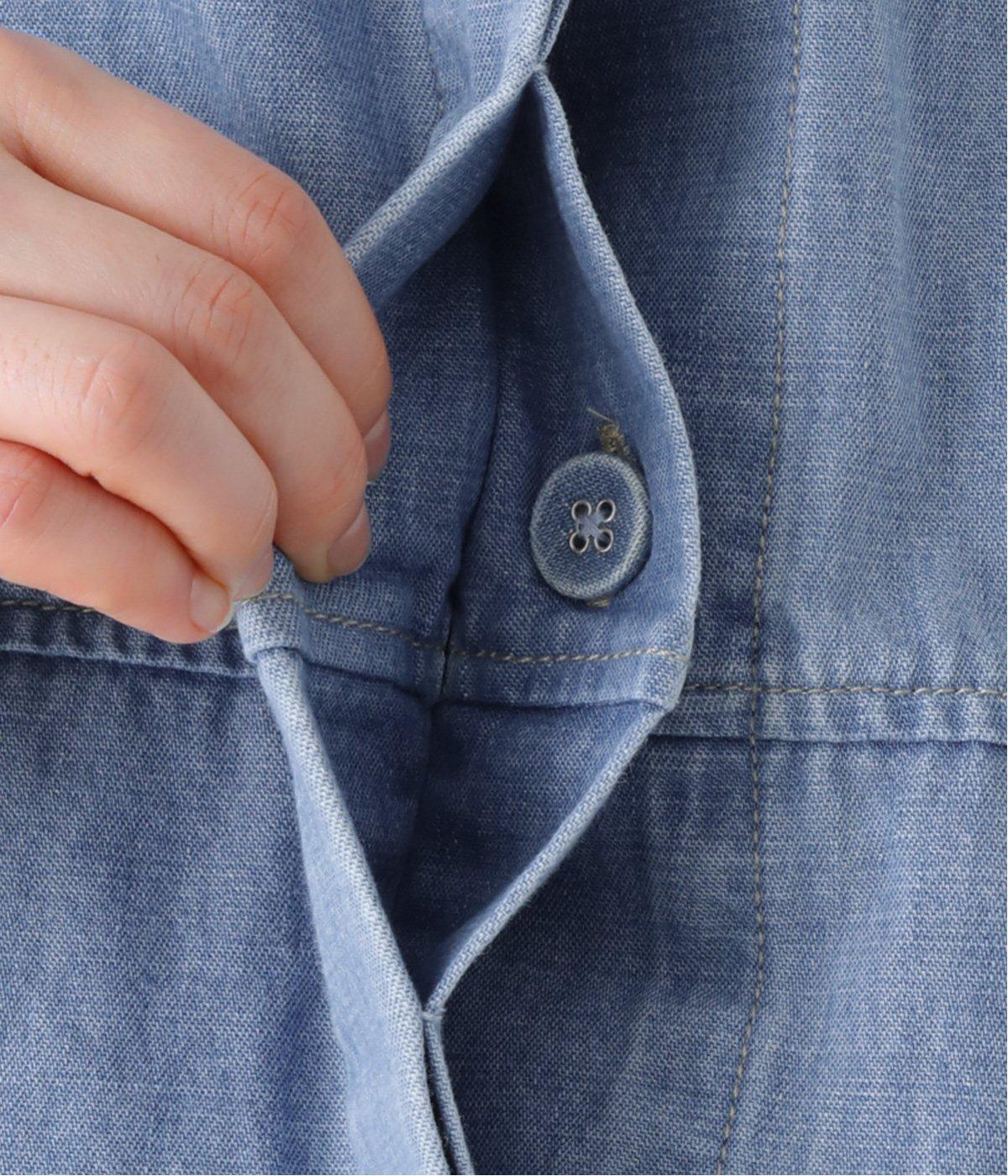 淡色のブリーチデニムで楽しむ、春のレイヤードスタイル。共布のくるみボタンをあしらい、前を開けたときにもボタンが目立たず生地に馴染みます。
