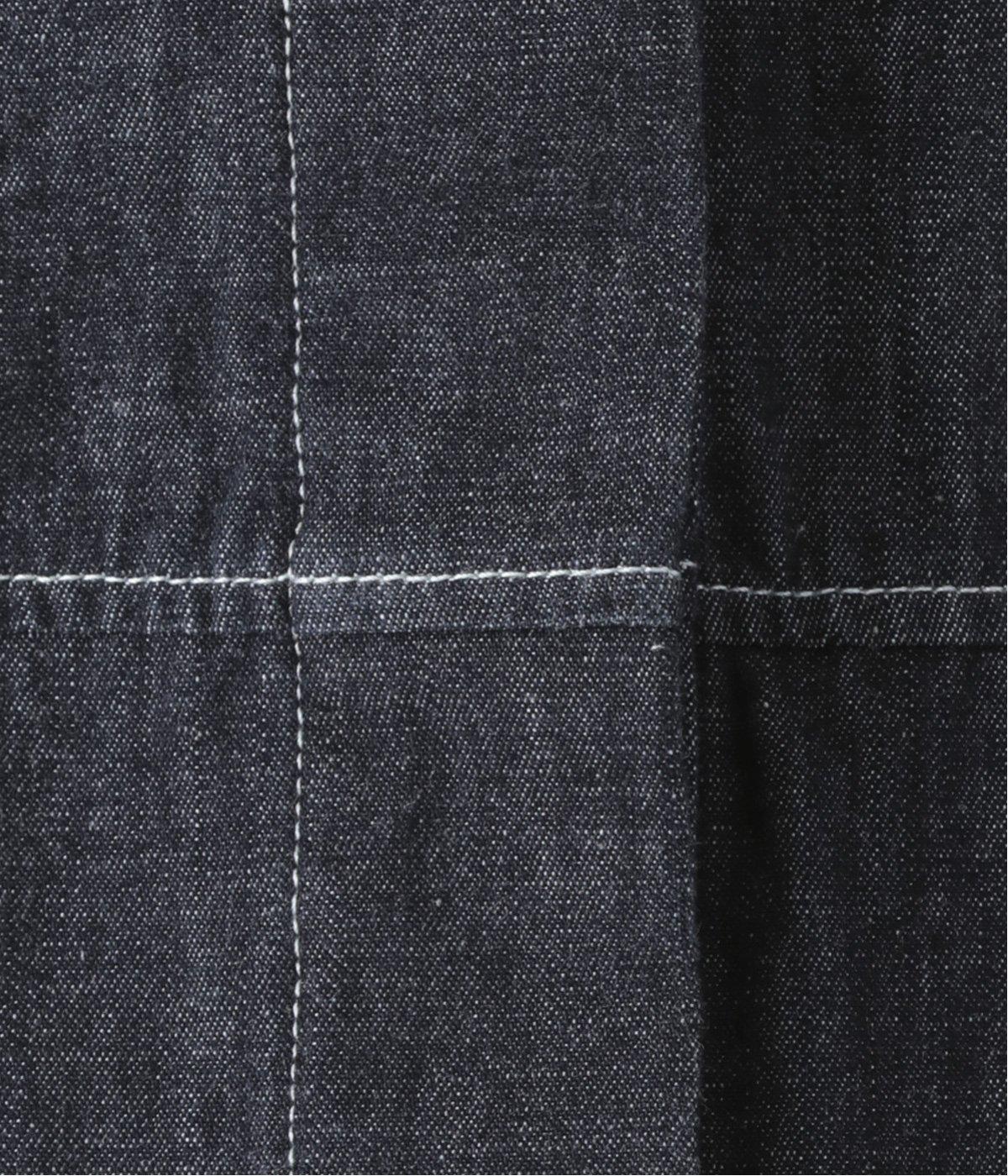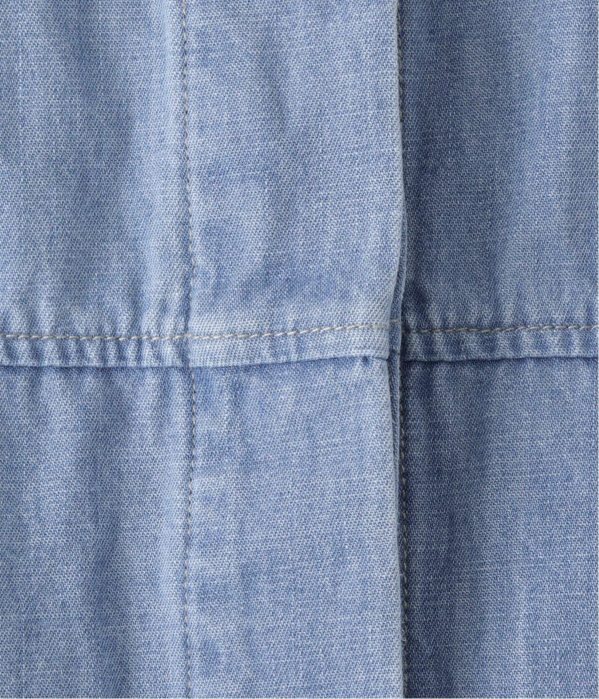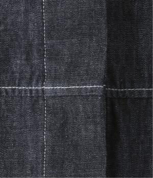 やわらかな着心地が魅力のコットンデニム素材を使用。ブリーチにはベージュ、インディゴにはライトグレーのステッチが効いたデザイン。
