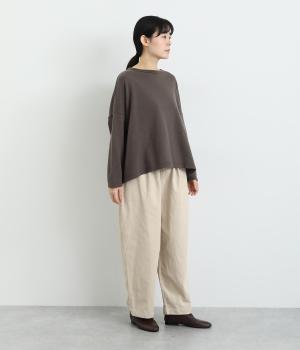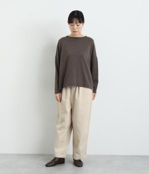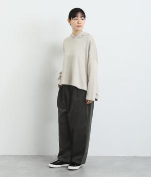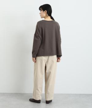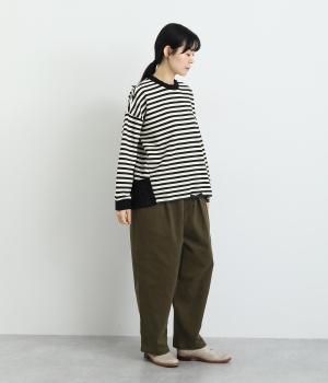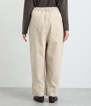 フロントにタックを入れてほどよいゆとりを持たせたシルエットがふだん使いしやすいパンツ。バックスタイルは切り替えを利用したポケットでデザインポイントに。ウエストオールゴムに内紐をつけたイージー仕様に、丈が選べる展開です。