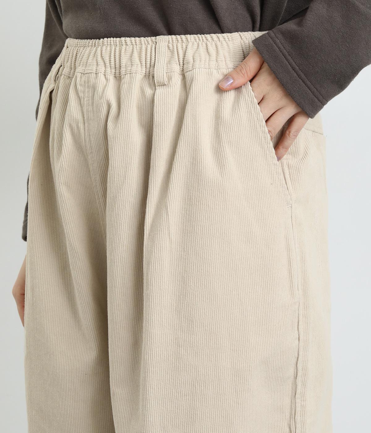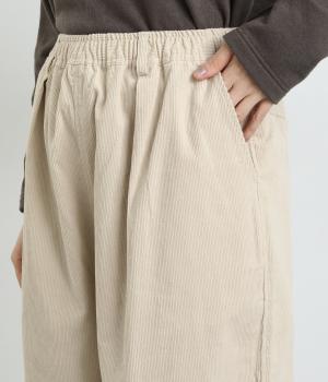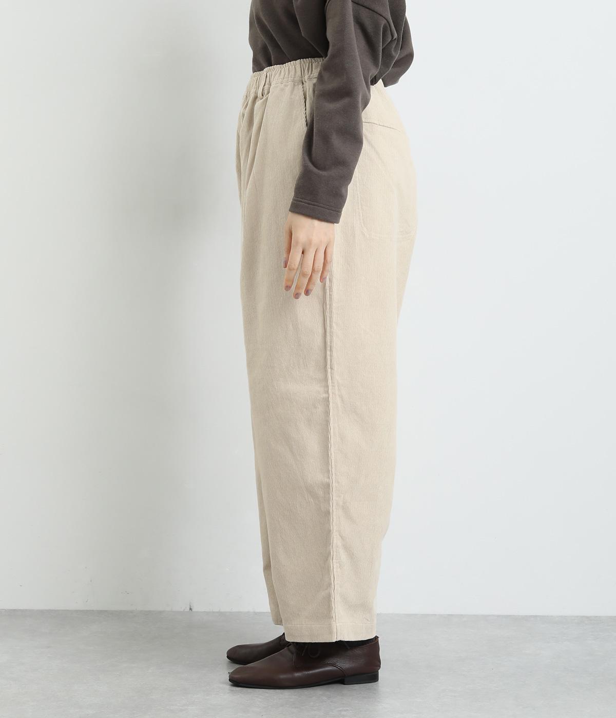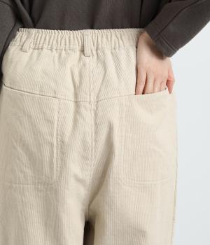 あたたかみとポコポコとした表面感が特徴的なコットンコーデュロイ素材を使用しています。落ち着きのある色あいが大人顔。生地自体は肉厚すぎずデイリーにはきまわせます。