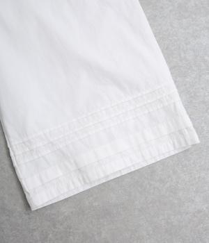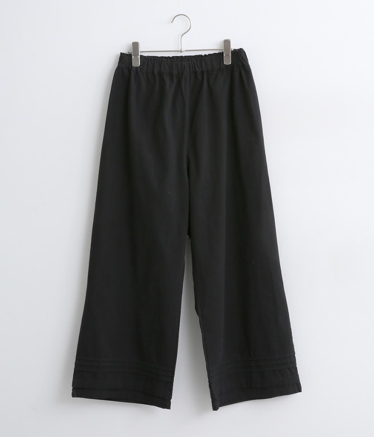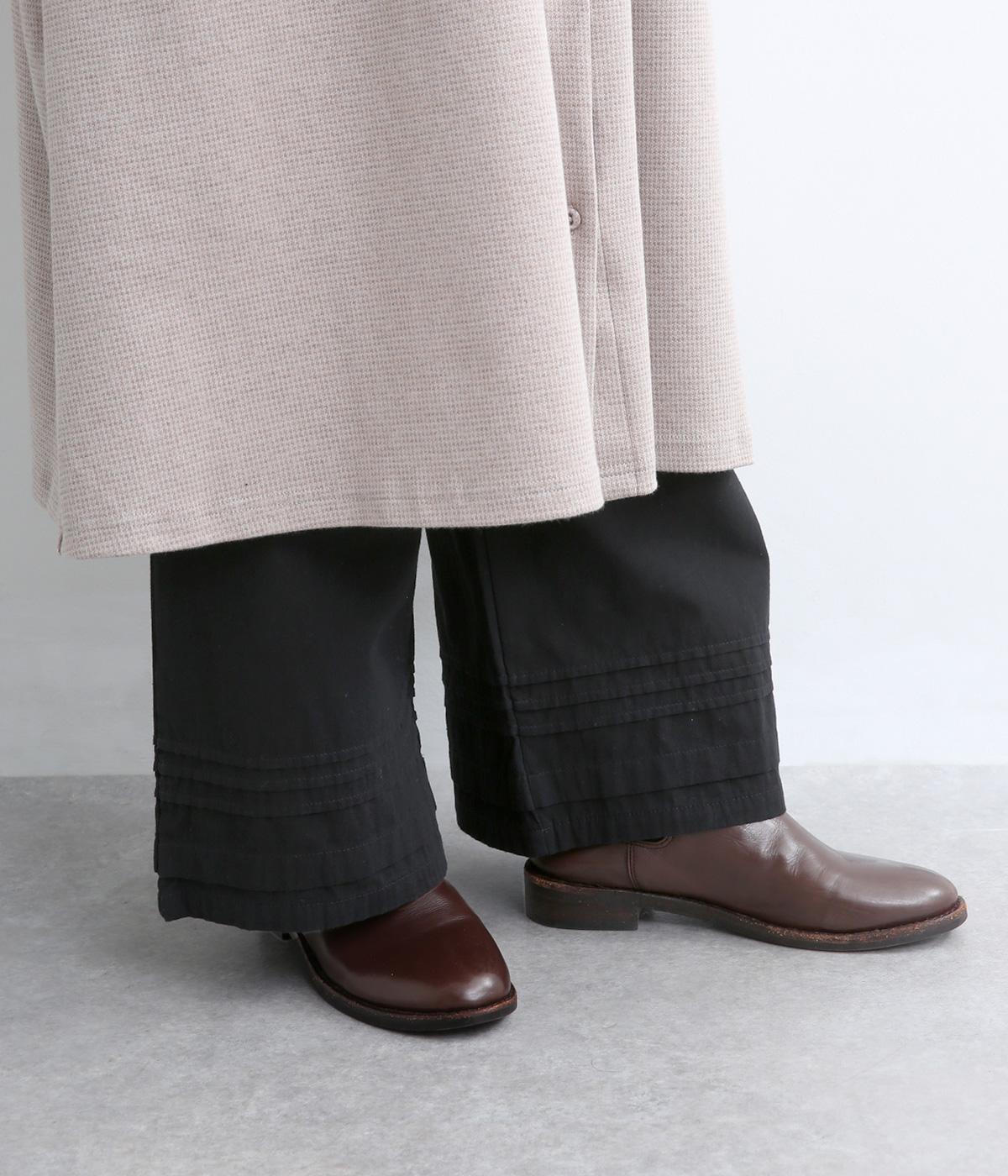 足元の冷えを気にせずレイヤードスタイルが楽しめる、裏側を微起毛にしたペチパンツ。総ゴム仕様のウエストでゆったりと重ね着できます。裾にほどこしたピンタックがスタイリングのアクセントになるアイテムです。