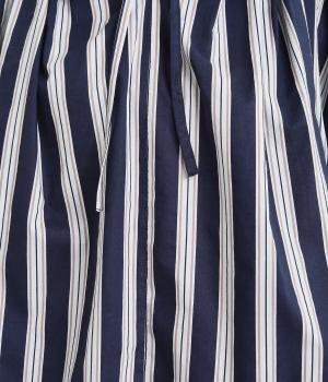 密度高く織られたコットン布帛生地。さらりとしたソフトな風合いが特徴で、肌にやさしくなじんでくれます。さわやかな抜け感のあるストライプ柄にも注目です。