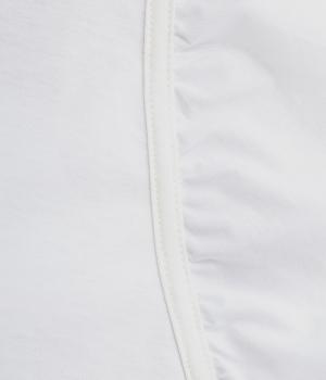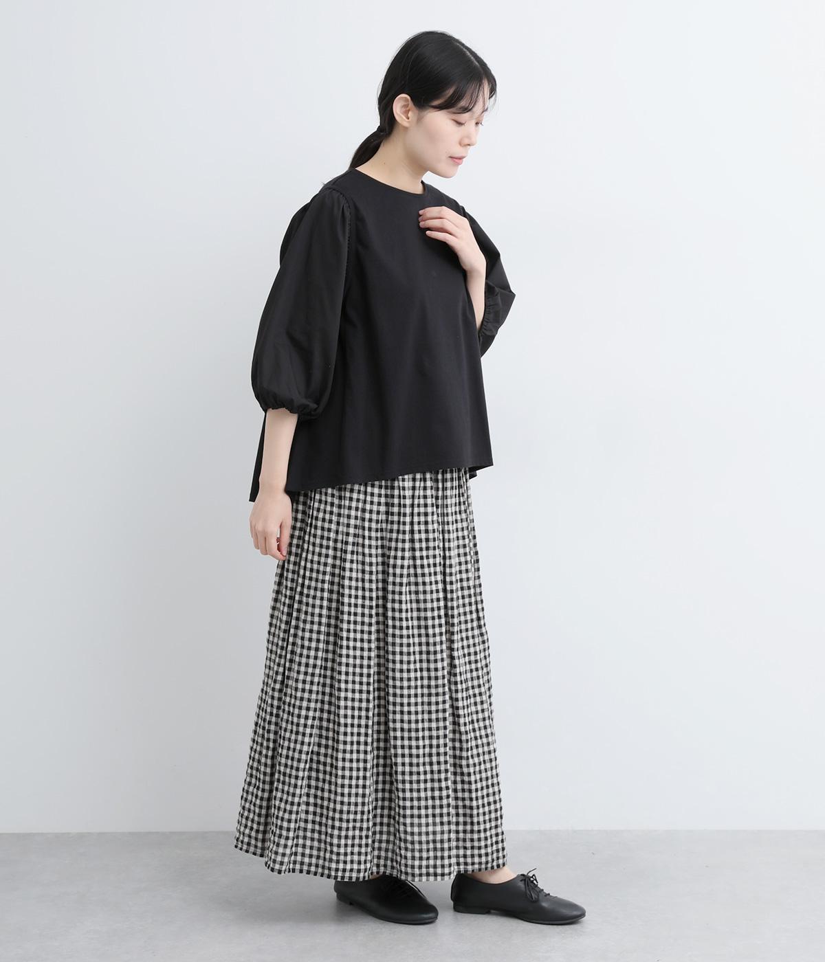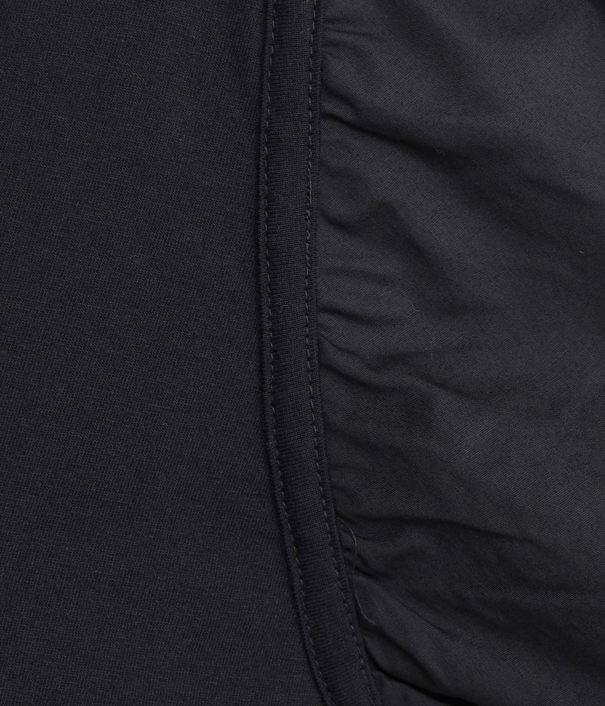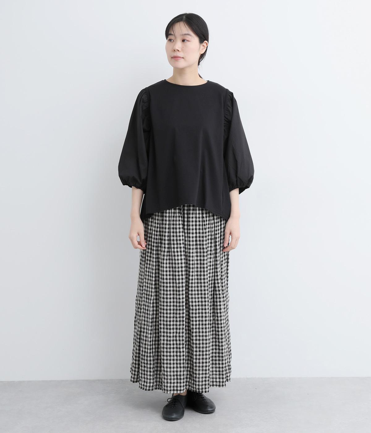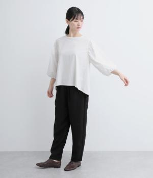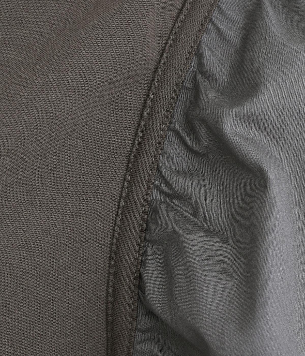 前後の身生地はやわらかく着心地のいいカットソーを、袖にはさらさらとした風合いの布帛を使用した異素材ミックス。着心地のよさと着映えを兼ね備えた一枚です。
