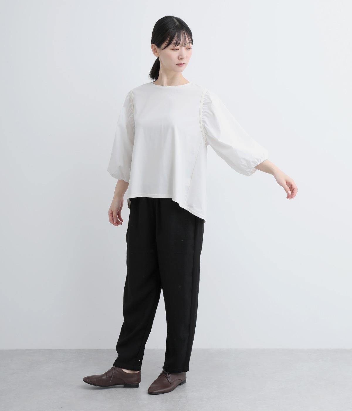 ふんわりとした袖のボリュームが、華やかな印象を与えるプルオーバーブラウス。後ろがやや長めの裾ラインが、すっきりと見せられるポイントです。国内で丁寧に作られた、細部までこだわりの感じられる仕上がり。幅広いボトムとバランスがとりやすく、着まわし力も抜群です。