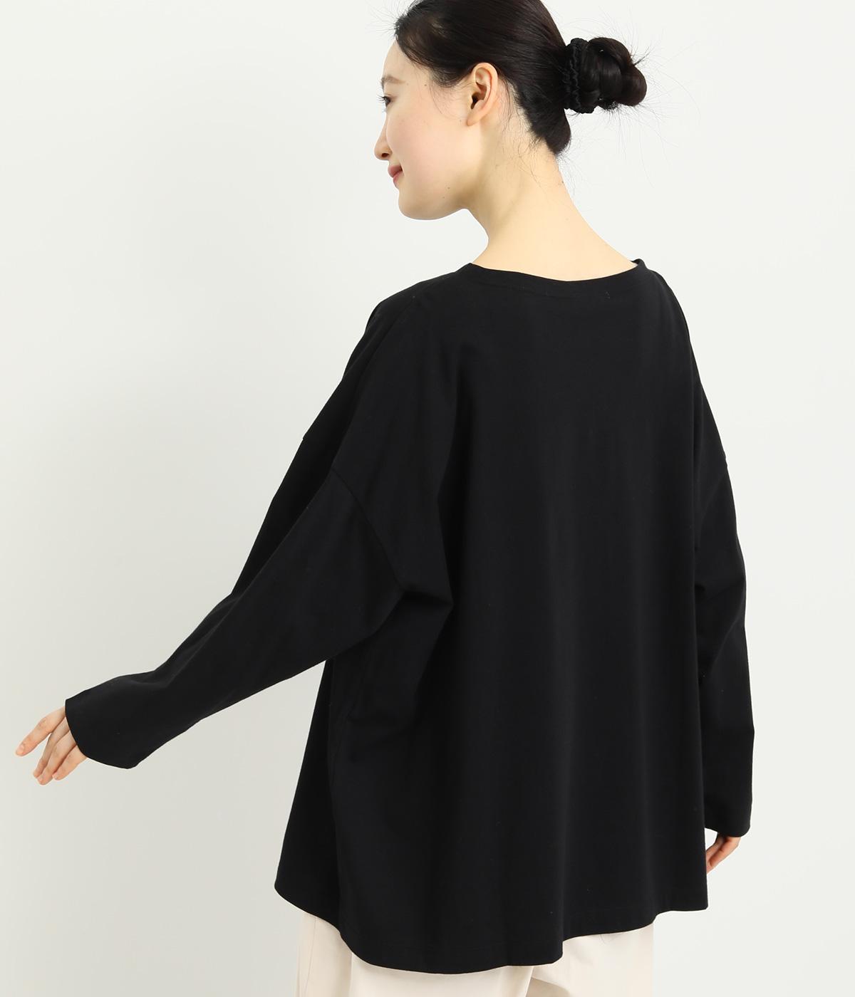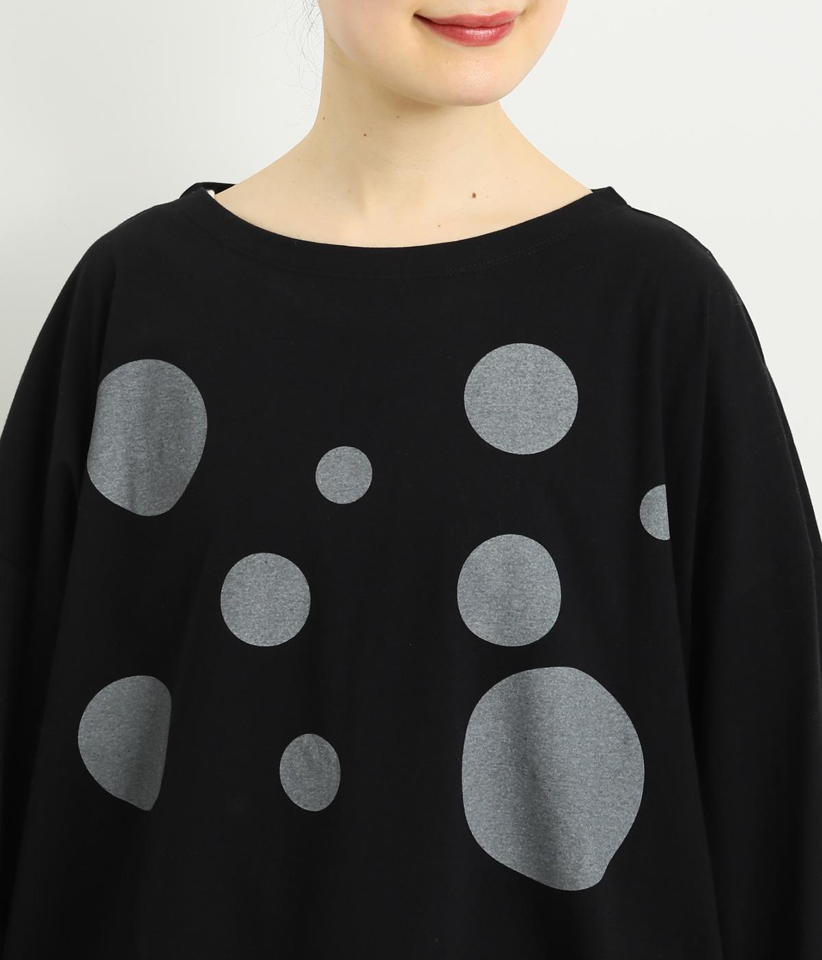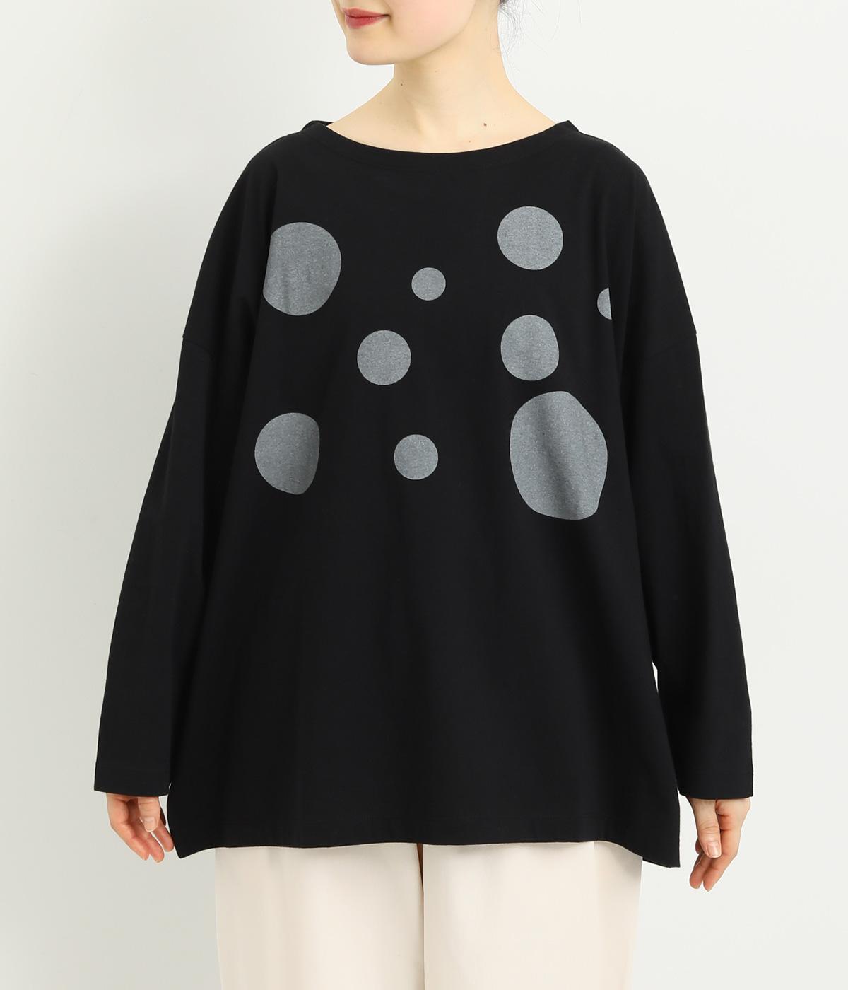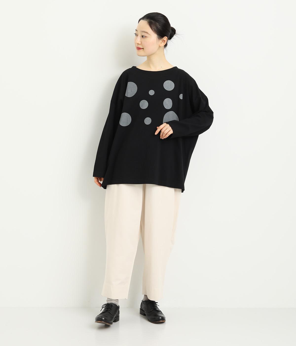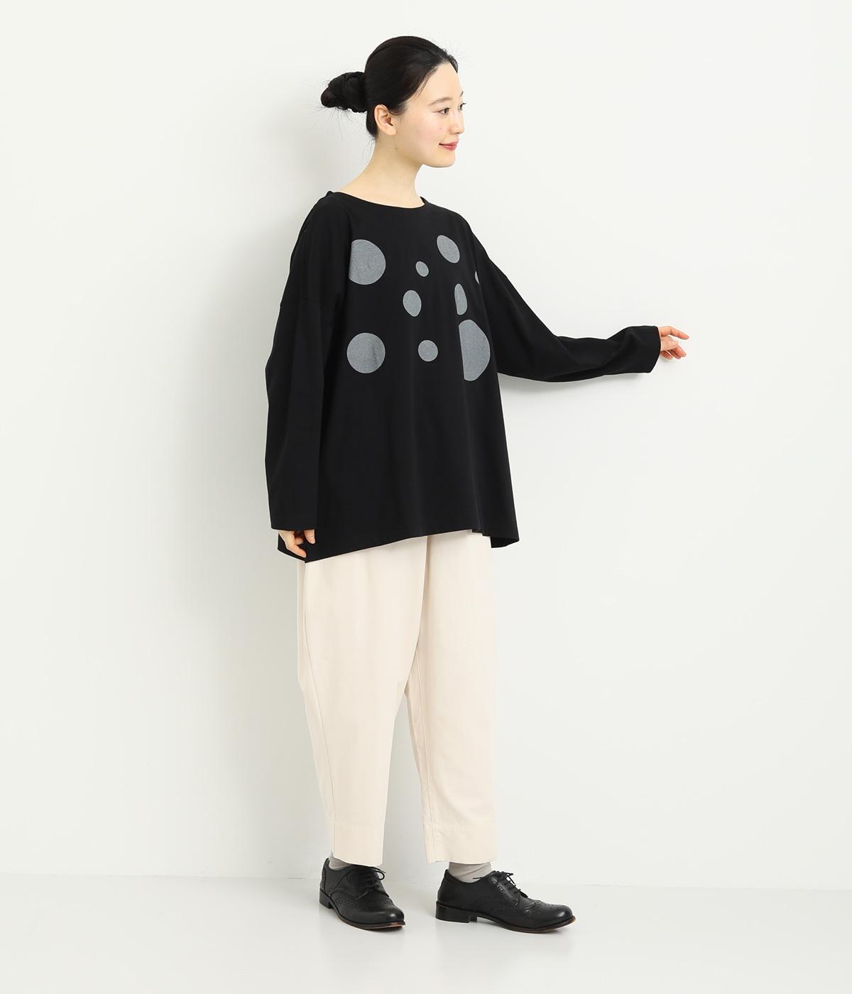 動きのあるランダムなドットプリントが特徴的なロングスリーブTシャツ。身幅をたっぷり取っているので自然なニュアンスが生まれ、カジュアルすぎないのも◎。プリントを上部分にまとめているのでバランスよくスタイリングできます。