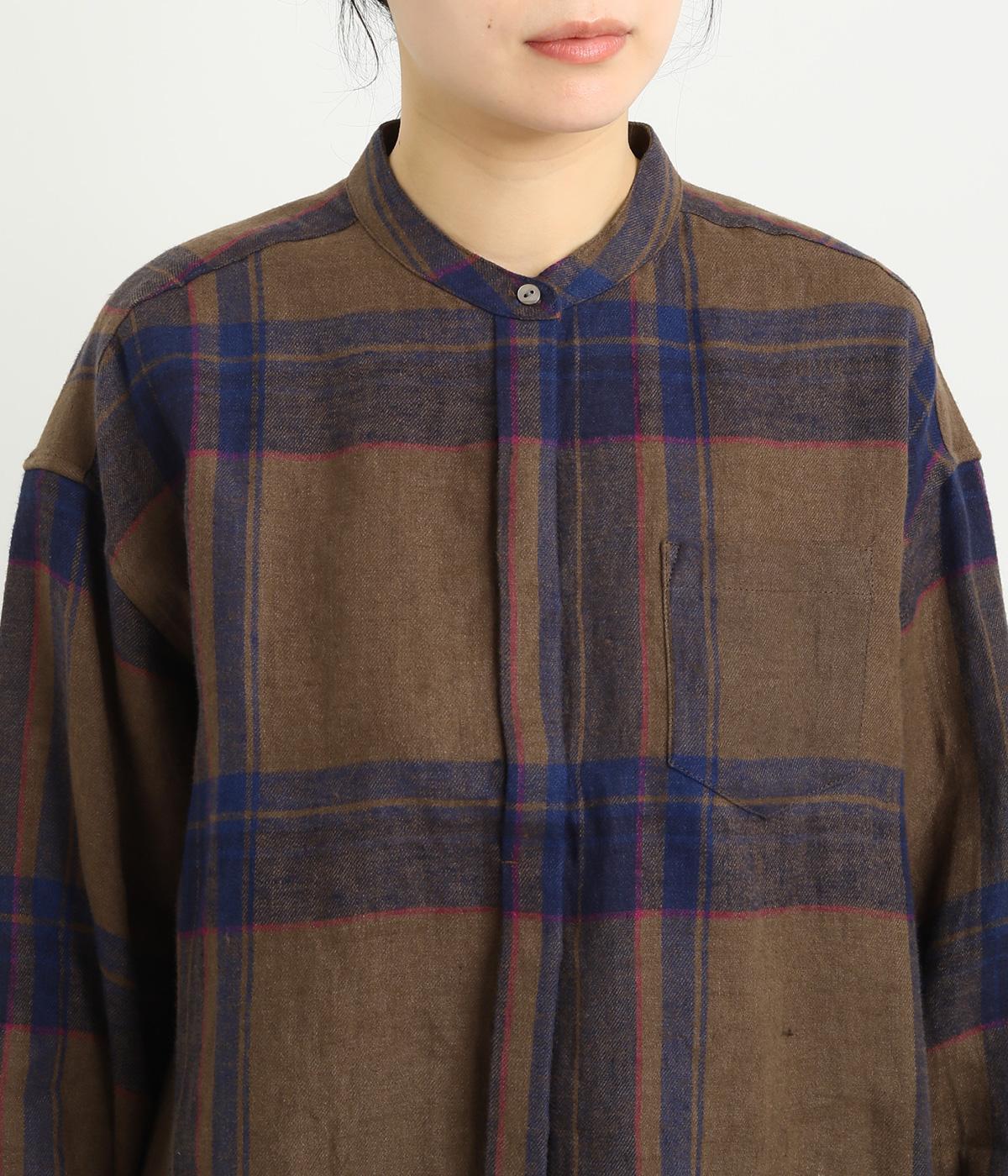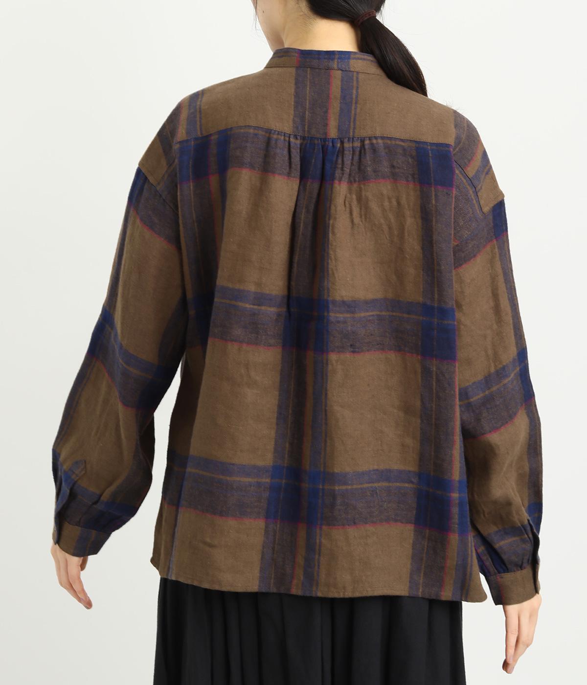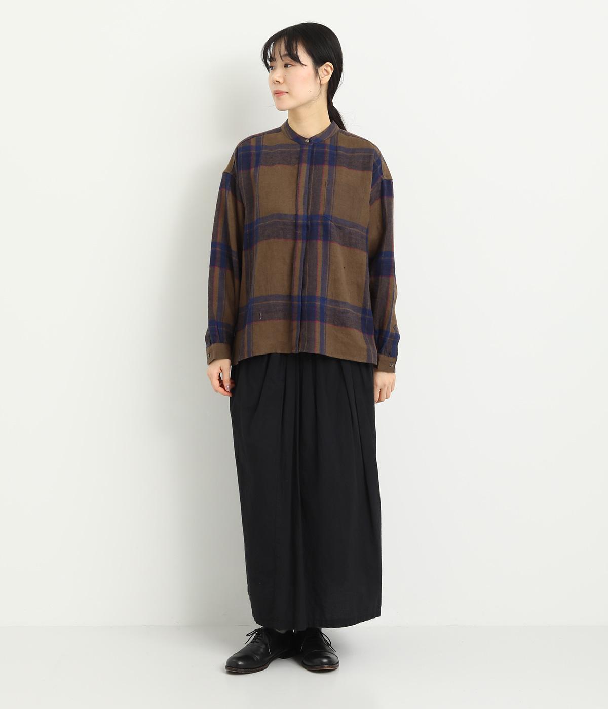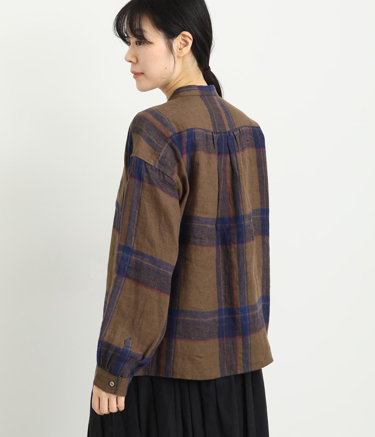 ポイントのある配色が目を惹くタータンチェック柄ブラウス。トラッドさとカジュアルさのバランスが良く、大人スタイルのメインになります。バンドカラーに比翼ボタンのすっきりとした仕立てでチェック柄を惹き立てました。