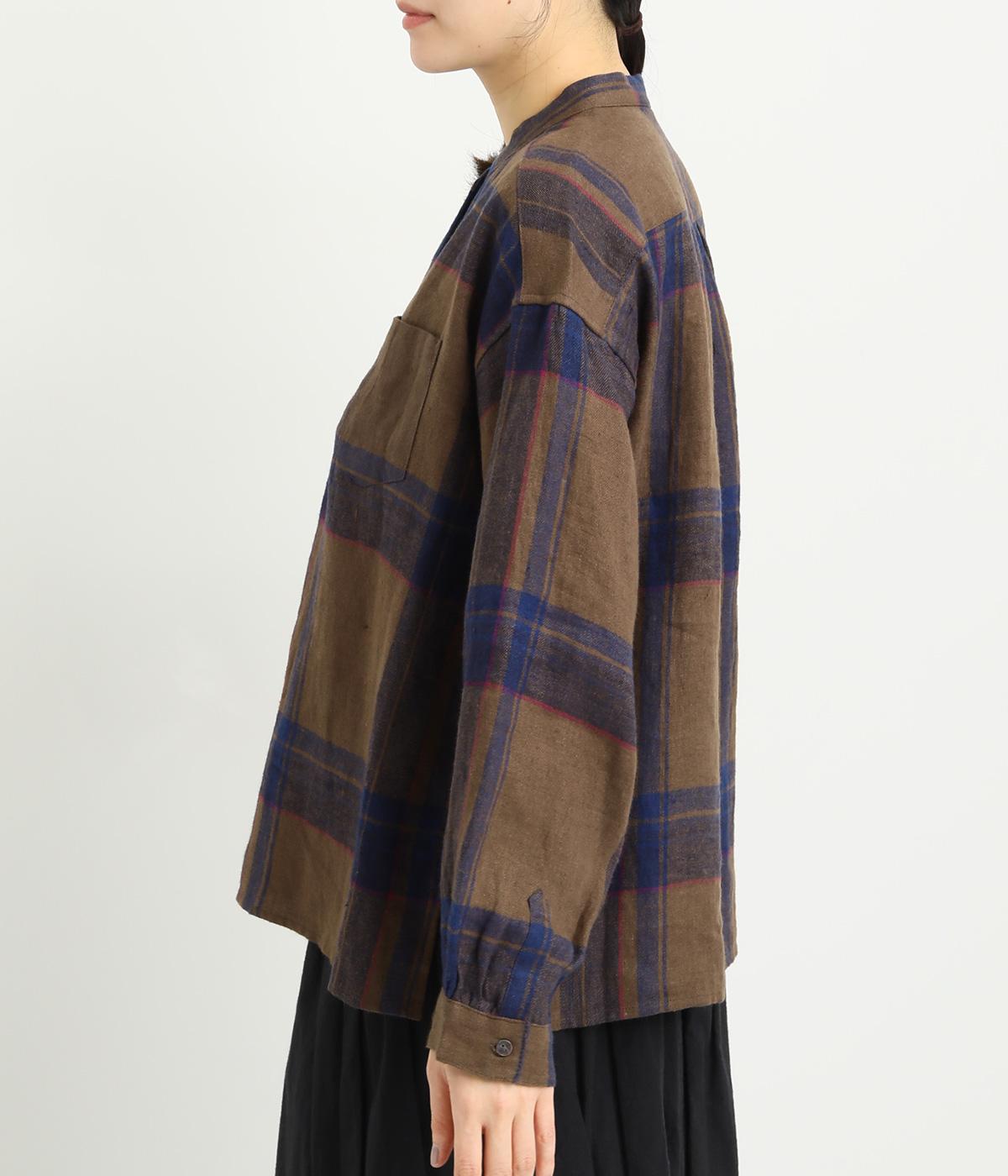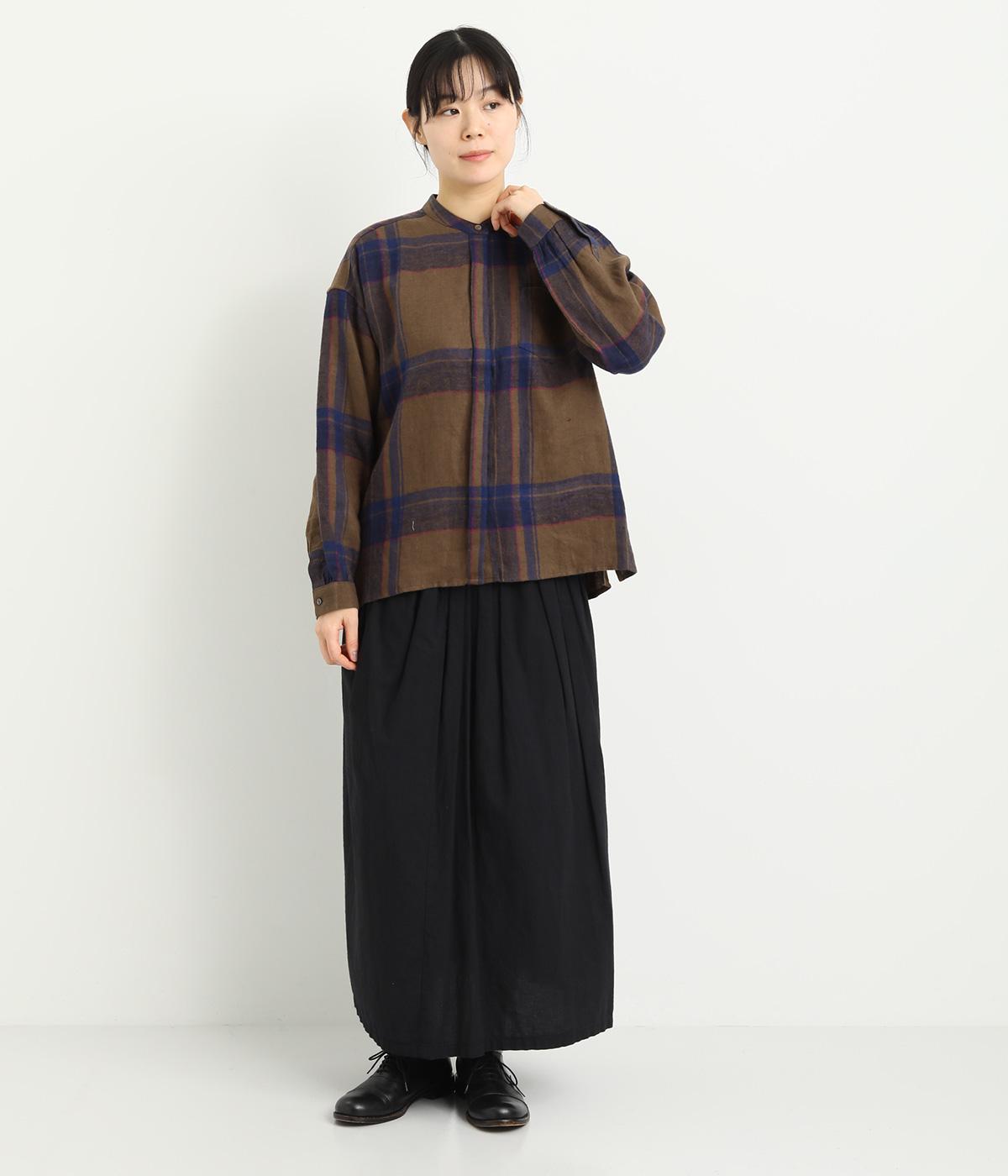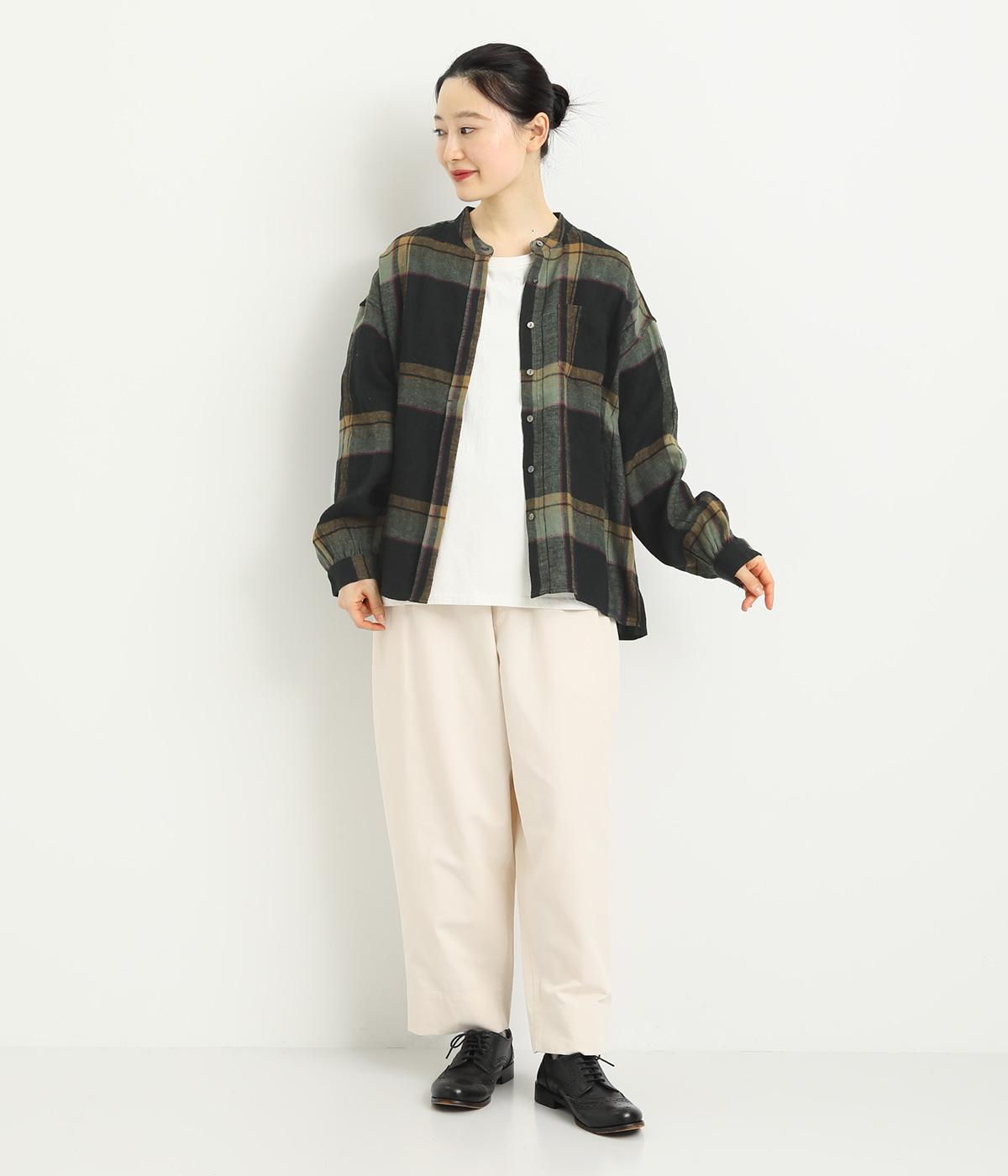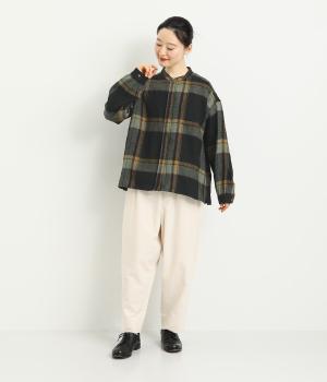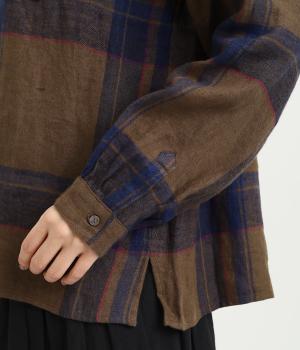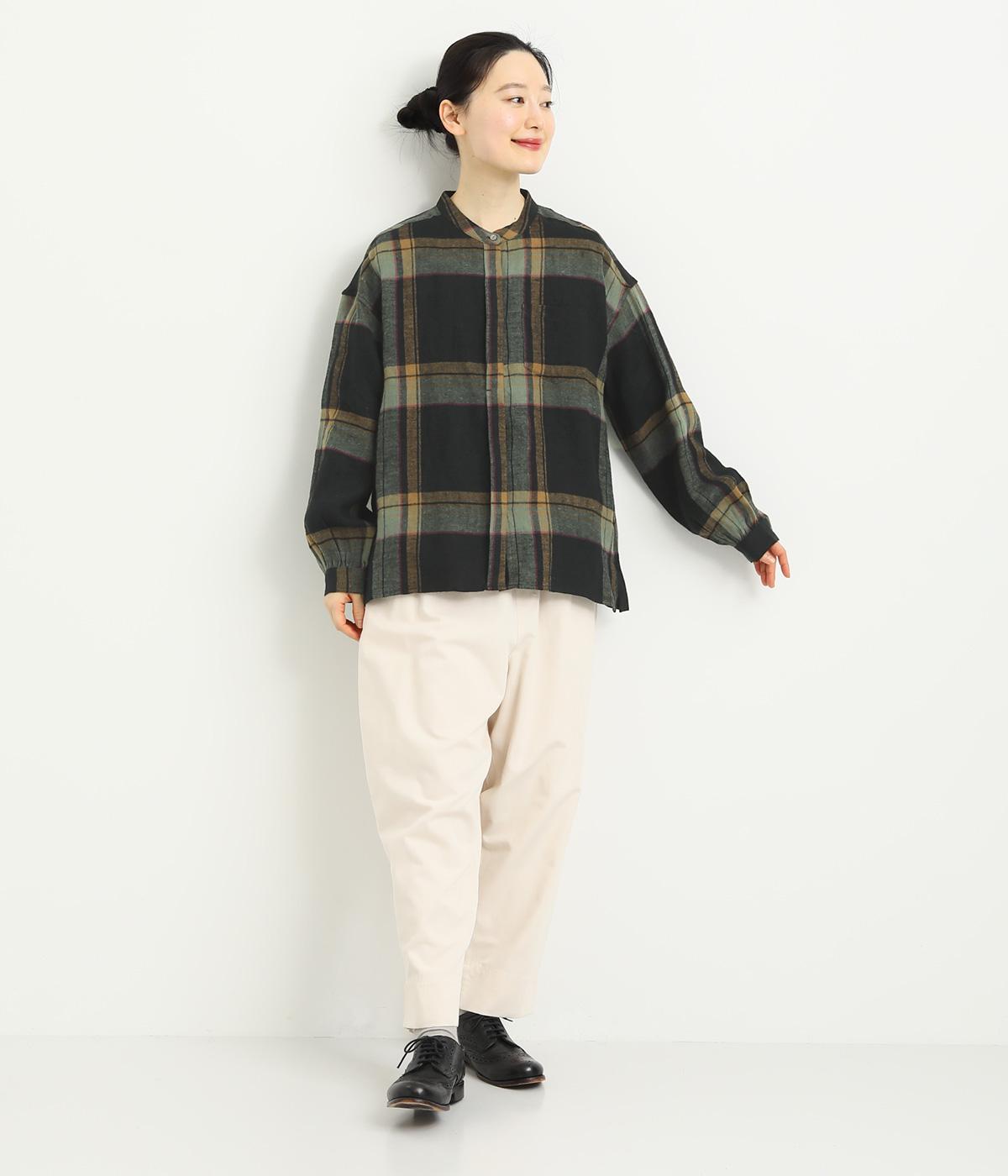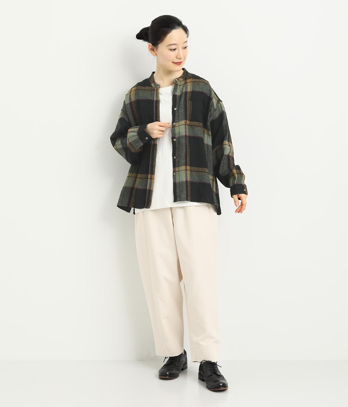 ドライな肌触りに通気性の良さが特徴的なリネン素材に起毛加工をほどこしてあたたかみを加えました。着るほどに肌になじみ、厚手すぎず着こなしやすい生地感です。