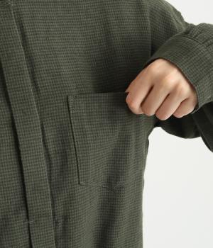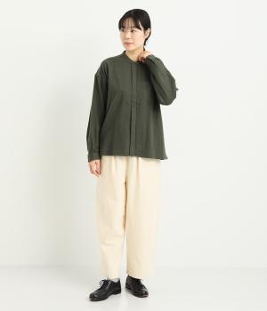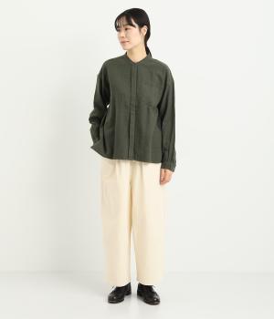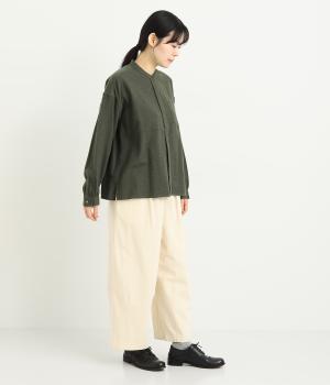 コトンとリネンの混紡生地に起毛加工をほどこしてあたたかみとソフトな風合いをプラス。天然素材仕立てでデイリー使いに重宝します。